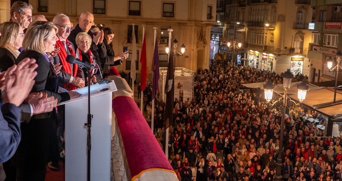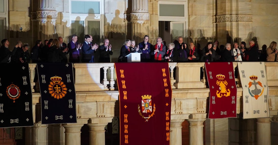 Noelia Arroyo, en su alocución a los procesionistas desde el balcón del Palacio Consistorial, ha comenzado destacando que es el primer acto que reúne a la familia procesionista de Cartagena desde que se cantó la Salve a la Virgen del Amor Hermoso al finaliza la Semana Santa de 2023 y que esta 'Llamada' es la cuarta más tempranera del siglo XXI. "Sois los representantes de mantener vivas nuestras procesiones, las cuales enseñamos al mundo con mucho orgullo", le ha expresado a los cofrades presentes en la plaza del Ayuntamiento.