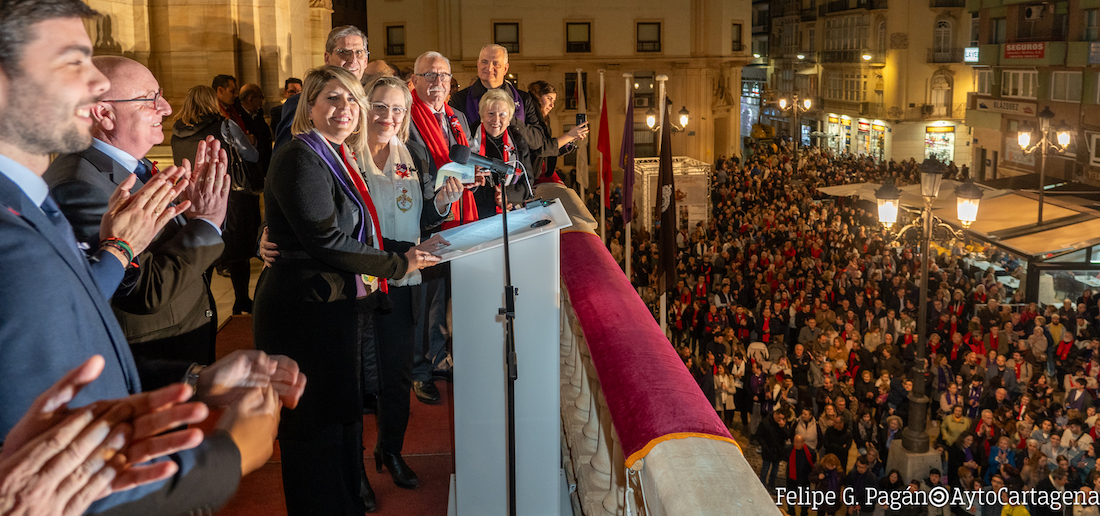 Los cabildos de las cuatro cofradías principales de Cartagena ha aprobado, respectivamente, la salida de sus cortejos pasionarios para representar la pasión, muerte y resurrección de Jesucristo del 22 al 31 de marzo, trasladando el acuerdo a la alcaldesa, quien lo ha anunciado hoy, 14 de febrero día de 'San Valentín', al pueblo desde el balcón del Palacio Consistorial, además de entregar a los cofrades un talón de 225.000 euros, cinco mil más que en los últimos.