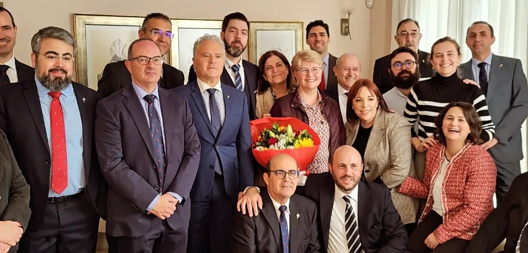 La camarera en este especial año es María Ángeles Fuentes Fructuoso, quien ha recibido en su domicilio a una representación de la directiva de la agrupación de Santiago Apóstol, que le hizo entrega del nombramiento y de un ramo de flores.