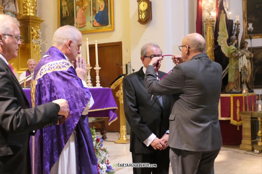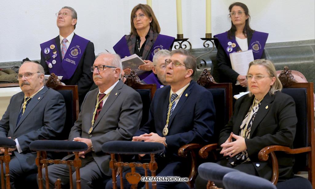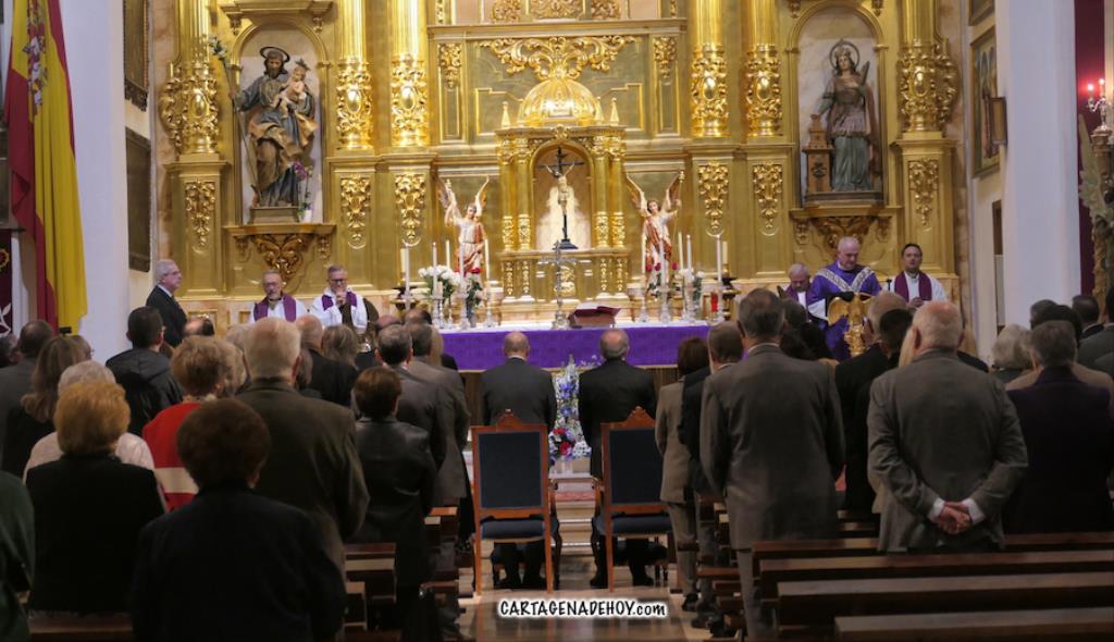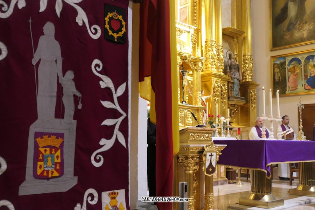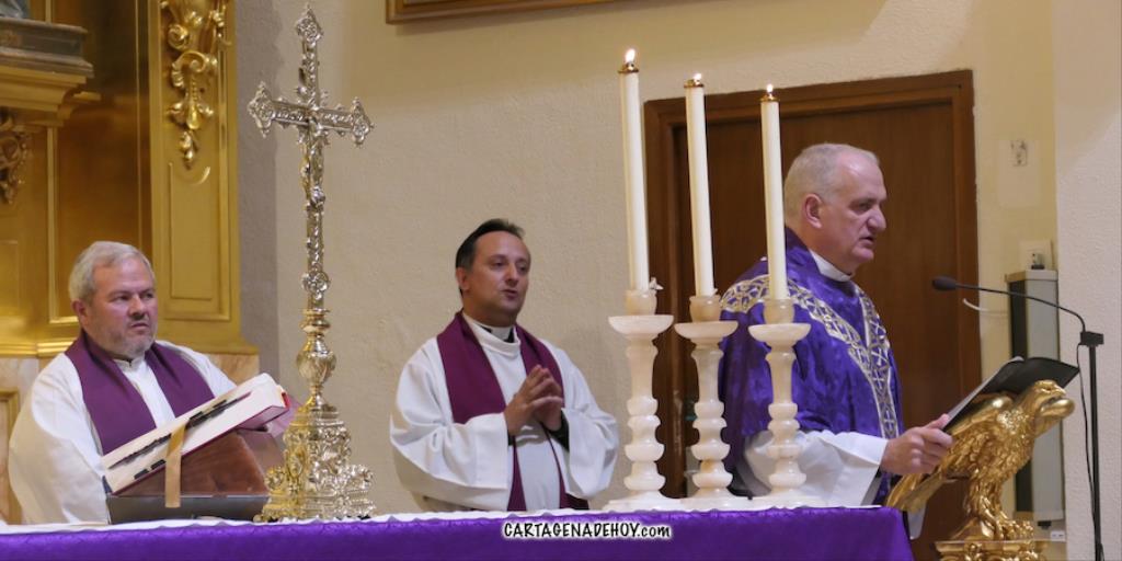 La iglesia castrense de la calle Mayor de Cartagena ha acogido esta mañana la celebración de una misa presidida por Fernando Gutiérrez Reche, capellán de la Cofradía Marraja y vinculado al Cristo del Socorro, quien por la tarde ha ofrecido el pregón de la Semana Santa de Cartagena'24. El sacerdote, en su alocución, se ha referido a los cofrades, diciendo que un procesionista "no debe quedarse en la tristeza del Viernes Santo, sino en el gozoso Domingo de Resurrección" y que la cuaresma son cuarenta días "para acercanos al Señor. Quizás en Cartagena, con tantas fiestas, se nos olvida ese sentido de la cuaresma". Después se ha centrado en Manuel Martínez, 'Procesonista del Año', de quien ha indicado que es merecida la distinción, recordando que recibió el agua bautismal y que, a partir de ahí, "la semilla fue creciendo y siempre ha querido caminar como hijo de la iglesia. No es un santo, pero hombre bueno es, hombre de fe, buen esposo y que ha querido transmitir la fe, y de quien nos consta su amor a la Iglesia y su ata participación en la eucaristía", ha indicado, además de hacer mención a su labor como hermano mayor de la Cofradía del Cristo del Socorro.