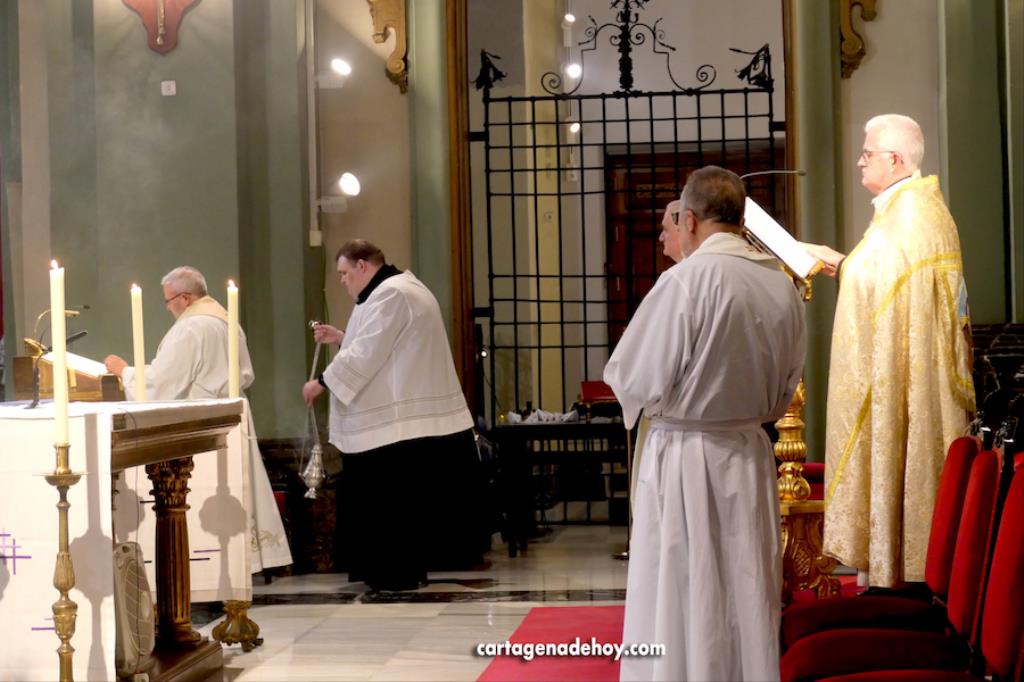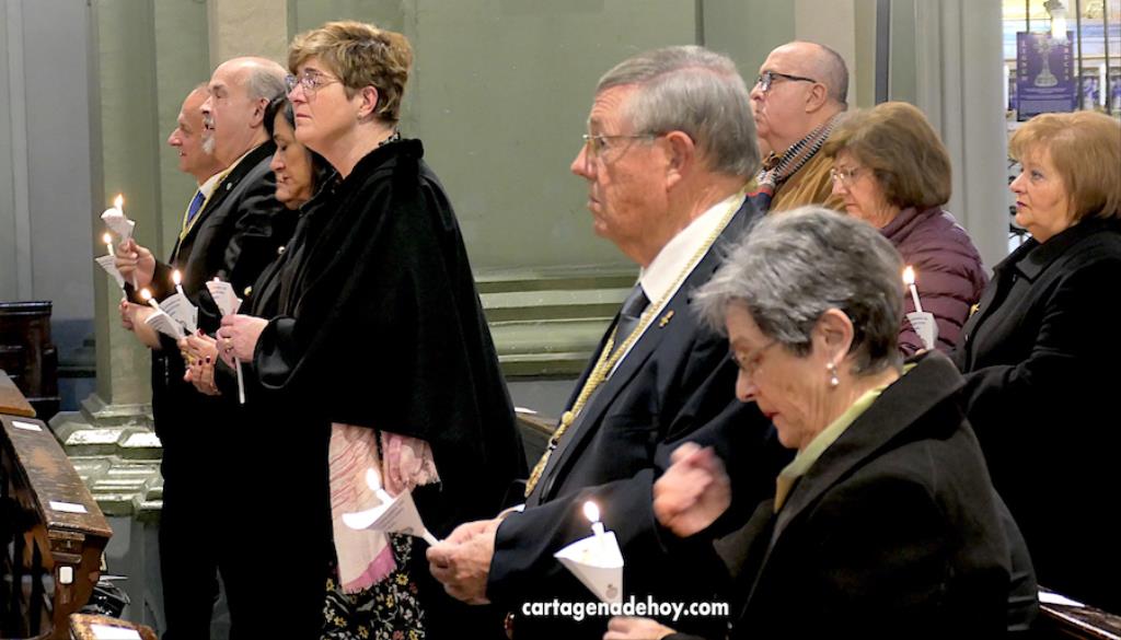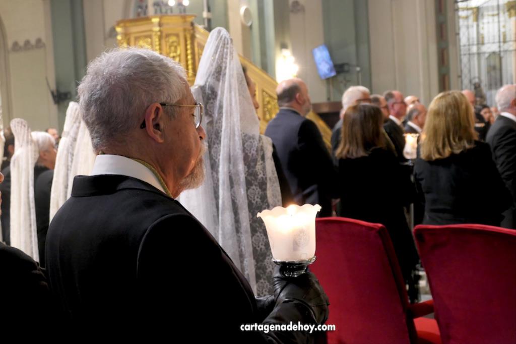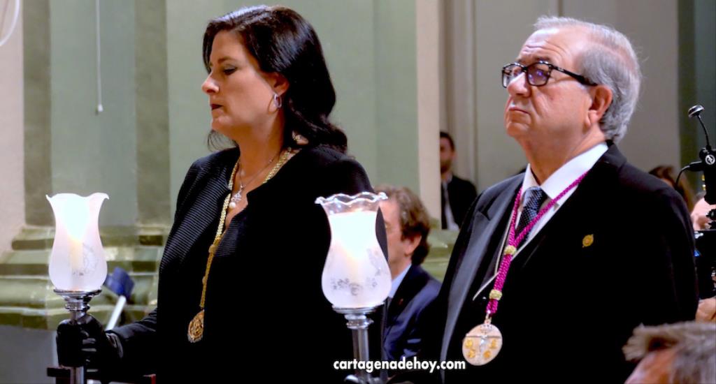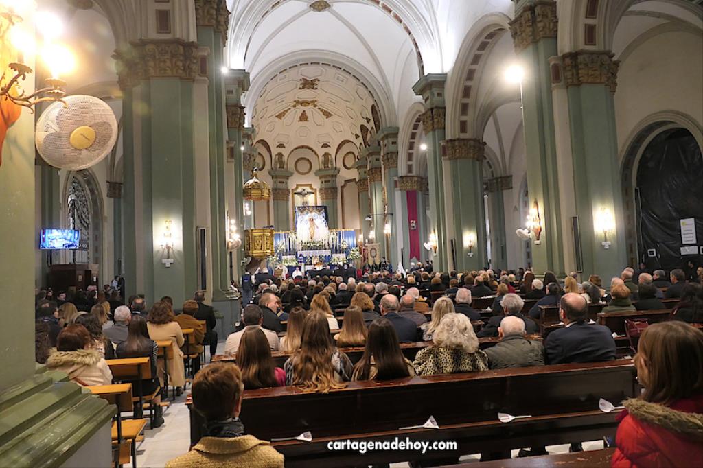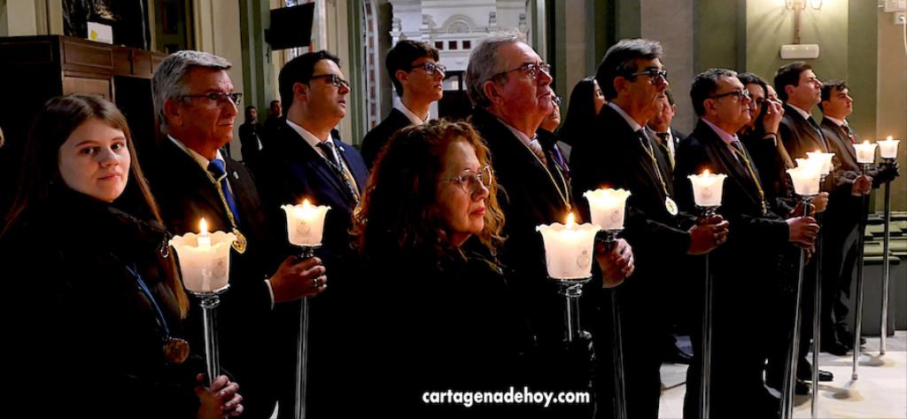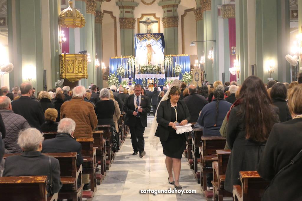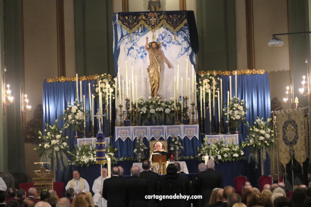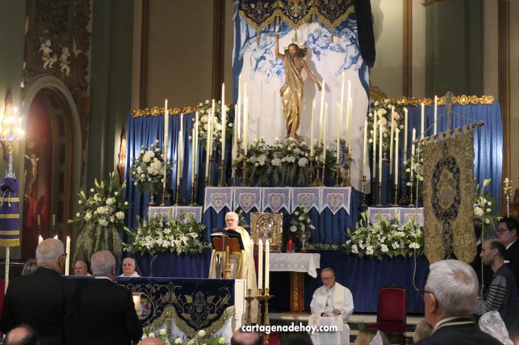 Además de la presencia de los capellanes de las otras tres cofradías principales de Cartagena, destacar el enriquecimiento musical a cargo de un coro y de la Agrupación Musical Cartagonova. También queremos reseñar el dato de la asistencia de la alcaldesa, Noelia Arroyo, entre otras autoridades civiles y militares, además de decenas de procesionistas que se ubicaron ante un altar adornado con muy buen gusto, a base de flores y elementos resucitados, en torno a la figura de Jesús que creó González Moreno.