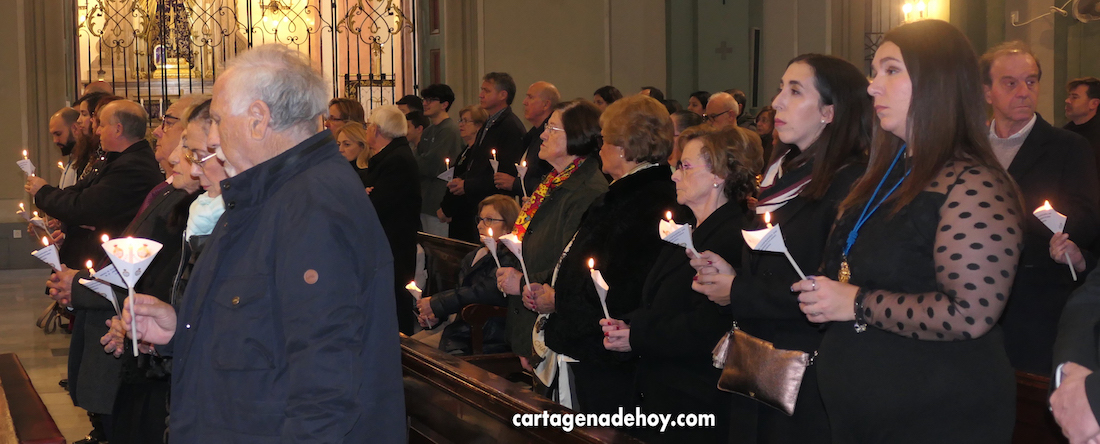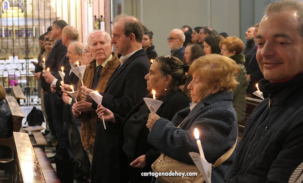Fue el epicentro de un acto del Resurrexit que acogió Santa María y que, por lo que percibimos con respecto a otras ediciones, tuvo más protagonismo de los jóvenes, tanto en las oratorias de los evangelios, peticiones (por cierto, se pidió que llueva por estas tierras) y en mostrarse a los presentes al recorrer el templo para encender las velas ('la luz de la fe') que estaban junto a las localidades para los asistentes. La Semana Santa de Cartagena no quiere sufrir un vacío generacional y sus responsables están manos a la obra para evitarlo.