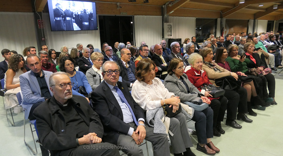 Gonzalo Wandosell Fernández de Bobadilla fue el elegido para dar a conocer la revista y lo cierto es que lo hizo de forma ágil y amena en poco más de un cuarto de hora. Tras los protocolarios saludos, el consiliario californio y cronista oficial de La Unión, entre otros cargos al margen de su profesión como decano en la UCAM, comenzó recordando la razón de ser de la agrupación, el castigo que sufrió Cristo a golpes de flagelo, "una cruel e ilegal tortura, pero consentida, quizás el acto de amor más grande jamás contado", expresó, que ha sido base de lienzos, esculturas, música y arquitectura por la riqueza artística de la escena con la que el 'salvador de la humanidad' recuerda que debemos "sufrir por los demás".