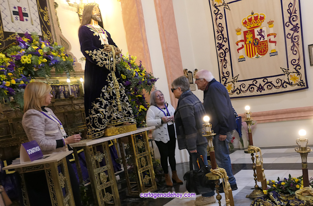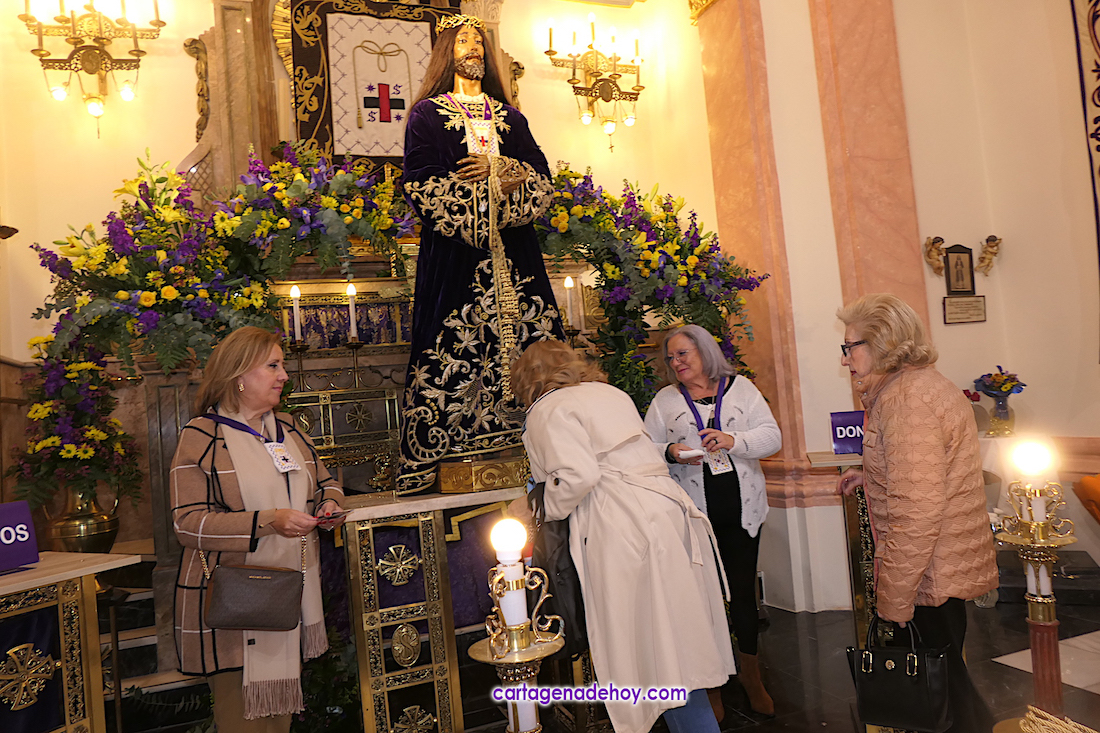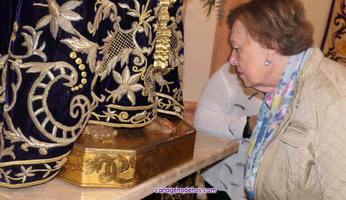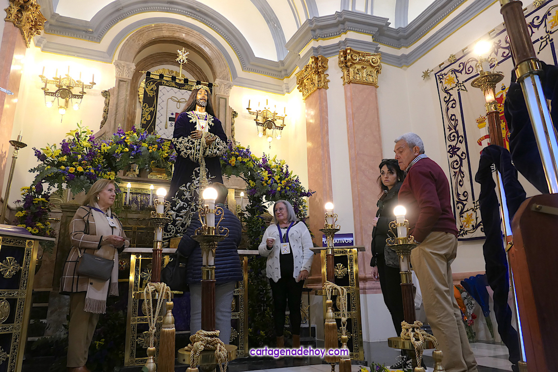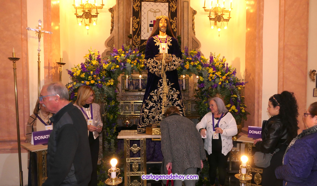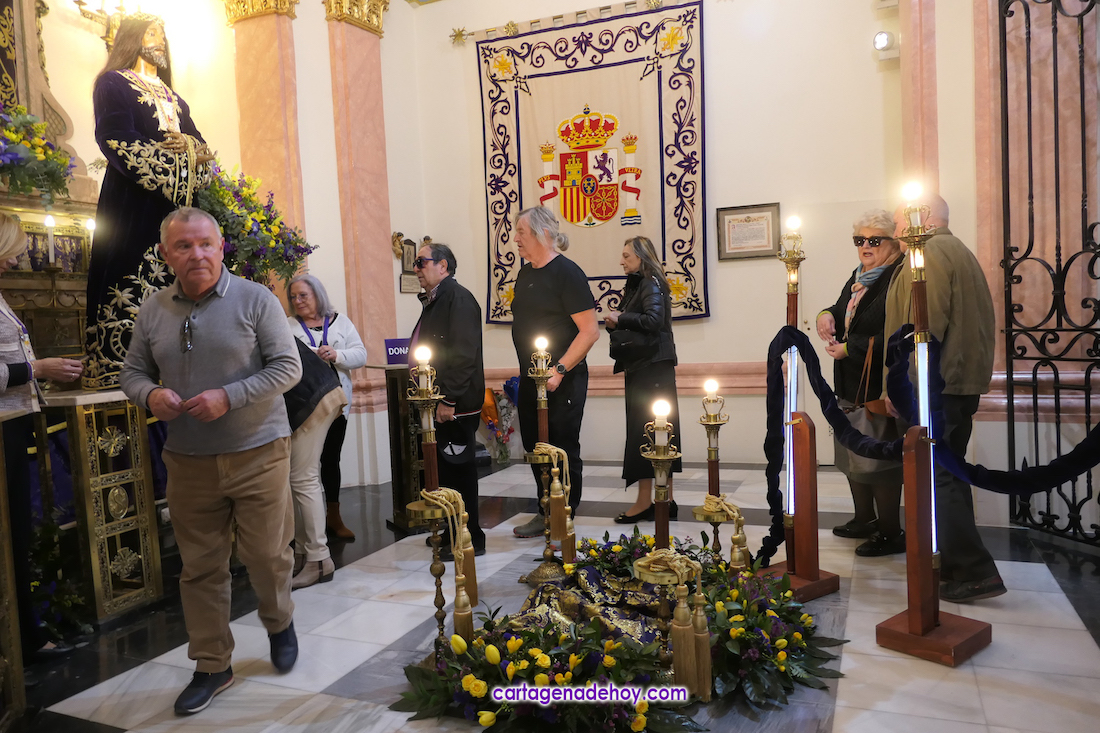 Una multitud, nuevamente, formada por miles de personas están pasando hoy por la capilla de Jesús de Medinaceli en la iglesia de Santa María para mostrar su cariño a la imagen cuando se cumplen casi ochenta y cinco años de cuando se inició esta devoción en Cartagena.