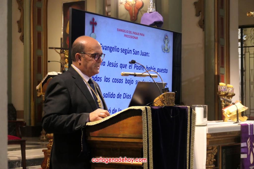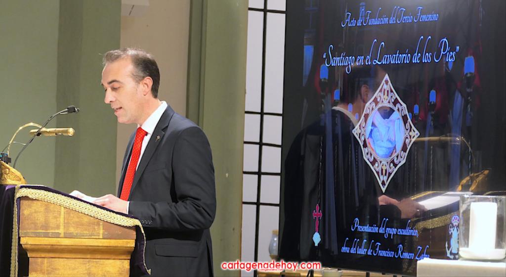 El cierre lo ha puesto el 'líder del incansable equipo directivo' de Santiago Apóstol, quien ha reconocido estar emocionado, "igual que todos los santiaguistas", ha expresado Manuel Salmerón Fuentes, quien destaca que el pasaje del 'Lavatorio de los pies' viene "como anillo al dedo a las procesiones, pues el Señor quiere hacer ver que lo importante es que estamos aquí para servir". También ha resaltado que un proyecto de esta envergadura ha salido adelante "porque hay muchos granitos de arena, por lo que doy las gracias a los hermanos y a las fundadoras por su esfuerzo económico", remarcando que todo ese esfuerzo "muestra lo que es la agrupación". También ha querido resaltar como pilares a Joaquín Meroño y a Manuel Martínez Salmerón. Ha concluido dirigiéndose a las penitentes del nuevo tercio: "No hemos encargado el grupo escultórico a cualquier artista, sino que nos hemos ido al mejor imaginero. Estar muy orgullosas de cuando salgáis con las tallas, que van a alucinar y enamorar en las procesiones".