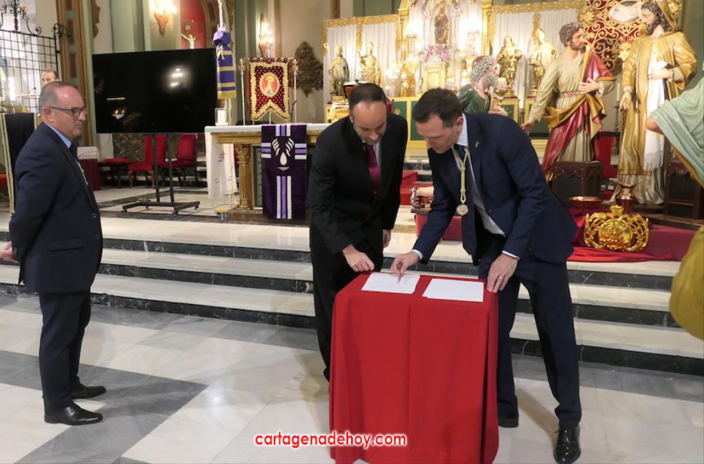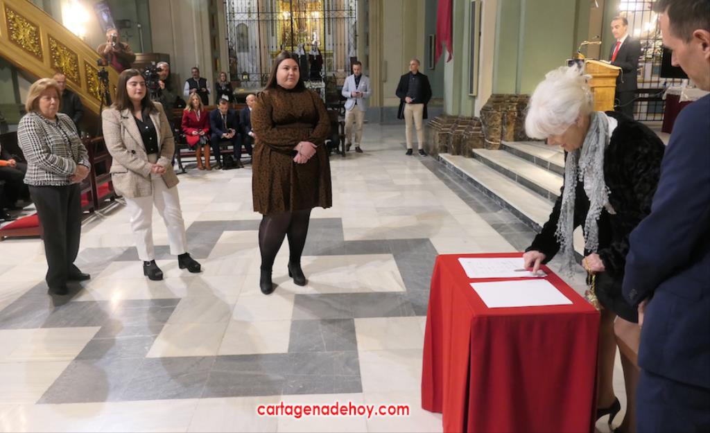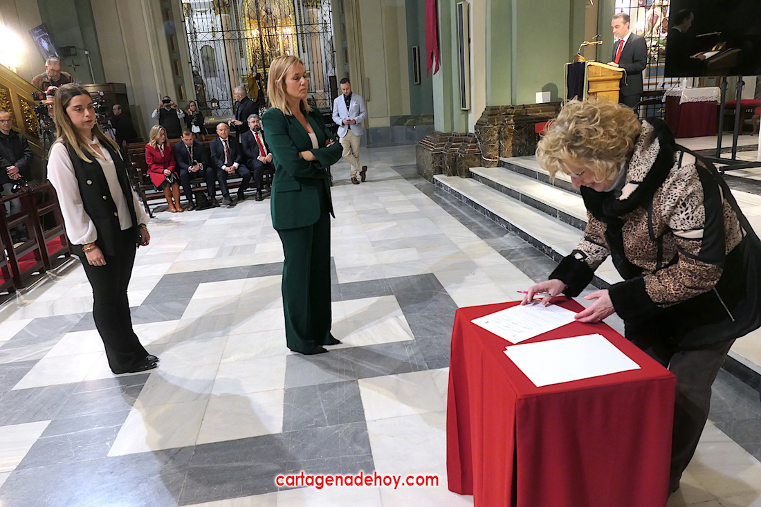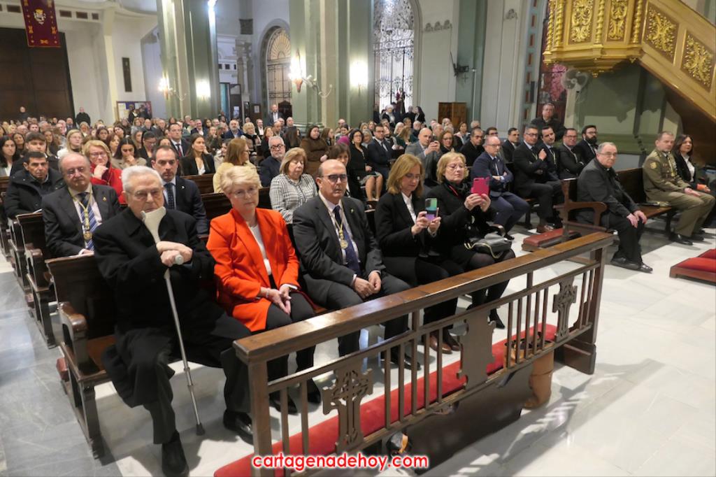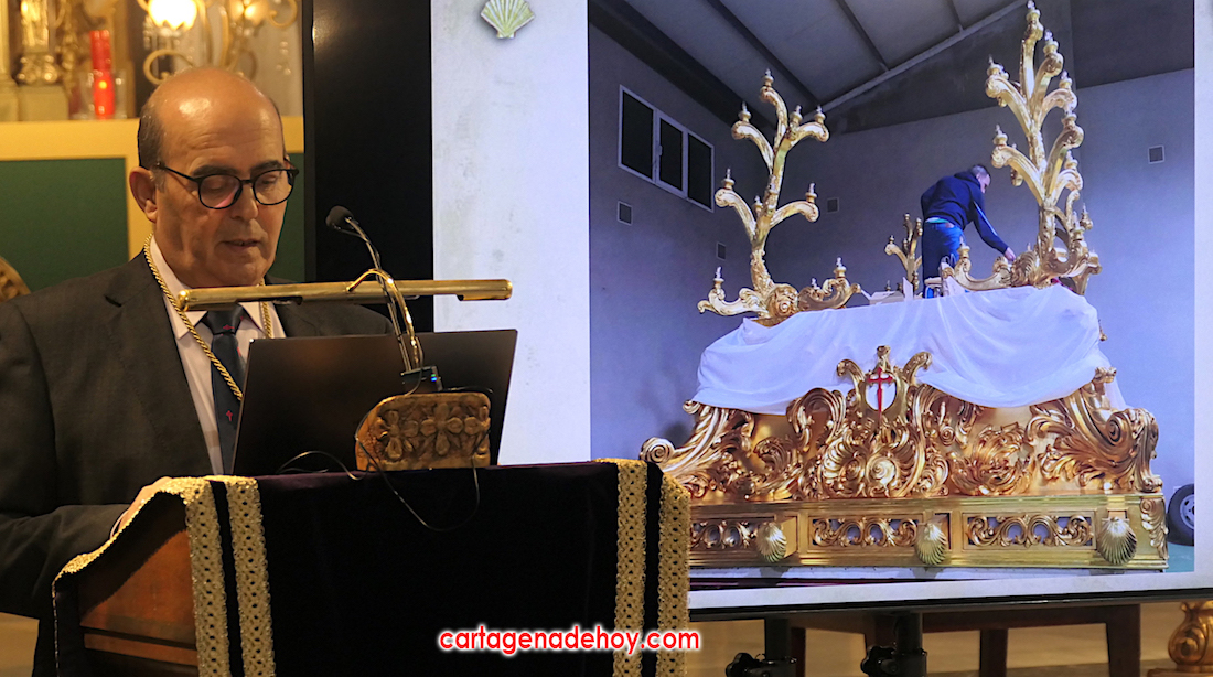 José Manuel Nadal, mayordomo de la agrupación california, ha sido quien ha llevado el hilo del acto celebrado en el altar de la iglesia de Santa María de Gracia, lo que ha denominado como "un acontencimiento" en la historia santiaguista "del que estamos emocionados y orgullosos, pues el sueño se ha hecho realidad para que la Semana Santa de Cartagena sea más grande", ha expresado.