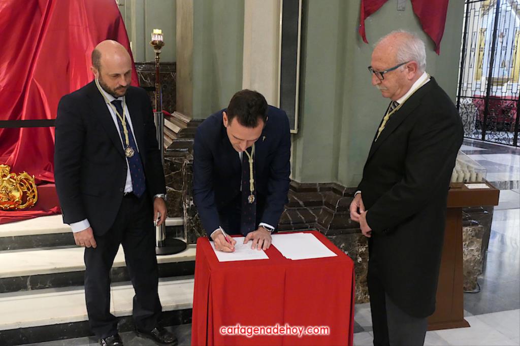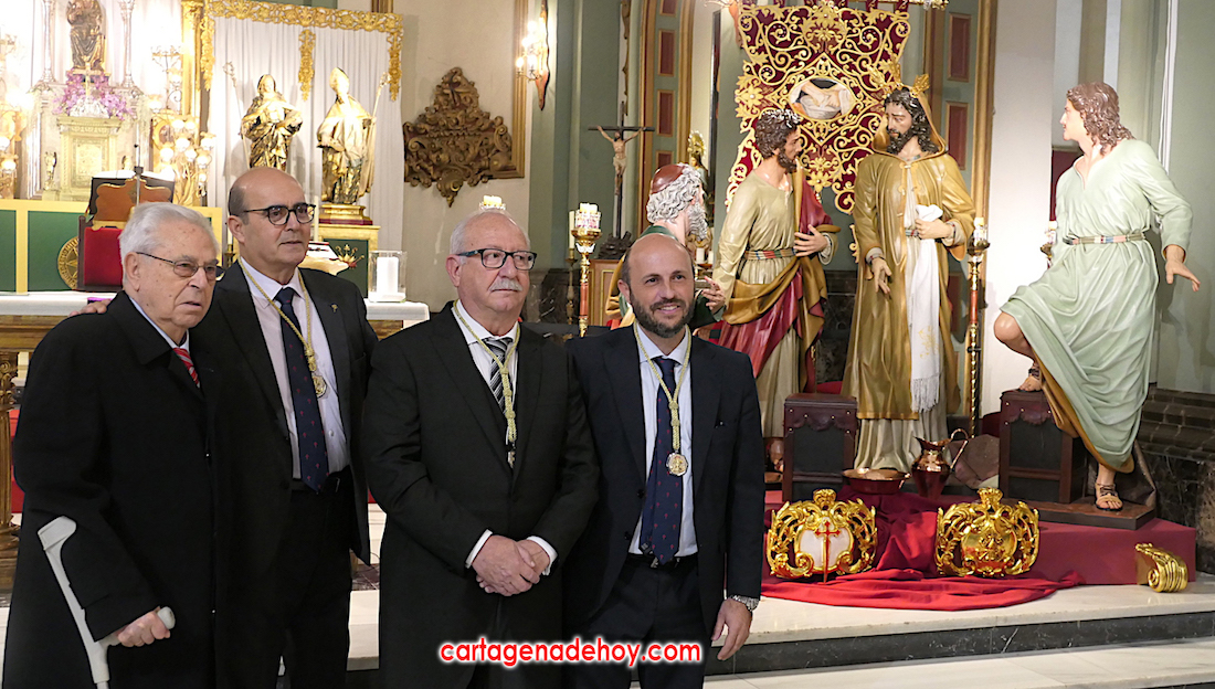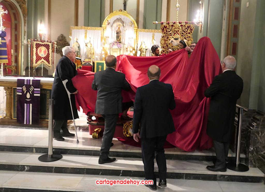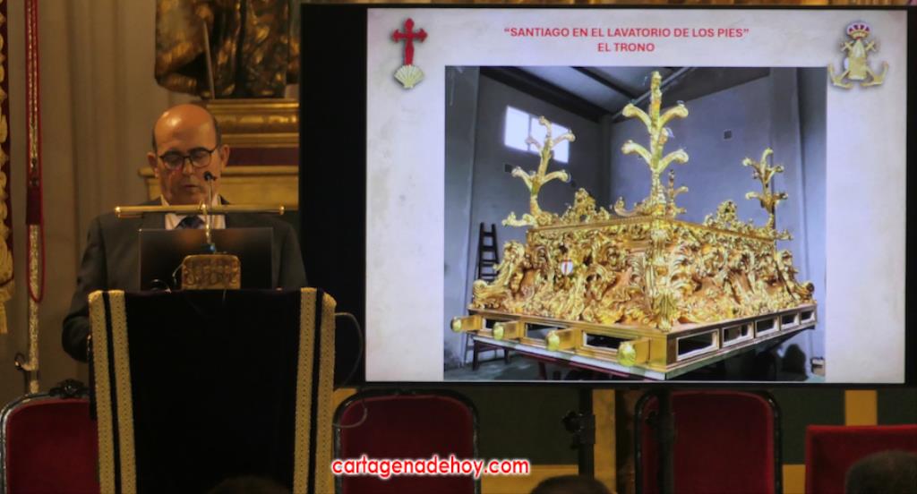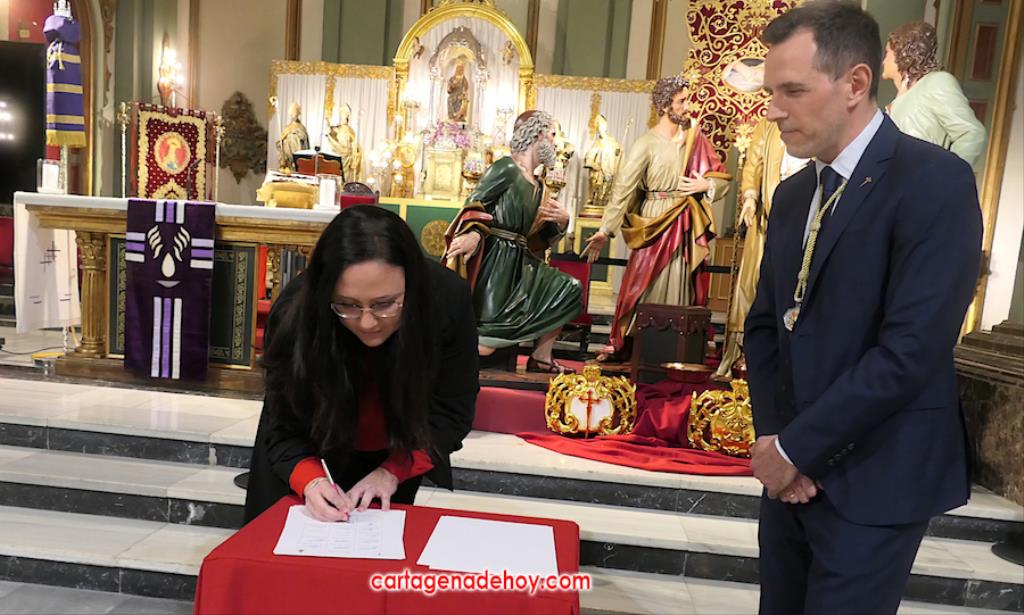 José Manuel Nadal, mayordomo de la agrupación california, ha sido quien ha llevado el hilo del acto celebrado en el altar de la iglesia de Santa María de Gracia, lo que ha denominado como "un acontencimiento" en la historia santiaguista "del que estamos emocionados y orgullosos, pues el sueño se ha hecho realidad para que la Semana Santa de Cartagena sea más grande", ha expresado.