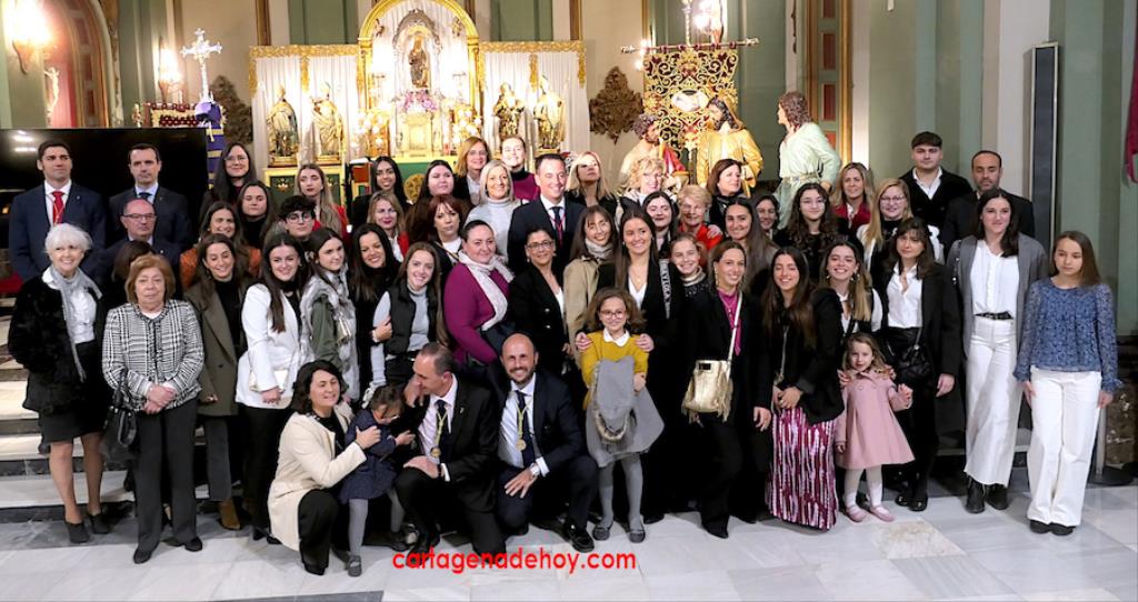 La agrupación california ha presentado el paso formado exclusivamente por mujeres y el nuevo grupo escultórico creado por el cordobés Francisco Romero que se estrenarán este año en el Miércoles Santo con el antiguo trono del grupo infantil, que ha experimentado una reforma total. "Las imágenes van a enamorar en las procesiones", ha vaticinado el presidente, Manuel Salmerón Fuentes.