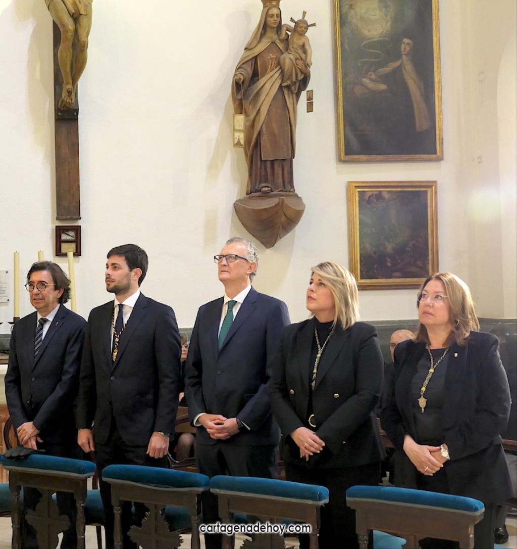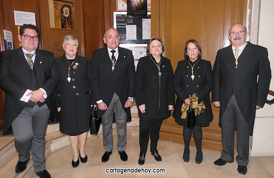 Han asistido autoridades civiles y militares, además de varias decenas de procesionistas, entre los que figuraban los nombramientos de honor de este año en la Semana Santa de Cartagena. El capítulo musical ha correspondido a la masa coral Tomás Luis de Victoria, dirigida por Cristóbal Vogúmil Abellán de la Rosa.
