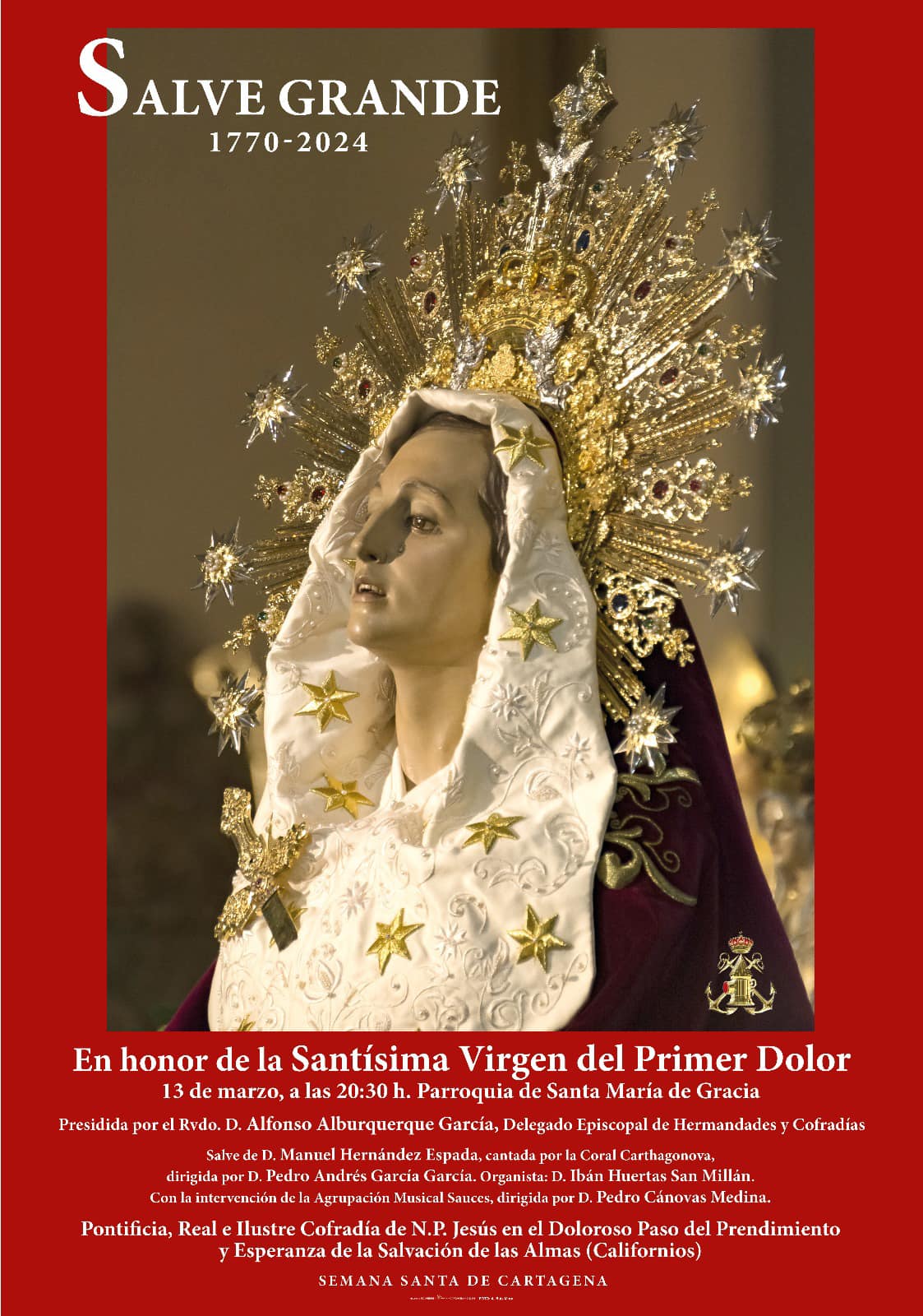 La Virgen del Primer Dolor 'irá' hoy al altar donde se le tributará mañana la 'Salve grande'