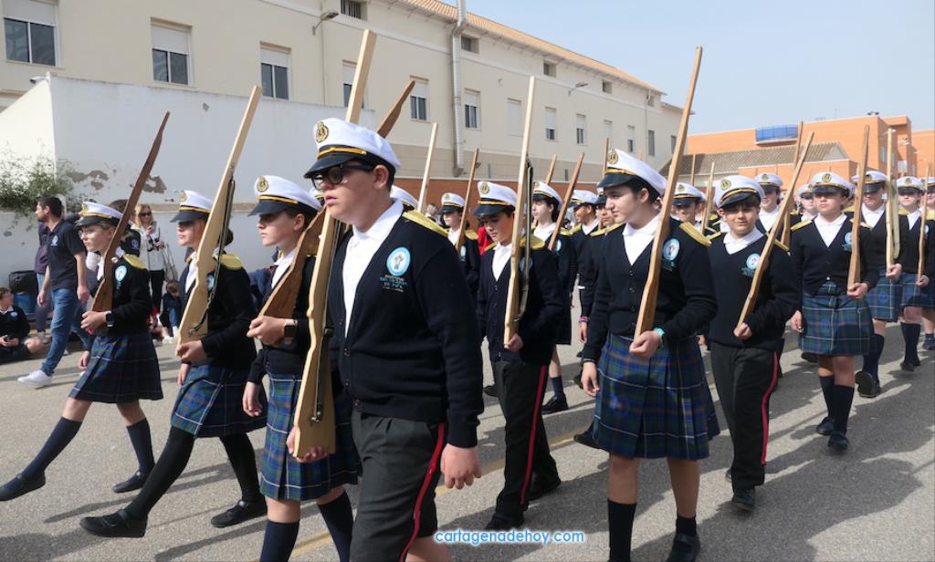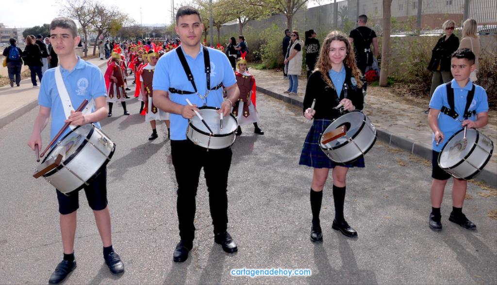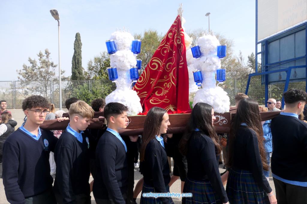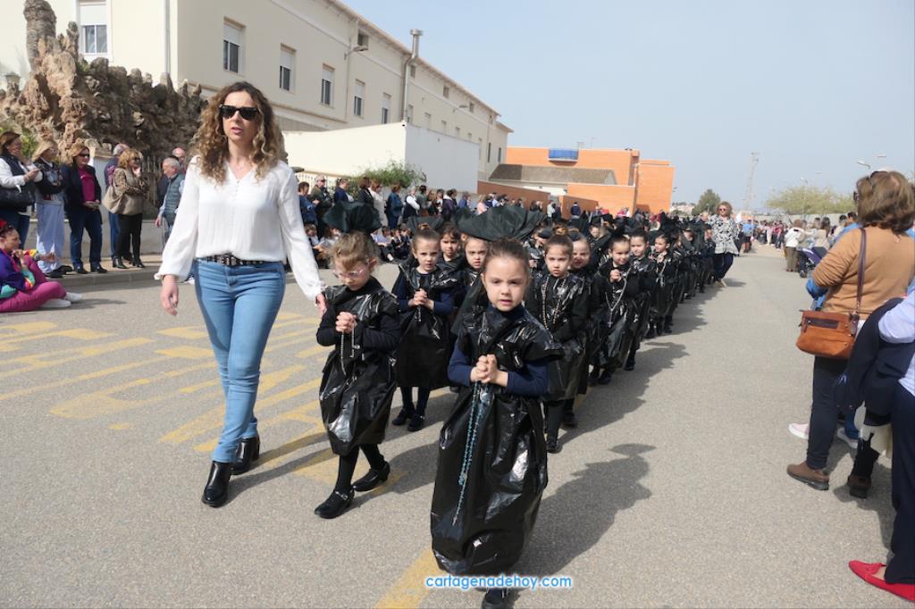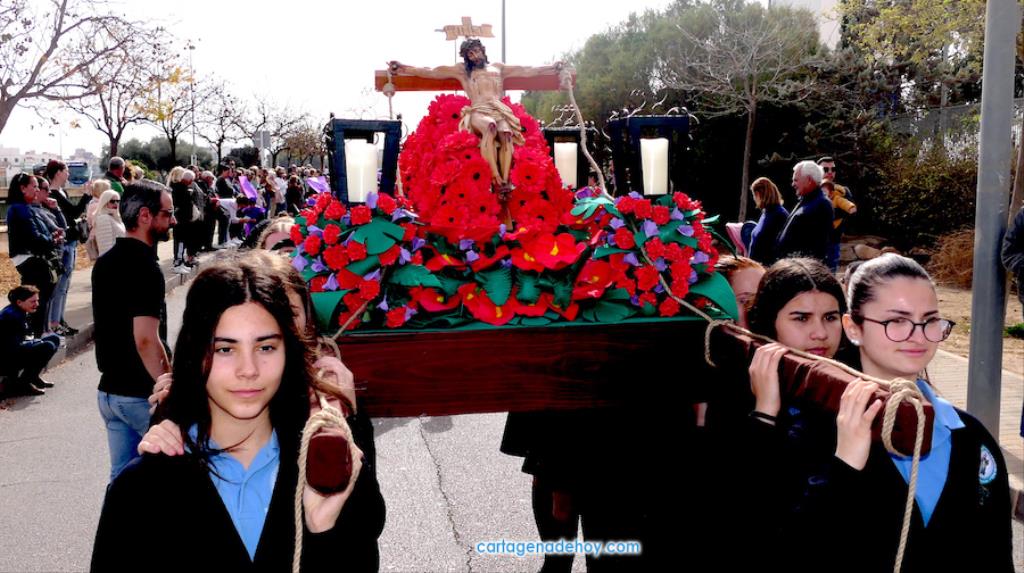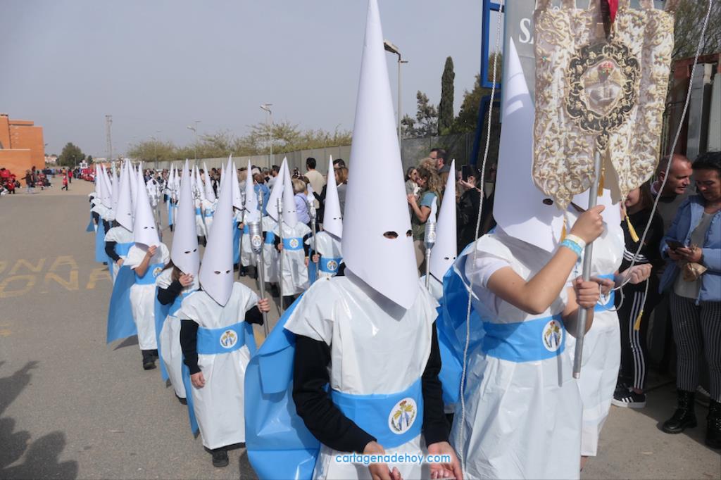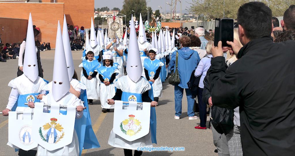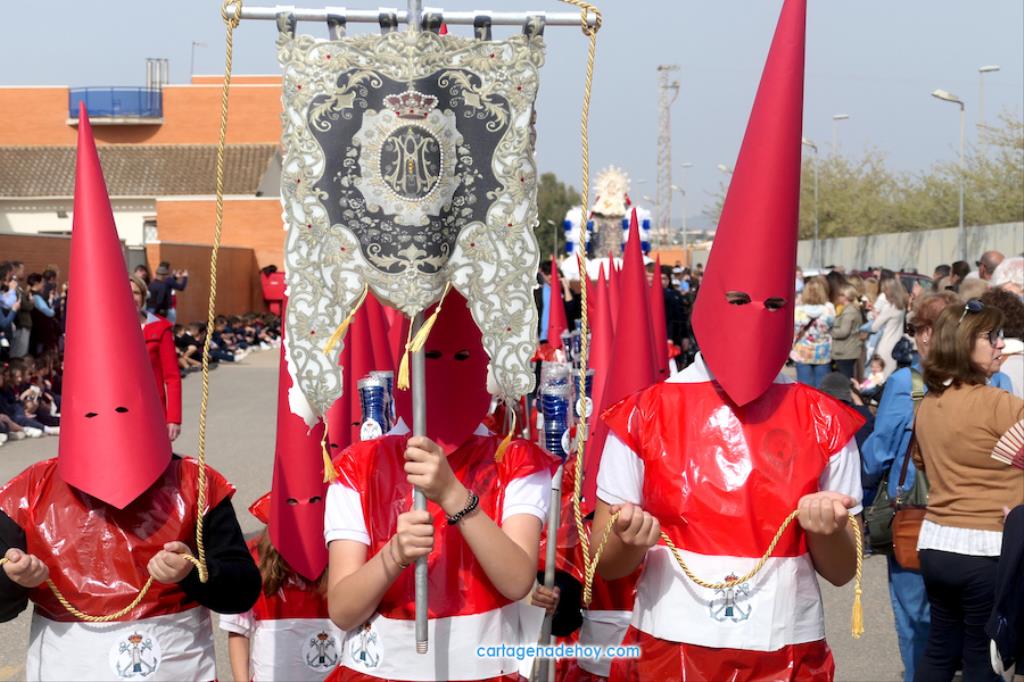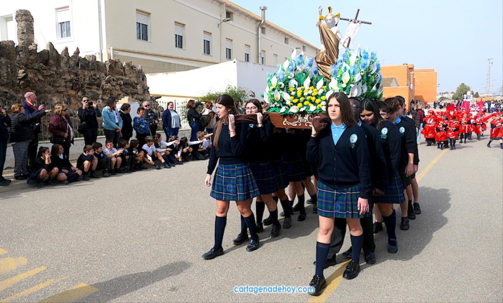 El colegio San Vicente de Paúl ha sacado su cortejo pasionario por segunda año, habiendo crecido en cuanto a elementos y participantes en esta edición. El vestuario de los alumnos, elaborado de forma artesanal, emula de los grandes cortejos cartageneros, al igual que tronos y hachotes, siendo cautivadora la visión de la puesta en escena, en la que están representadas las cuatro principales cofradías pasionarias.