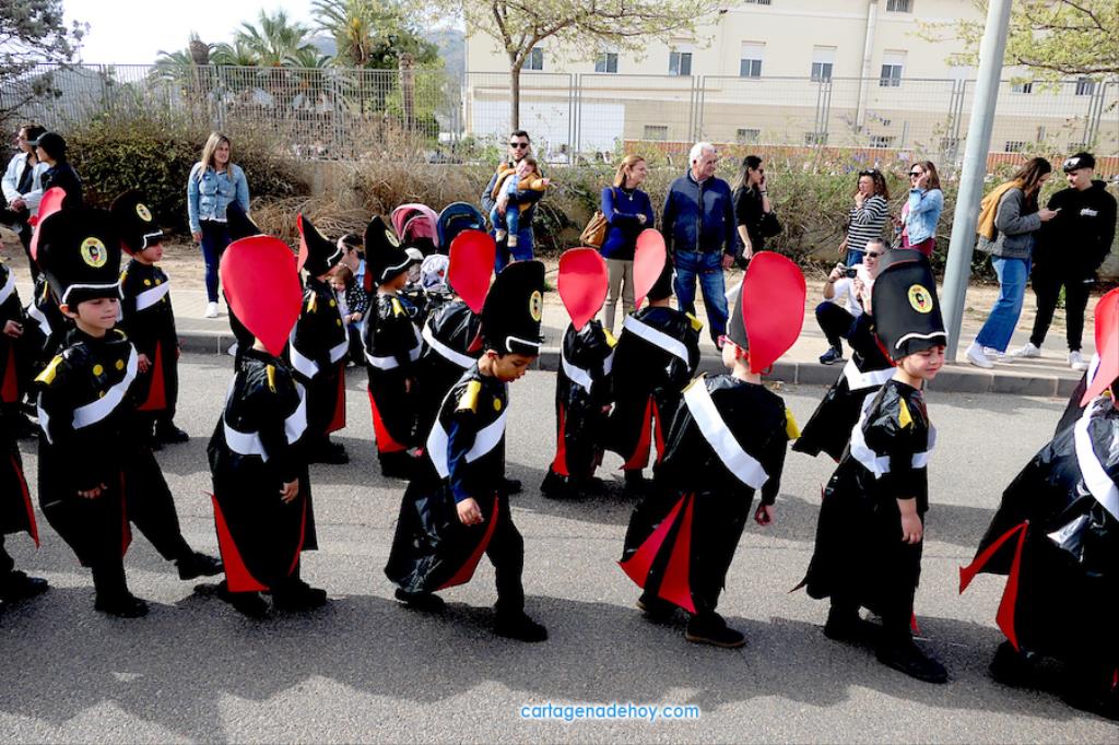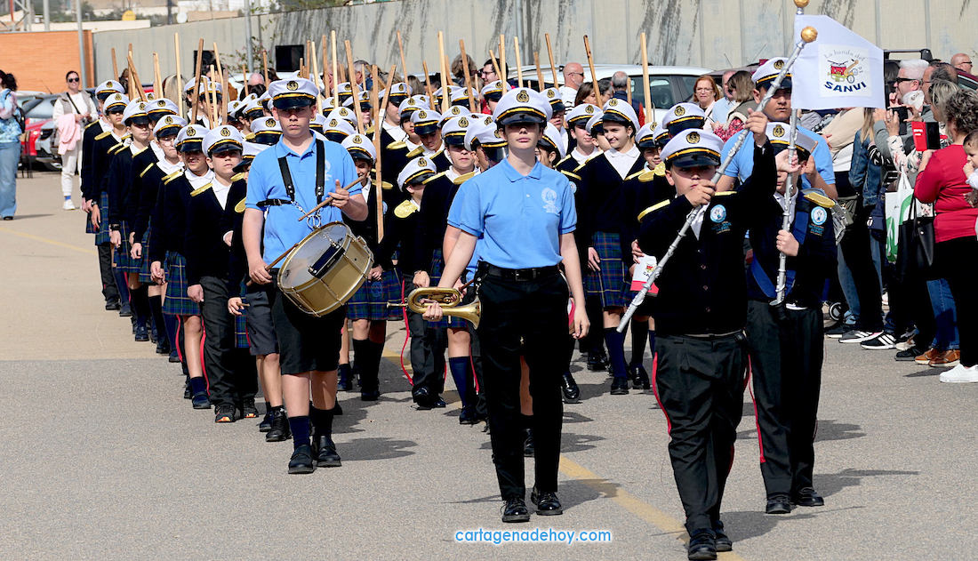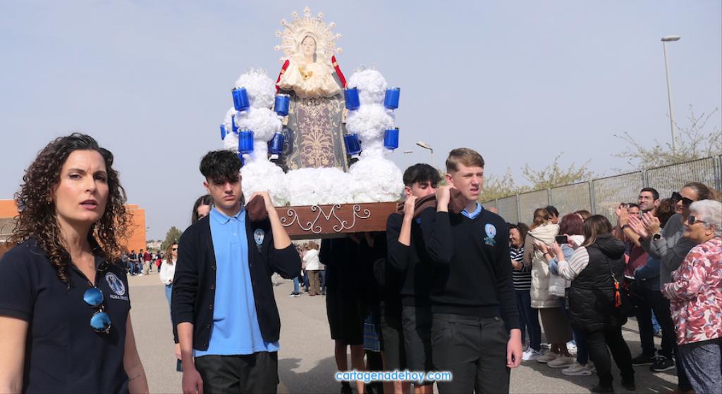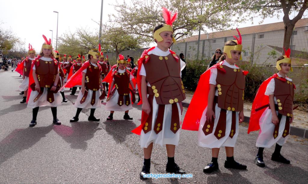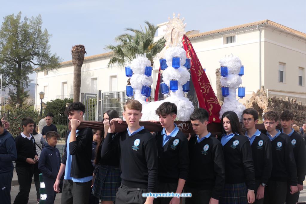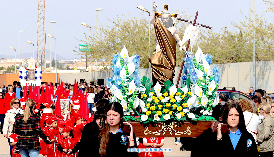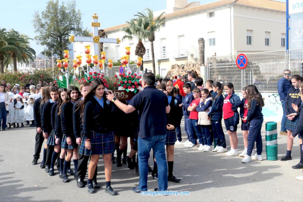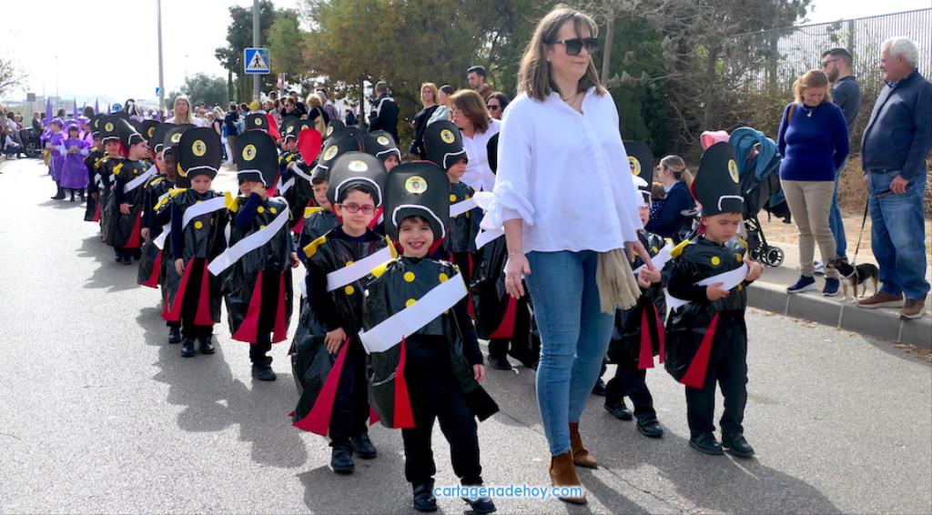 El colegio San Vicente de Paúl ha sacado su cortejo pasionario por segunda año, habiendo crecido en cuanto a elementos y participantes en esta edición. El vestuario de los alumnos, elaborado de forma artesanal, emula de los grandes cortejos cartageneros, al igual que tronos y hachotes, siendo cautivadora la visión de la puesta en escena, en la que están representadas las cuatro principales cofradías pasionarias.