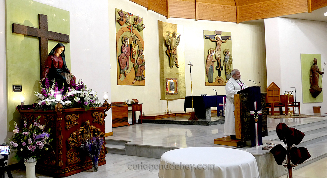 El capellán de la Cofradía del Socorro, Lazaro Gomariz, comentó durante su celebración que los dolores de María "comenzaron cuando la anunciación del ángel y dijo sí. Fue la primera vez, pues la segunda tuvo lugar cuando Cristo, en la cruz, le dijo que iba a ser la madre de la humanidad; por ello, el Viernes Santo es cuando tiene lugar la segunda anunciación de María".