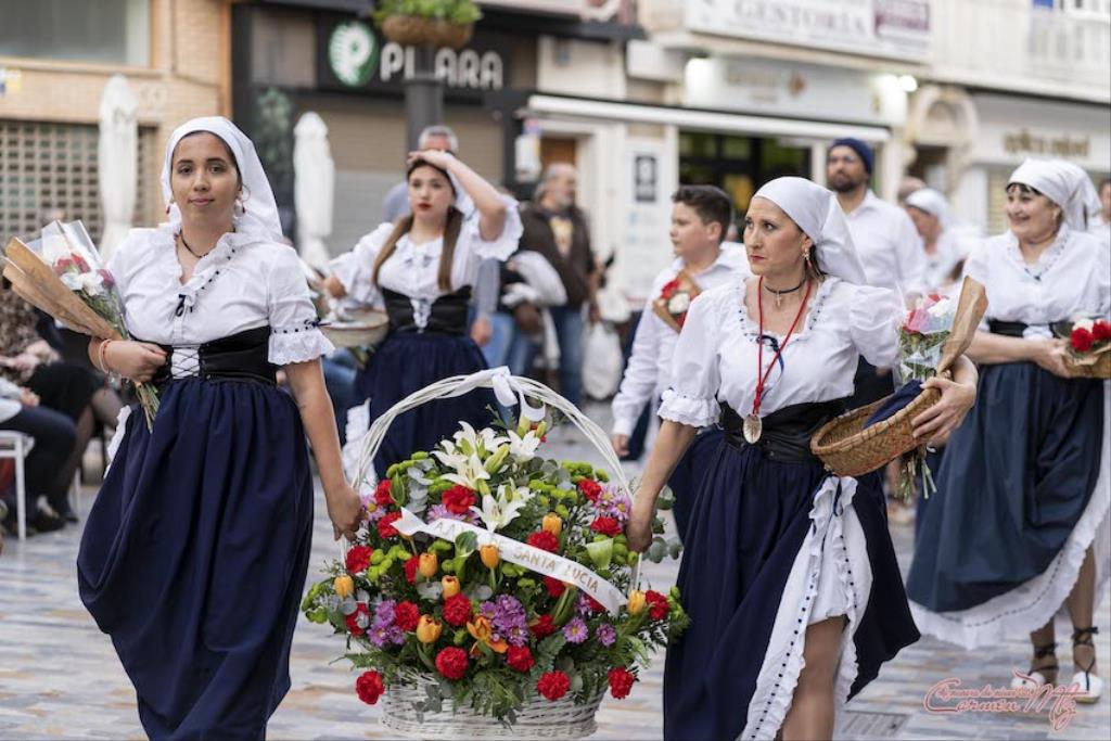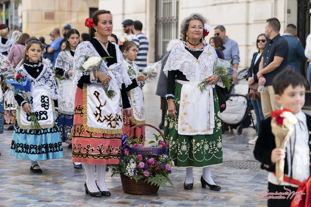 Arriba, el grupo folclórico de La Palma. Bajo estas líneas, MC con su tradicional escudo de Cartagena floreado y la Cofradía Marraja. Carmen Martínez dispone de cientos de retratos de medio plano captados en la ofrenda. Interesados enviar un correo a Esta dirección de correo electrónico está siendo protegida contra los robots de spam. Necesita tener JavaScript habilitado para poder verlo.