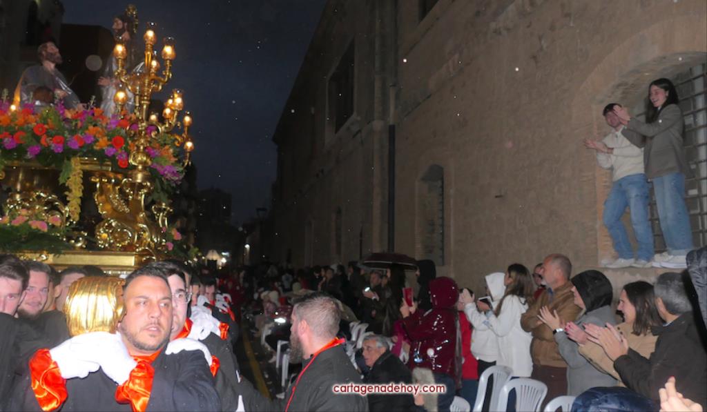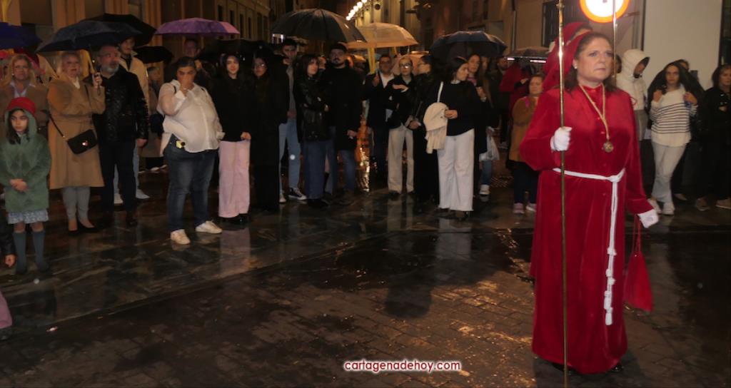 El caso es que entiendo que la procesión saliese. Es el desfile cartagenero menos castigado por la lluvia (lo explicamos en otro artículo del periódico), pero algún día tenía que acabar esa racha y ha venido a ser cuando la primavera acaba de entrar. Una pena, de verdad, pero también una experiencia para la formación de los jóvenes cofrades, quienes han demostrado su ADN pasionario manteniendo su rol y las indicaciones de sus responsables hasta en los momentos que caía más agua. Hay (mucha) madera procesionista en los visto esta tarde-noche.