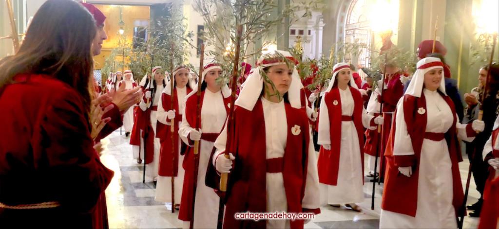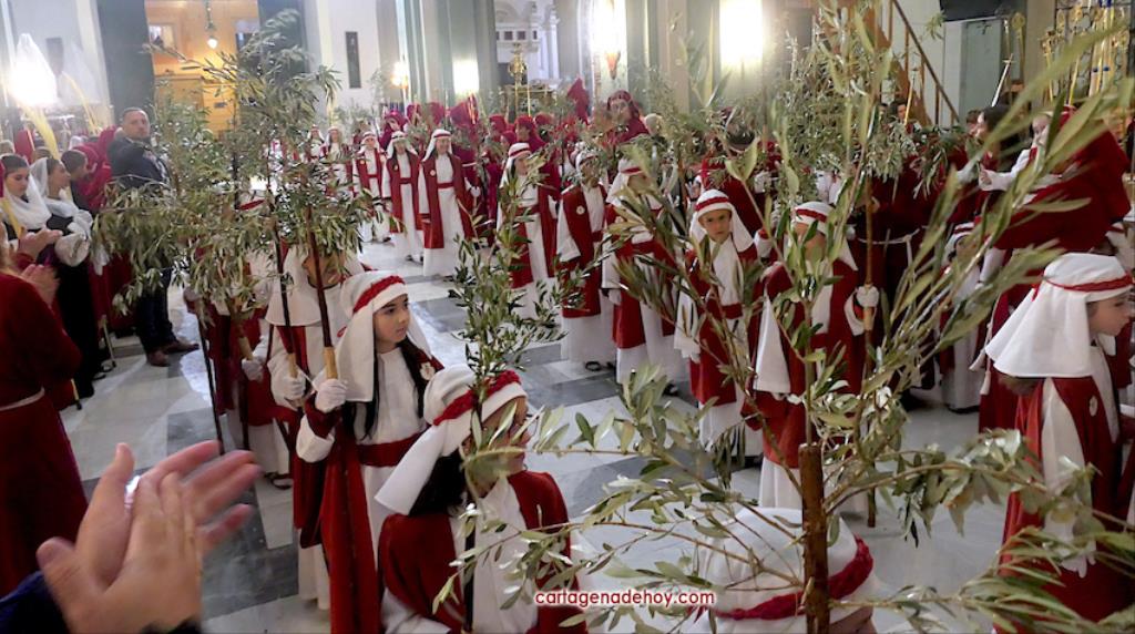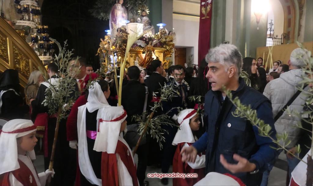 La irrupción del agua caída del cielo ha obligado a suspender la procesión california del Domingo de Ramos, pero también ha generado una jornada para recordar, pues niños y jóvenes de tercios y los portapasos han mantenido el orden estoicamente (entre aplausos de ánimo y de reconocimiento de los espectadores) hasta llegar al interior de Santa María, donde un magnífico trabajo del equipo de iglesia ha permitido que todo el cortejo se haya recogido en apenas media hora.