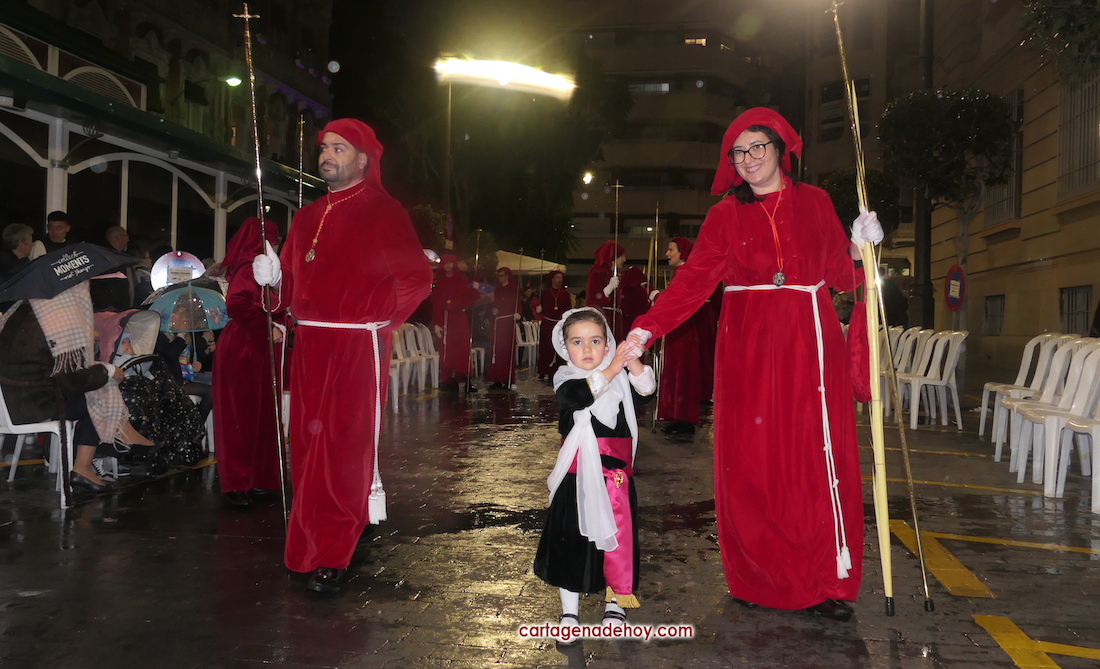 La pequeña Jimena bajo la lluvia como buena procesionista