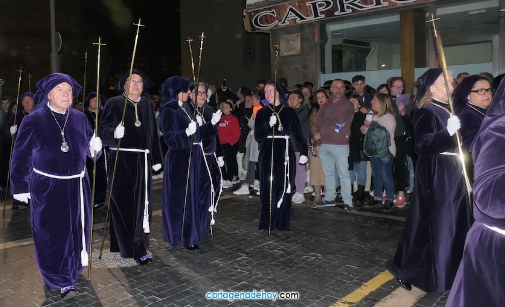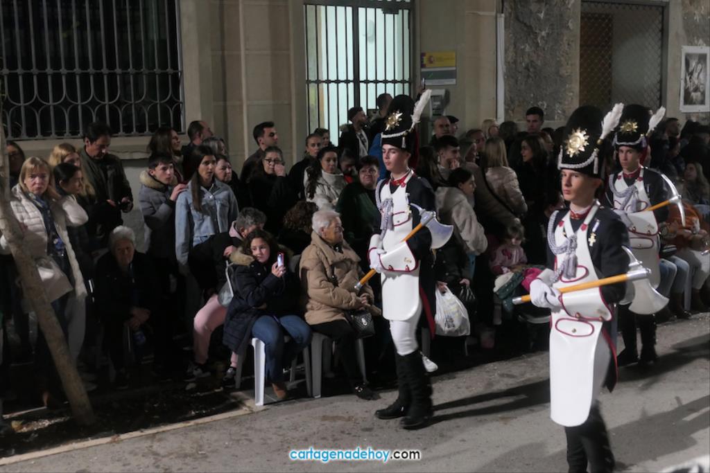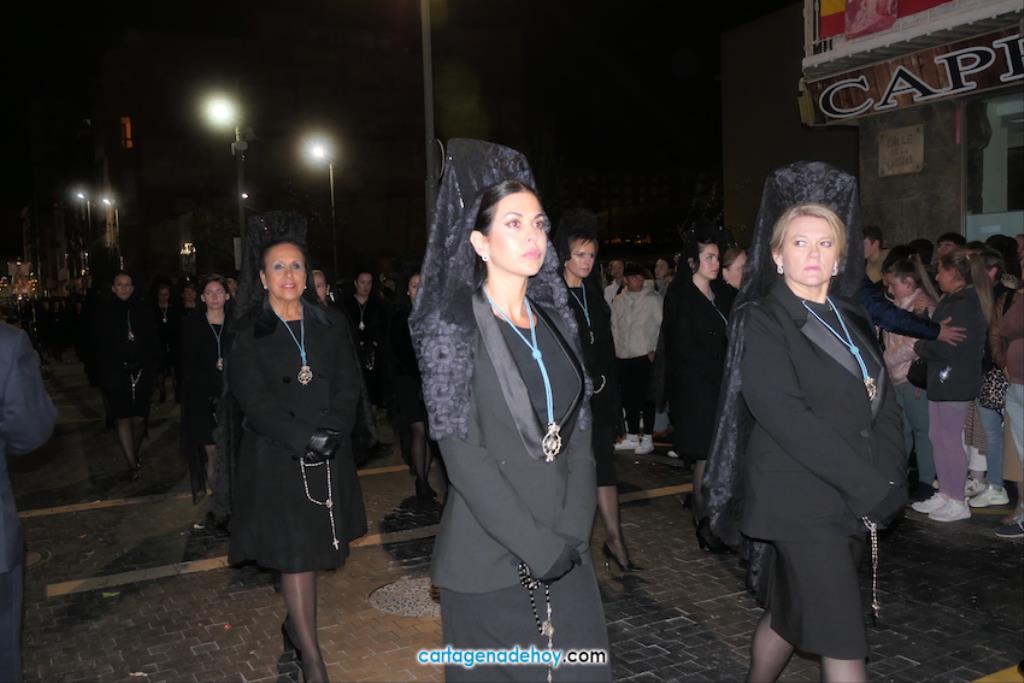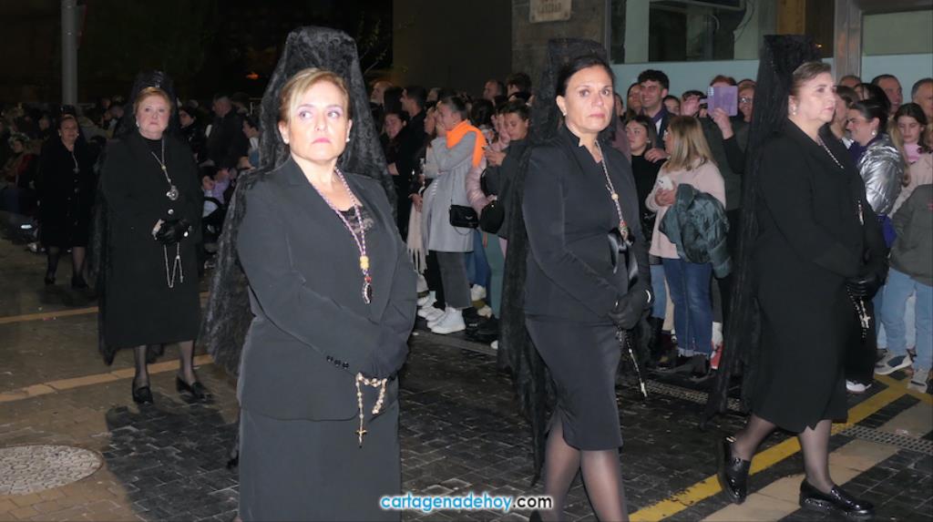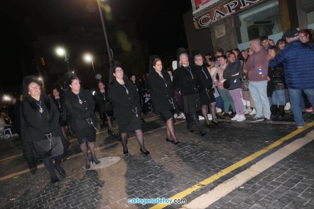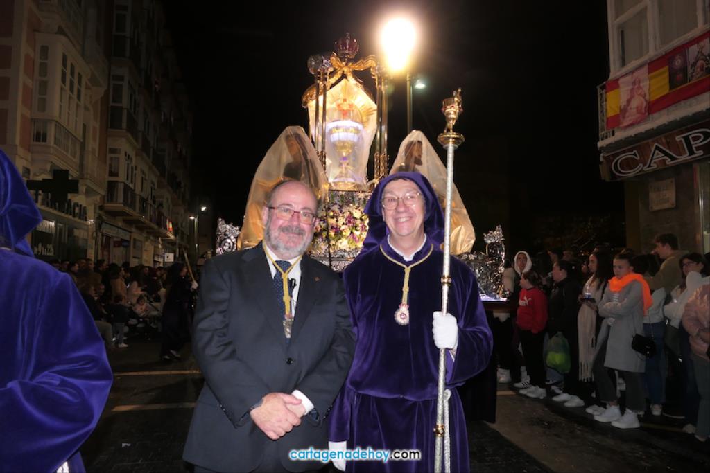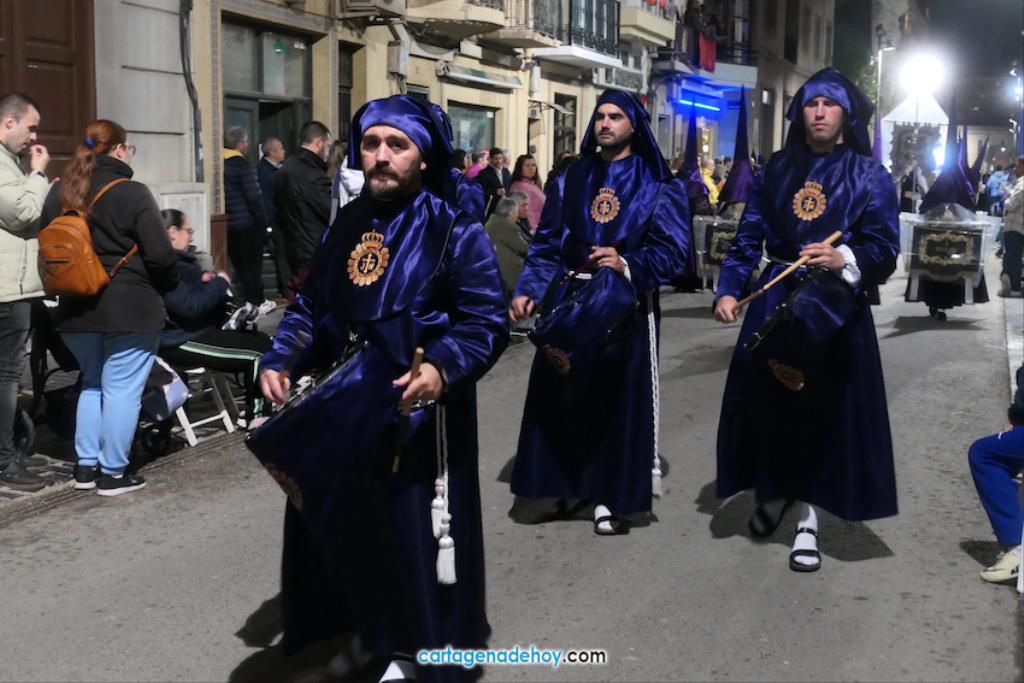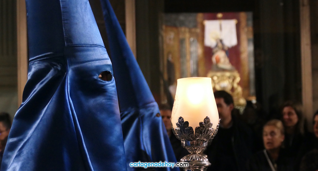 Como hemos indicado, momento muy especial fue cuando el trono llegó a la Real Basílica Menor de la Virgen de la Caridad y sus 160 portapasos lo giraron hasta poner a la Virgen de la Piedad frente a la patrona, la imagen que la motivó. Recordemos que la 'Caridad Chica' se creó para salvaguardar a la 'madre de los cartageneros' y que la representara en las salidas, pero que luego fue tal la devoción hacia ella que adquirió entidad propia como Virgen de la Piedad con 6 puñales en el corazón en lugar de 7, como lleva la Caridad.