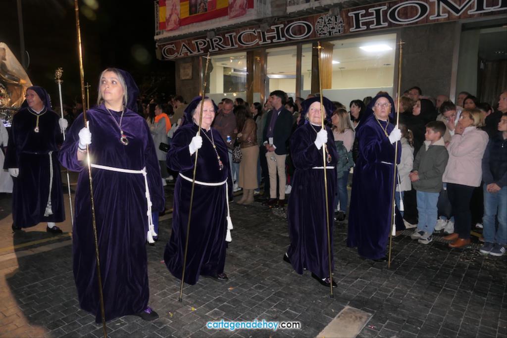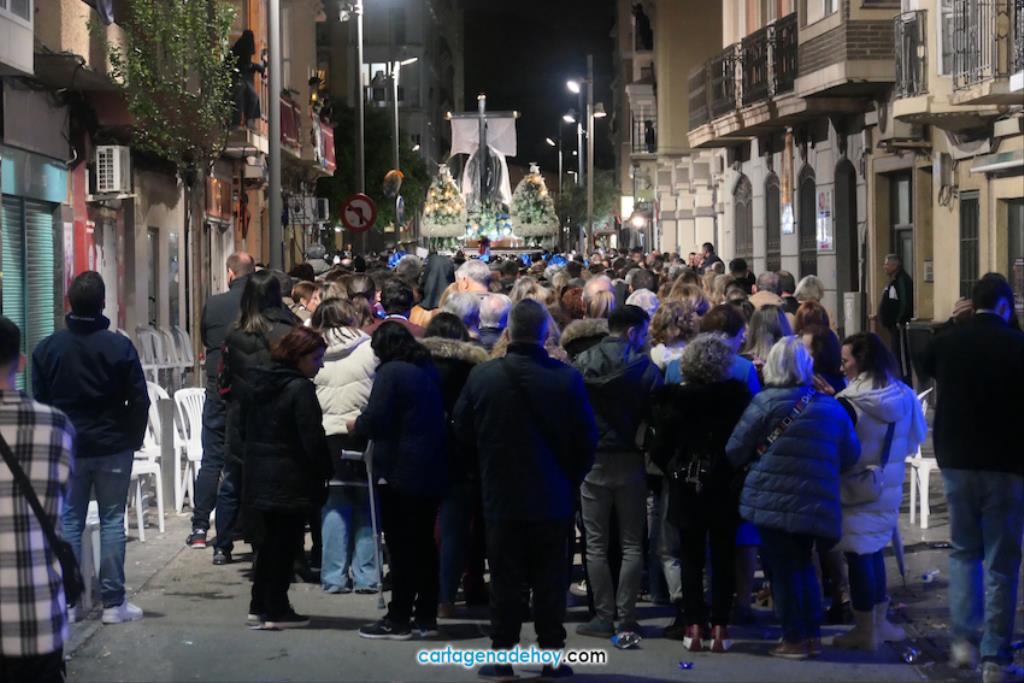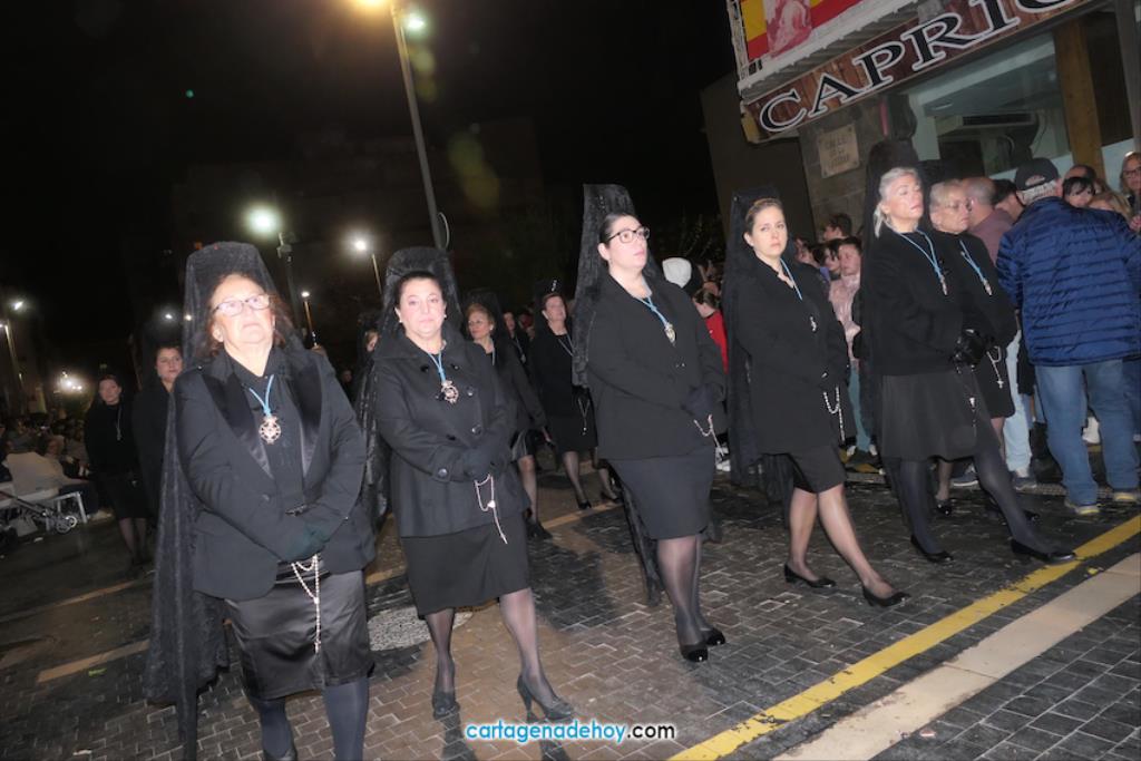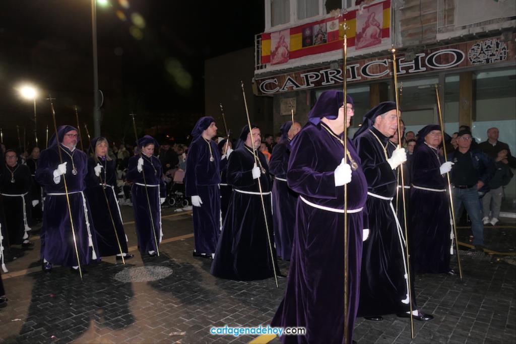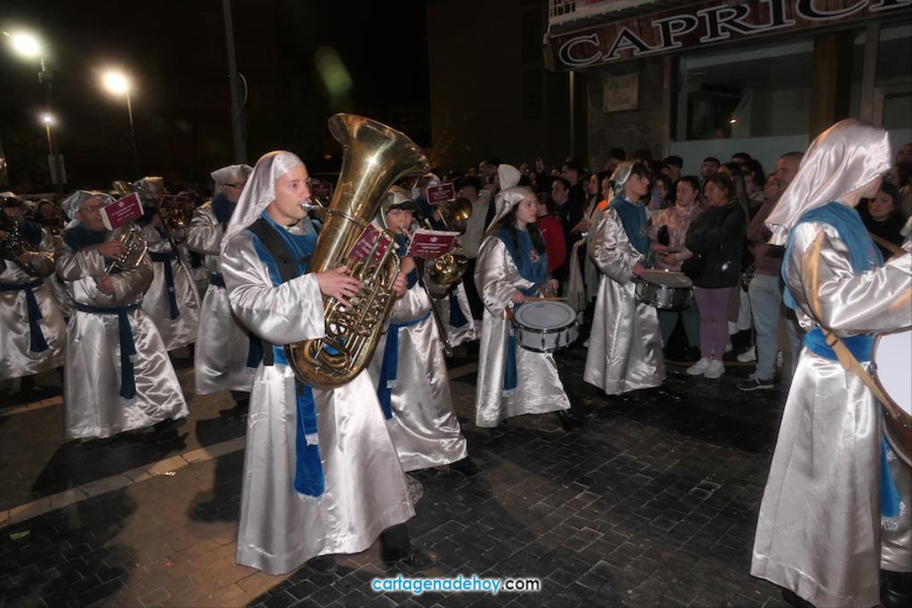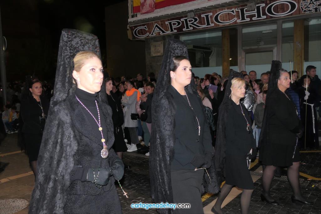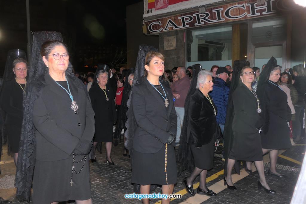 Como hemos indicado, momento muy especial fue cuando el trono llegó a la Real Basílica Menor de la Virgen de la Caridad y sus 160 portapasos lo giraron hasta poner a la Virgen de la Piedad frente a la patrona, la imagen que la motivó. Recordemos que la 'Caridad Chica' se creó para salvaguardar a la 'madre de los cartageneros' y que la representara en las salidas, pero que luego fue tal la devoción hacia ella que adquirió entidad propia como Virgen de la Piedad con 6 puñales en el corazón en lugar de 7, como lleva la Caridad.