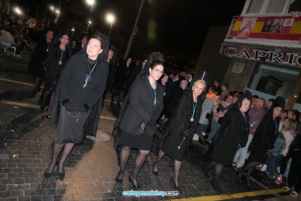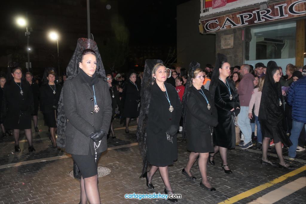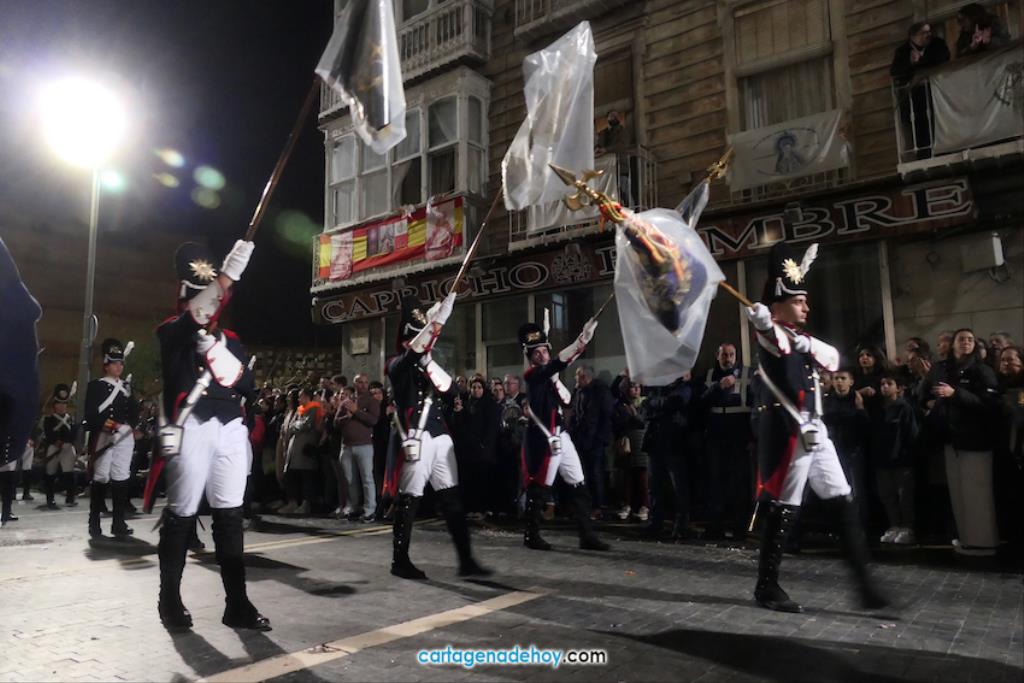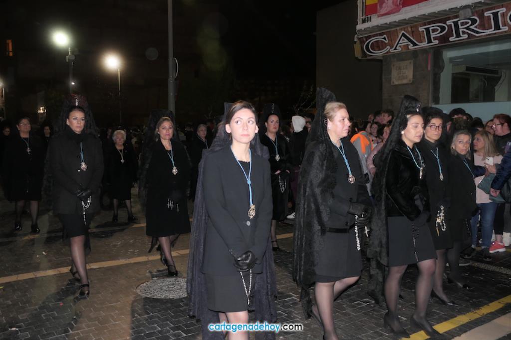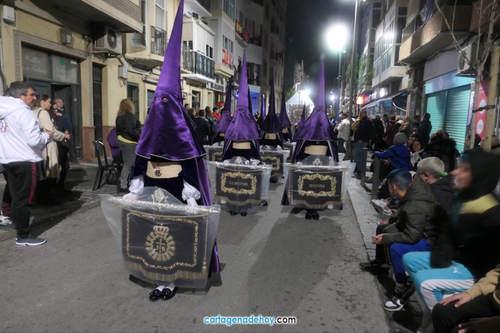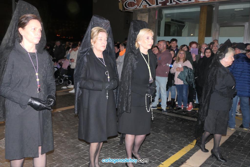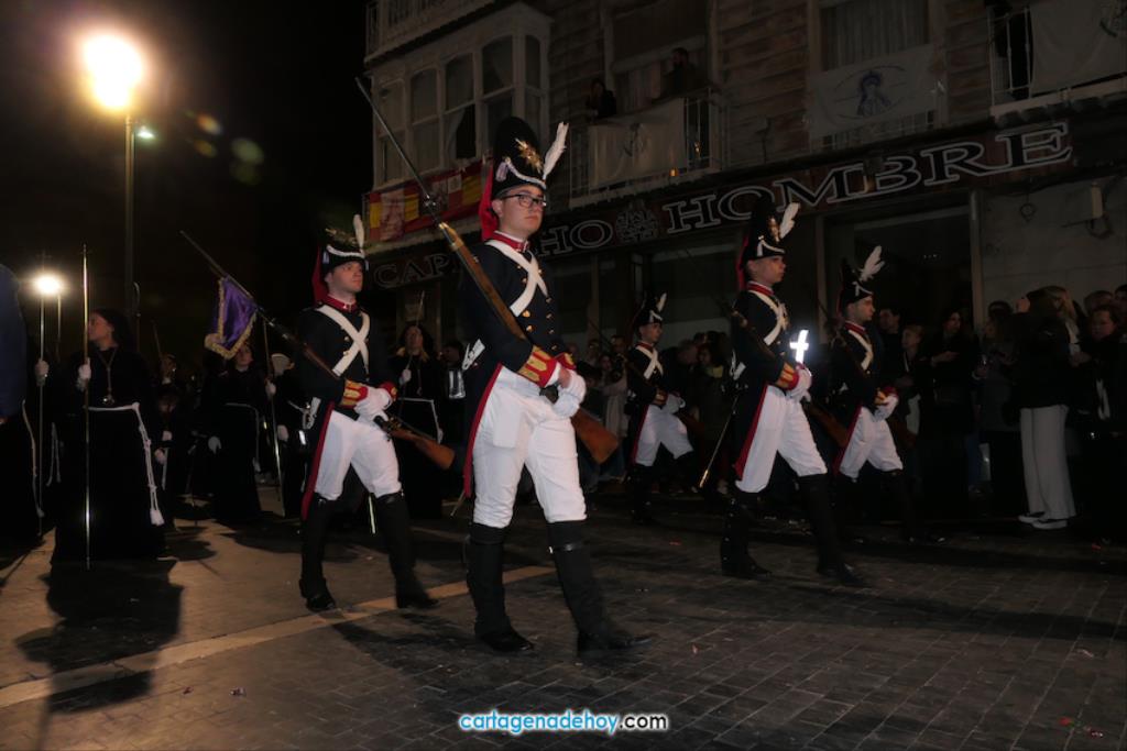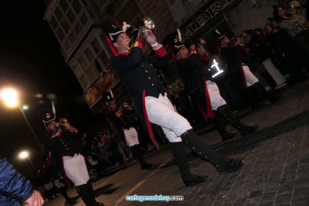 Como hemos indicado, momento muy especial fue cuando el trono llegó a la Real Basílica Menor de la Virgen de la Caridad y sus 160 portapasos lo giraron hasta poner a la Virgen de la Piedad frente a la patrona, la imagen que la motivó. Recordemos que la 'Caridad Chica' se creó para salvaguardar a la 'madre de los cartageneros' y que la representara en las salidas, pero que luego fue tal la devoción hacia ella que adquirió entidad propia como Virgen de la Piedad con 6 puñales en el corazón en lugar de 7, como lleva la Caridad.