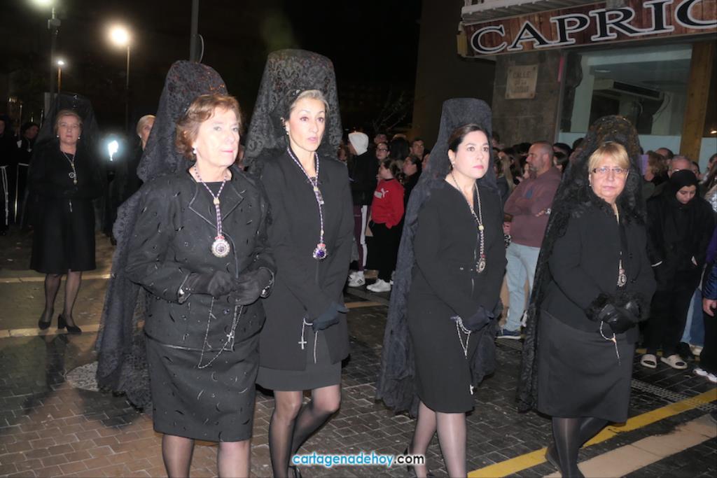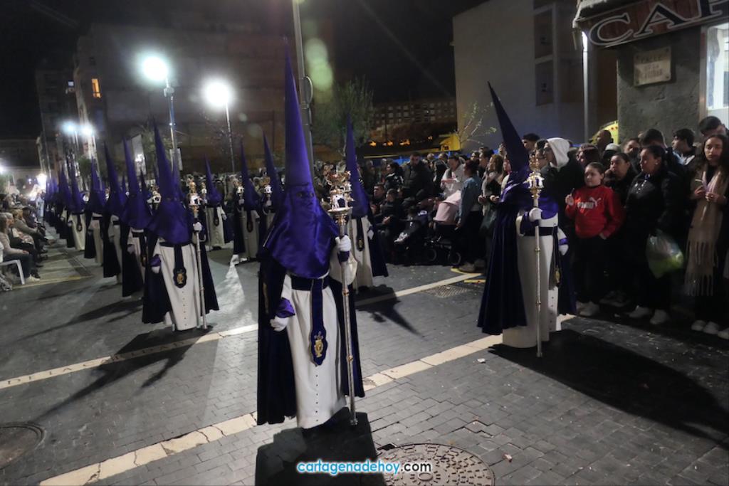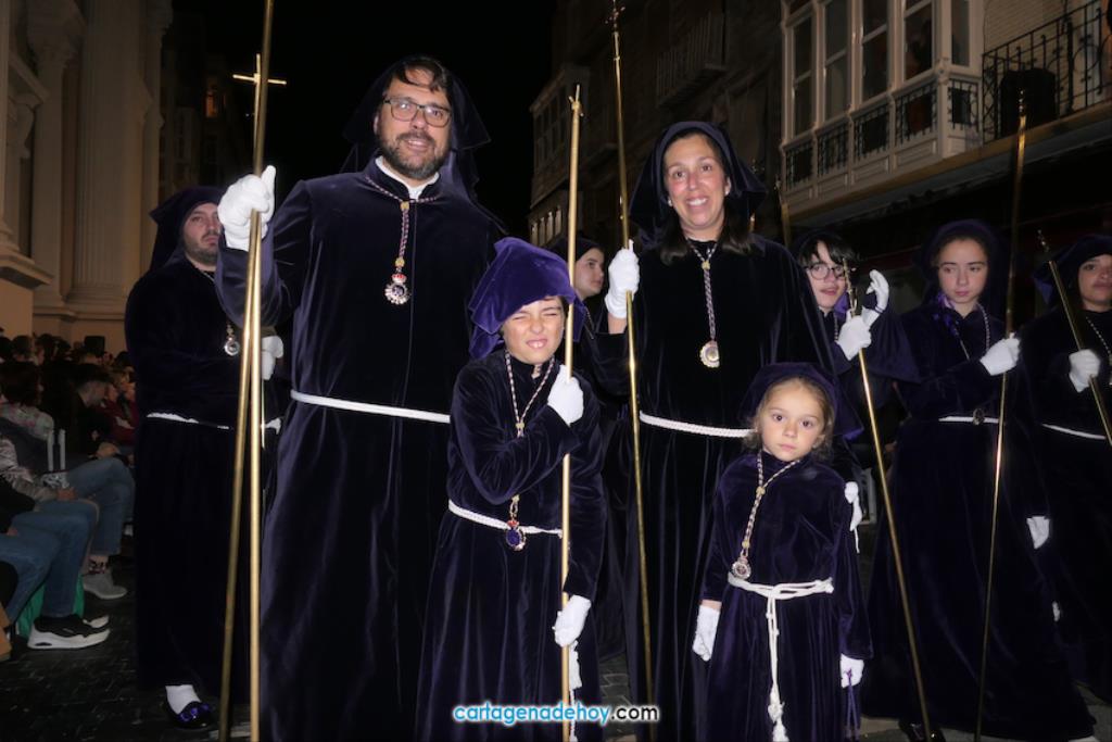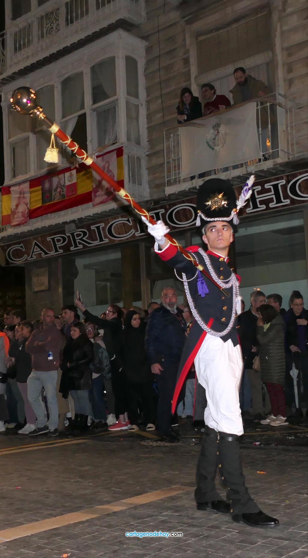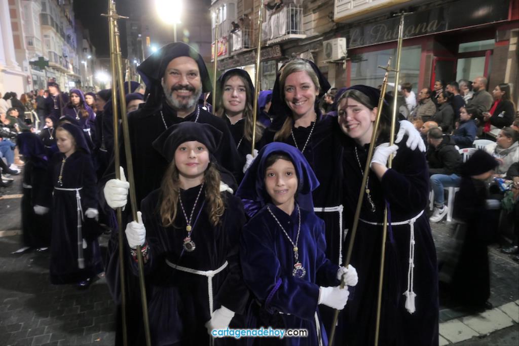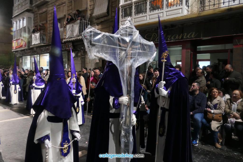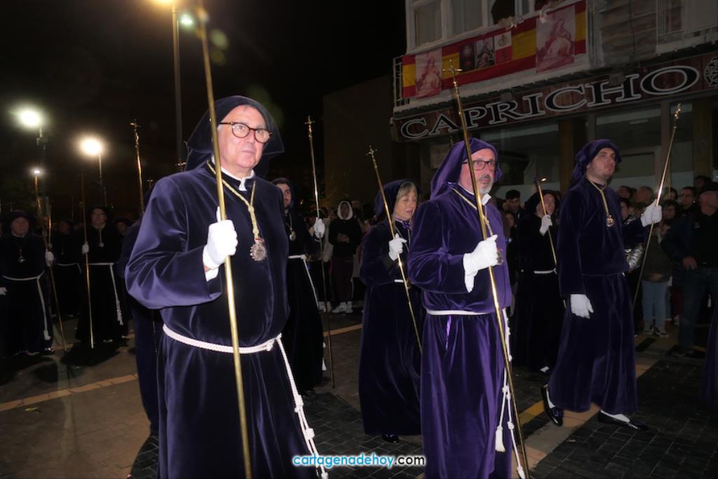 Como hemos indicado, momento muy especial fue cuando el trono llegó a la Real Basílica Menor de la Virgen de la Caridad y sus 160 portapasos lo giraron hasta poner a la Virgen de la Piedad frente a la patrona, la imagen que la motivó. Recordemos que la 'Caridad Chica' se creó para salvaguardar a la 'madre de los cartageneros' y que la representara en las salidas, pero que luego fue tal la devoción hacia ella que adquirió entidad propia como Virgen de la Piedad con 6 puñales en el corazón en lugar de 7, como lleva la Caridad.