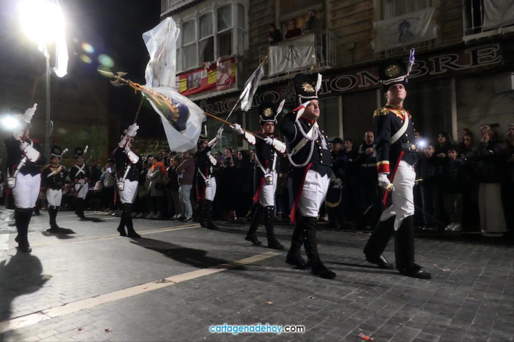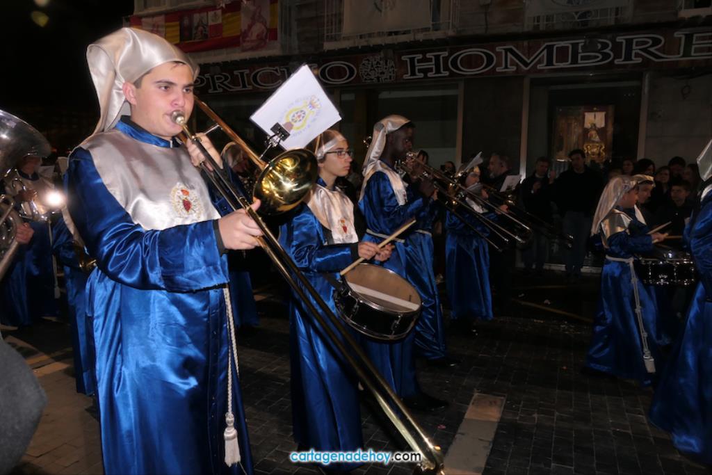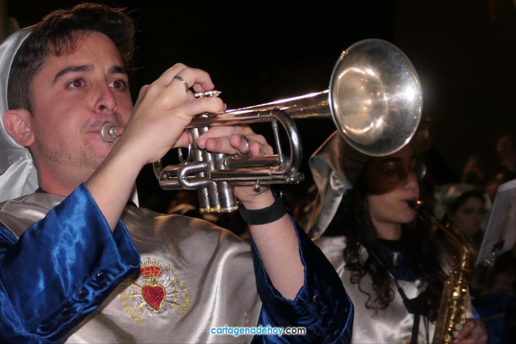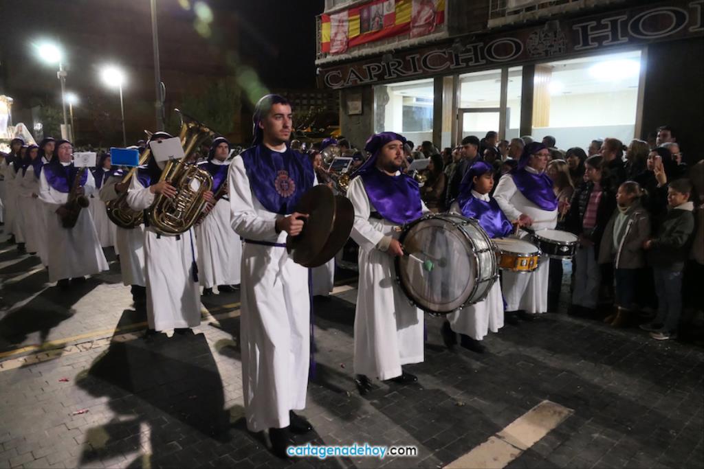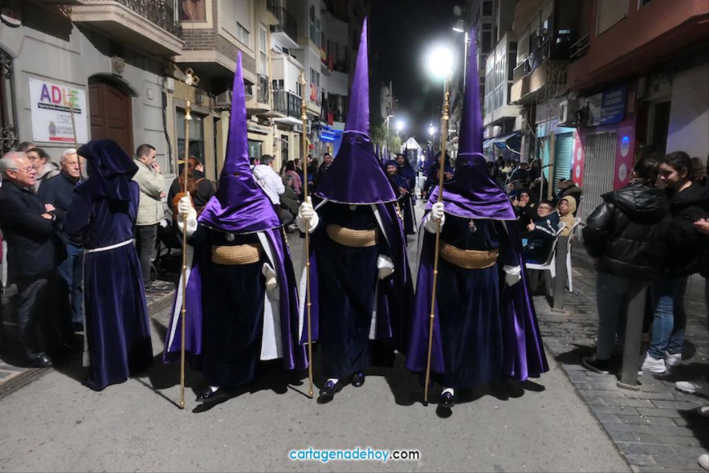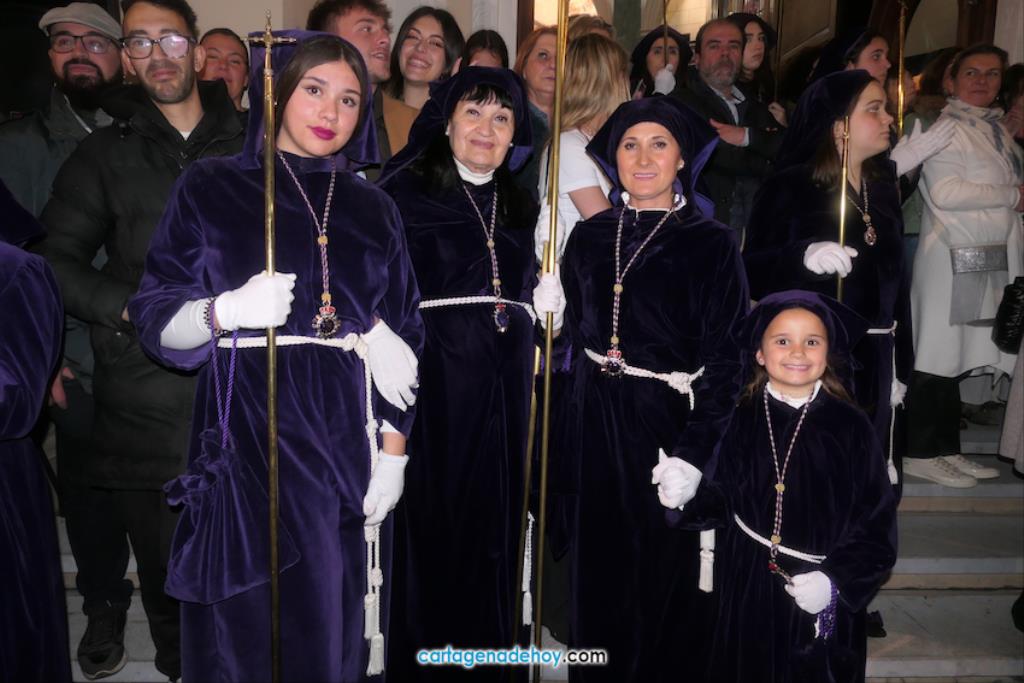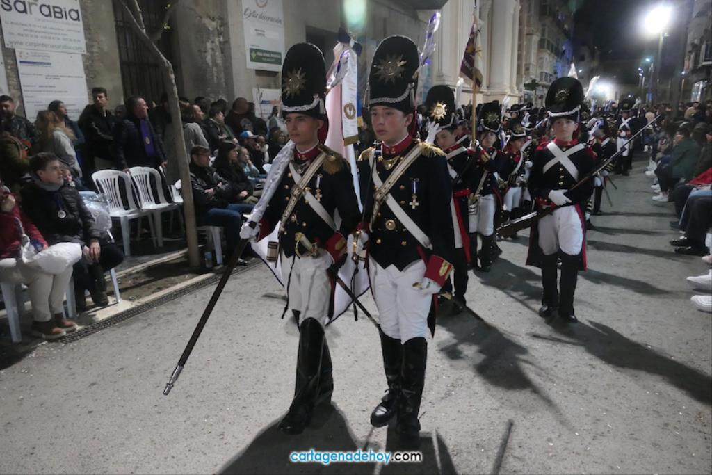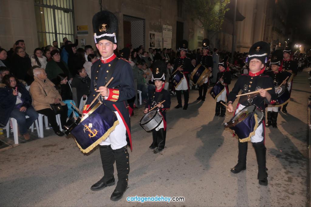 Como hemos indicado, momento muy especial fue cuando el trono llegó a la Real Basílica Menor de la Virgen de la Caridad y sus 160 portapasos lo giraron hasta poner a la Virgen de la Piedad frente a la patrona, la imagen que la motivó. Recordemos que la 'Caridad Chica' se creó para salvaguardar a la 'madre de los cartageneros' y que la representara en las salidas, pero que luego fue tal la devoción hacia ella que adquirió entidad propia como Virgen de la Piedad con 6 puñales en el corazón en lugar de 7, como lleva la Caridad.