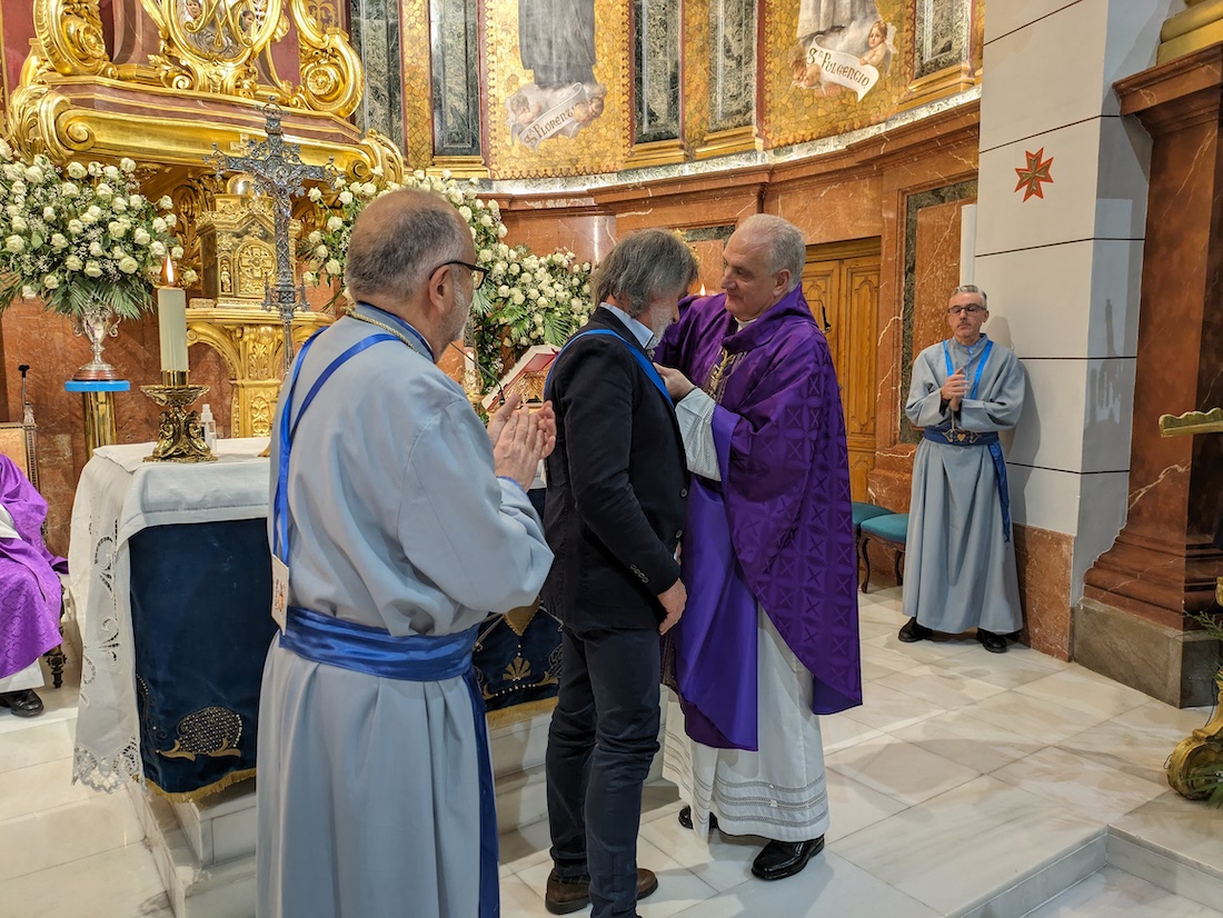 El pintor palmesano recibió la máxima distinción de la agrupación marraja en la tradicional homilía previa a la procesión, en la que el capellán, Fernando Gutiérrez Reche, recordó la necesidad de "meter el hombro todo el año".