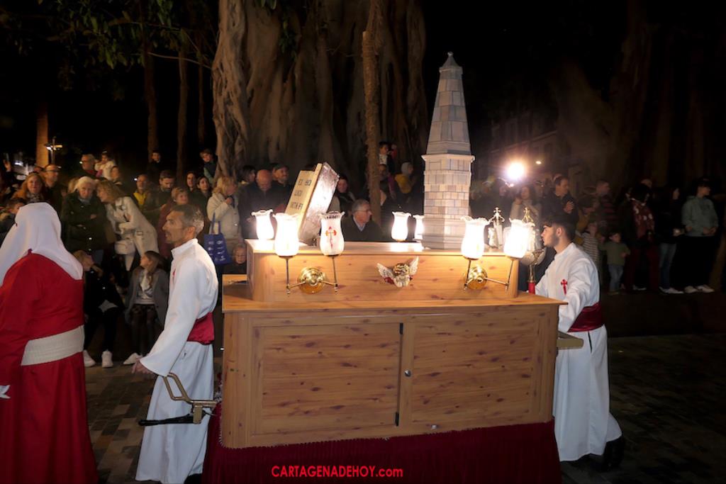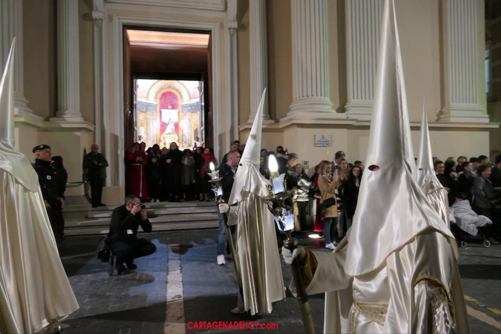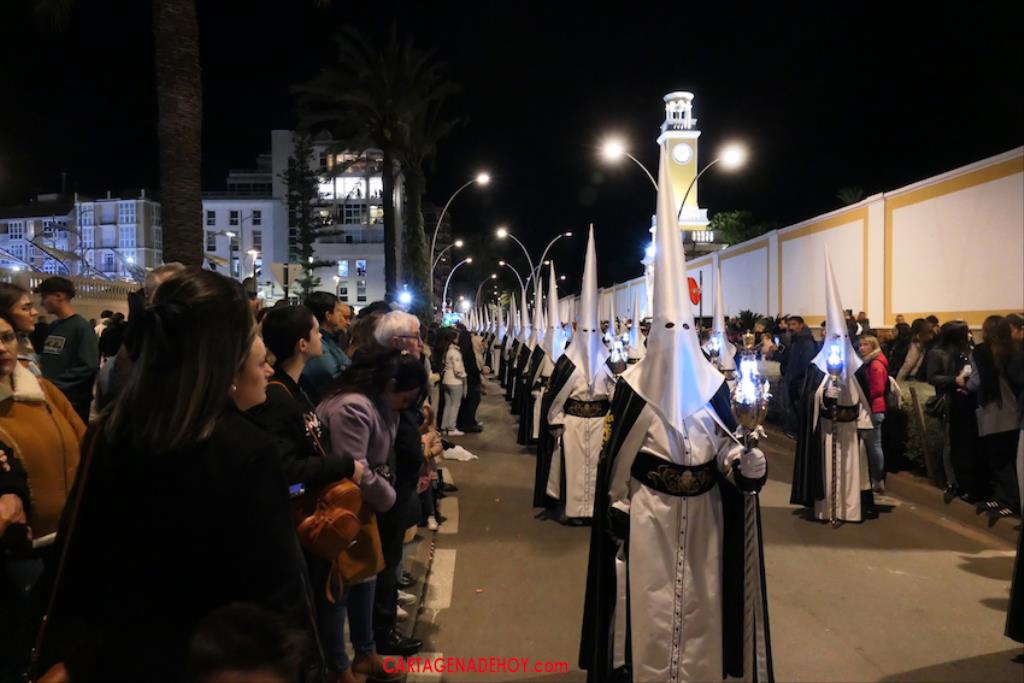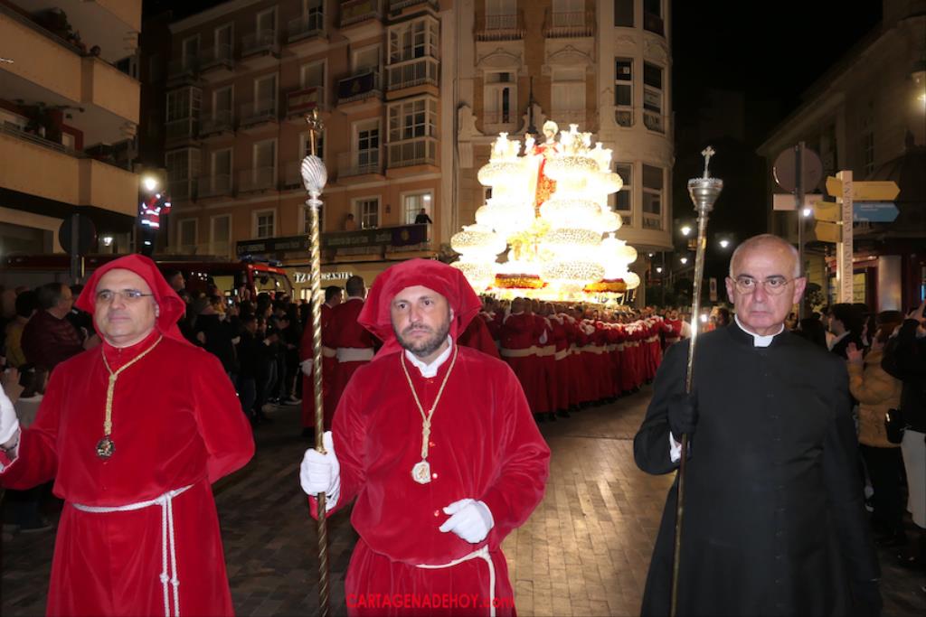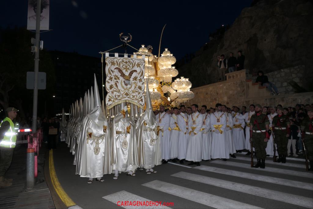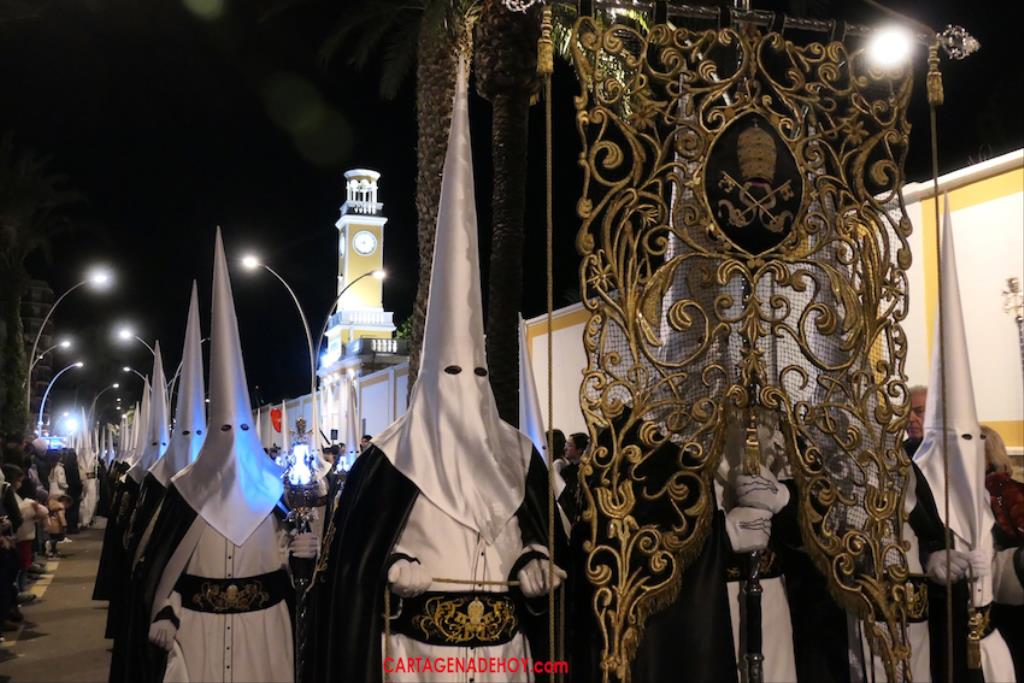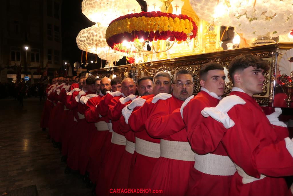 La procesión fue transmitida en directo por la televisión autonómica 7RMtv, por Tele-Cartagena y por el canal de Youtube de 'La Semana Santa de Cartagena tv':