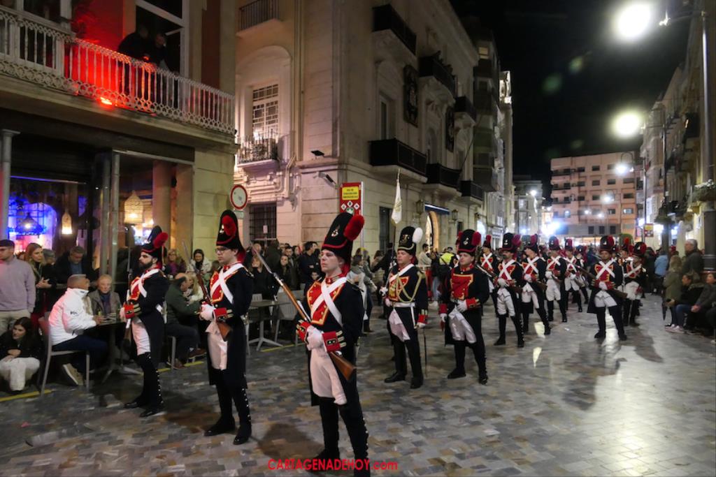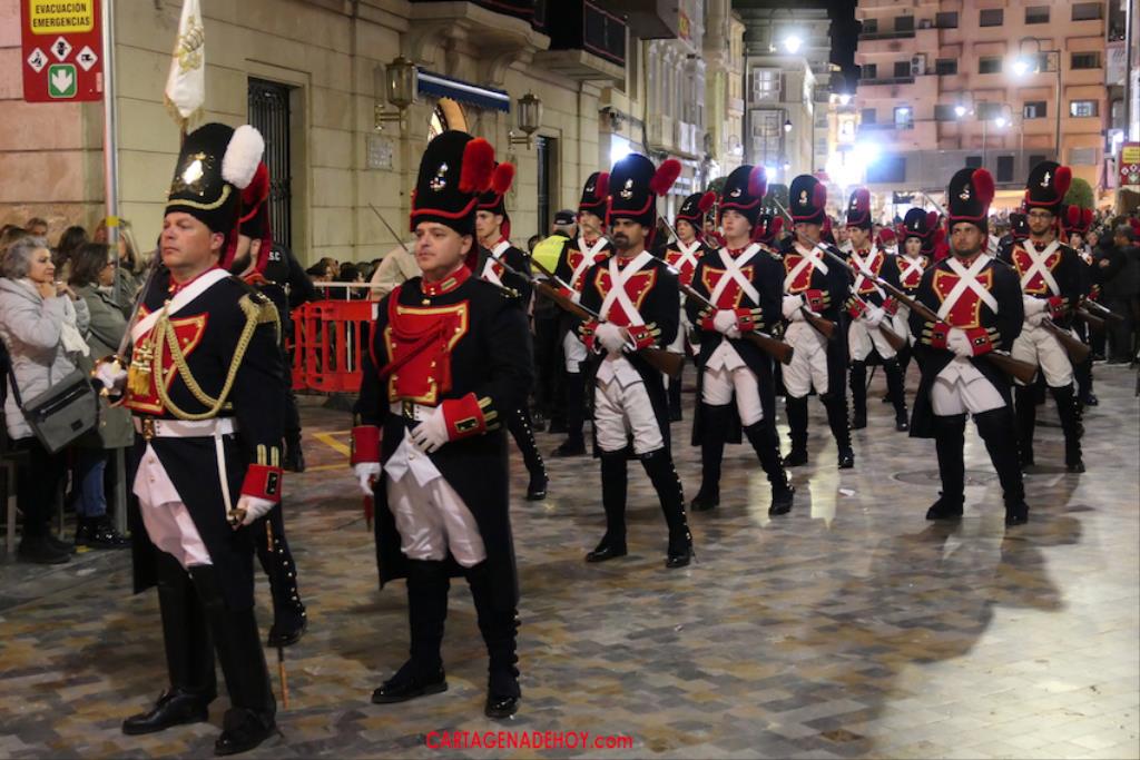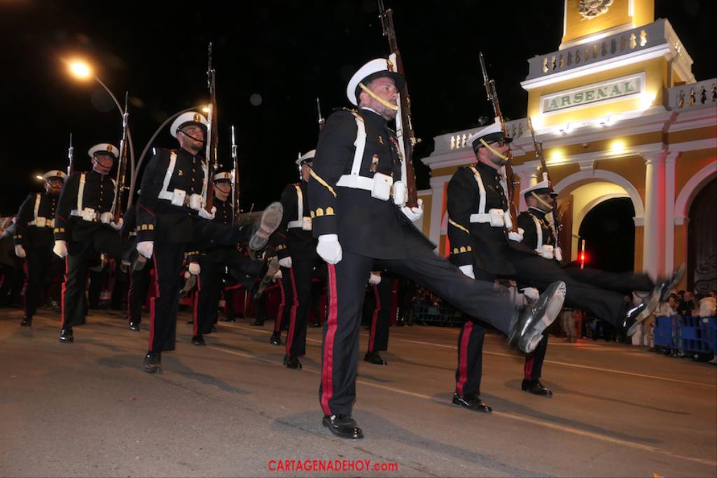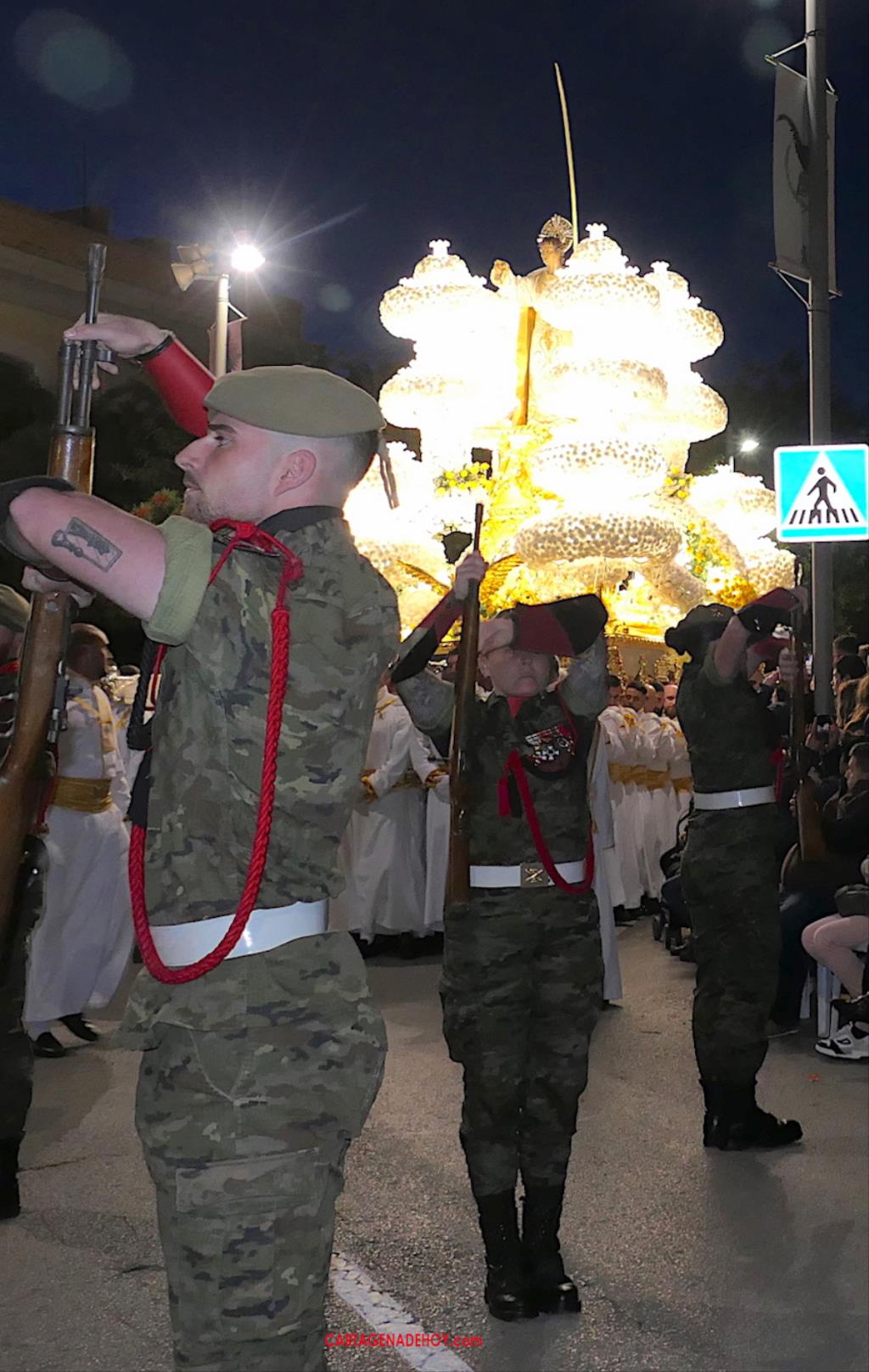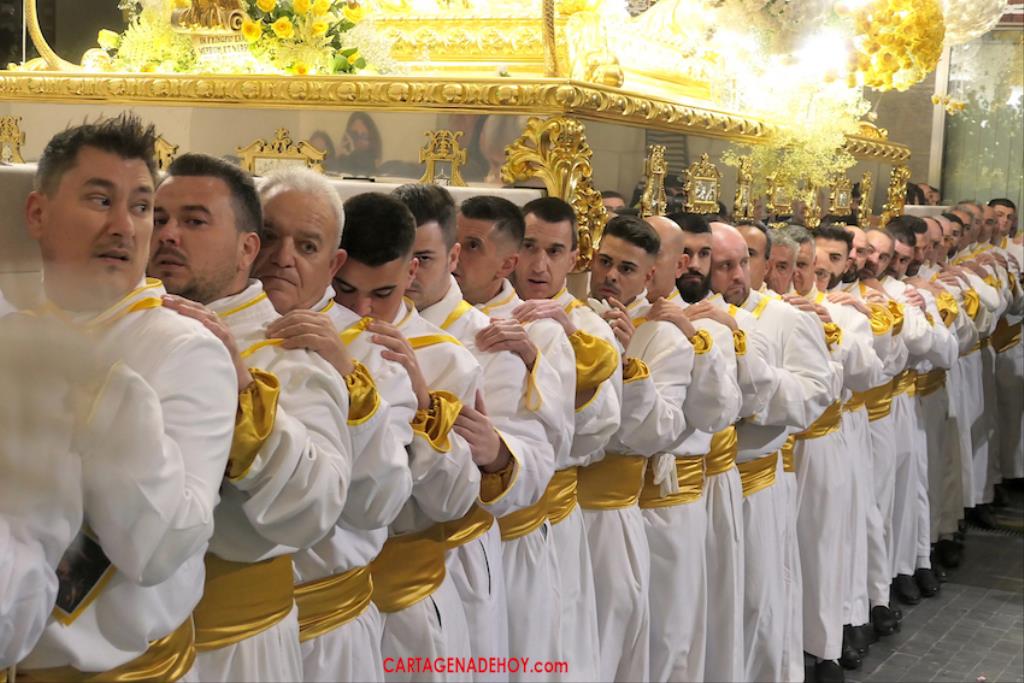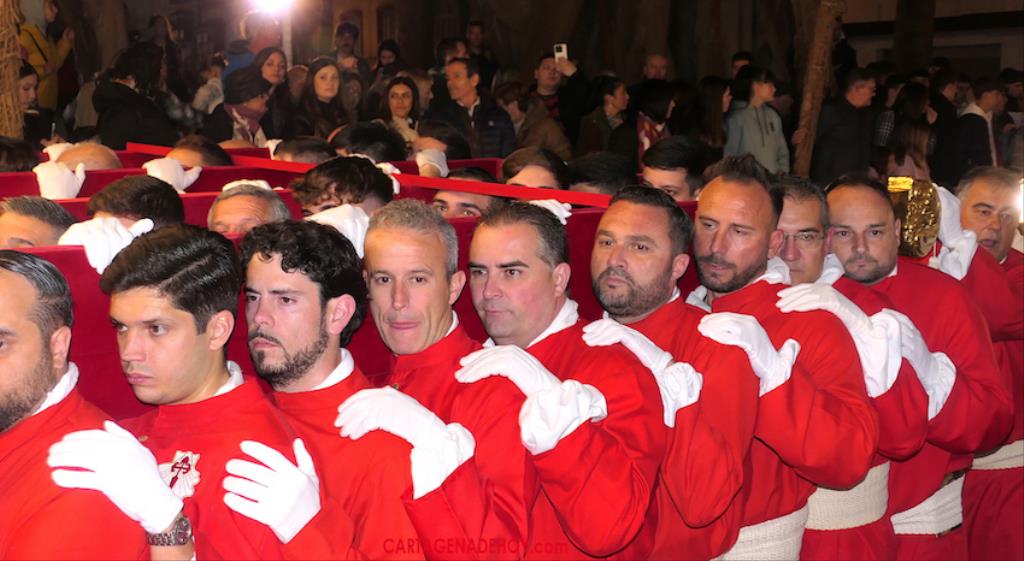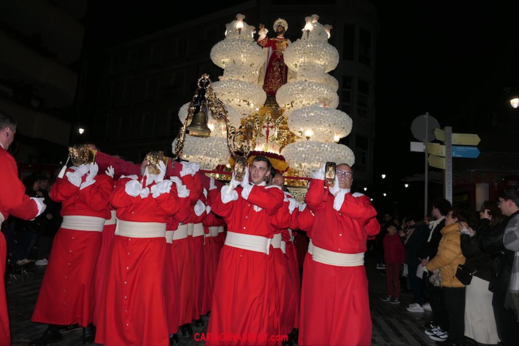 Otro apunte. Santiago y San Juan repitieron adorno floral y San Pedro llevó a cabo una total renovación con flores llegadas, incluso, de varios países. Sin embargo, en este terreno queremos apuntar que para muchos espectadores es abusiva tanta flor en la actualidad, cuando numerosas personas sacan sus móviles para fotografiar a los santos y es muy complicado hacerlo, pues están muy tapados por las torres florales que los rodean. Realmente, sólo se les puede ver bien de forma frontal, lo que no es fácil para los que, como publico, están en los laterales del recorrido. "No hay manera de hacerle una foto", escuchamos, con distintas palabras, en varios puntos de esta noche. La flor es también es una seña de identidad de la Semana Santa de Cartagena, pero el debate está en la cantidad en determinados tronos.
