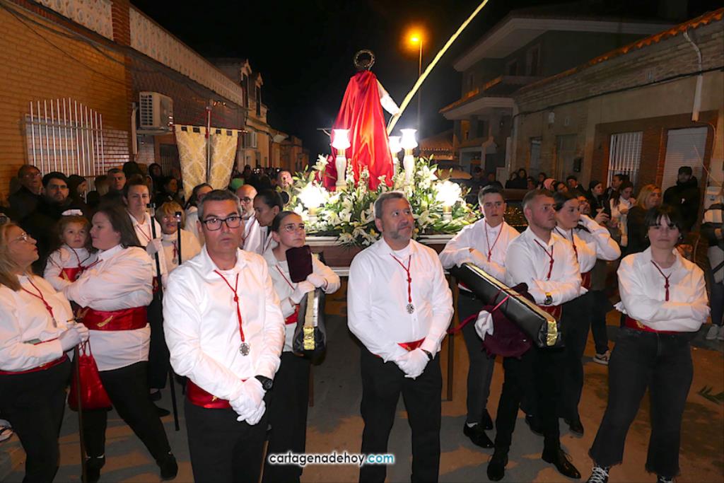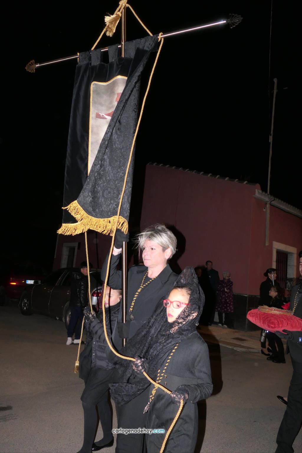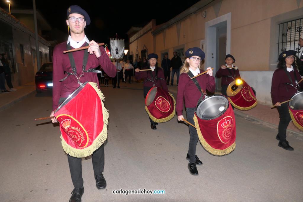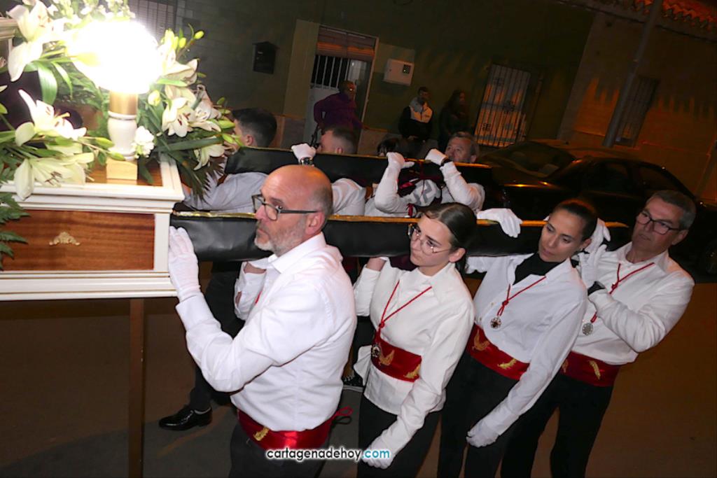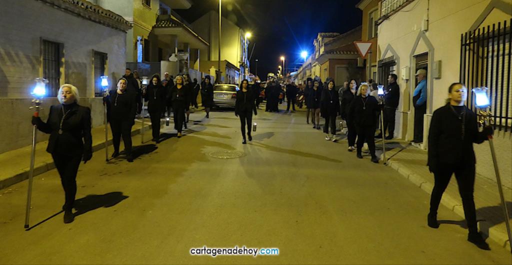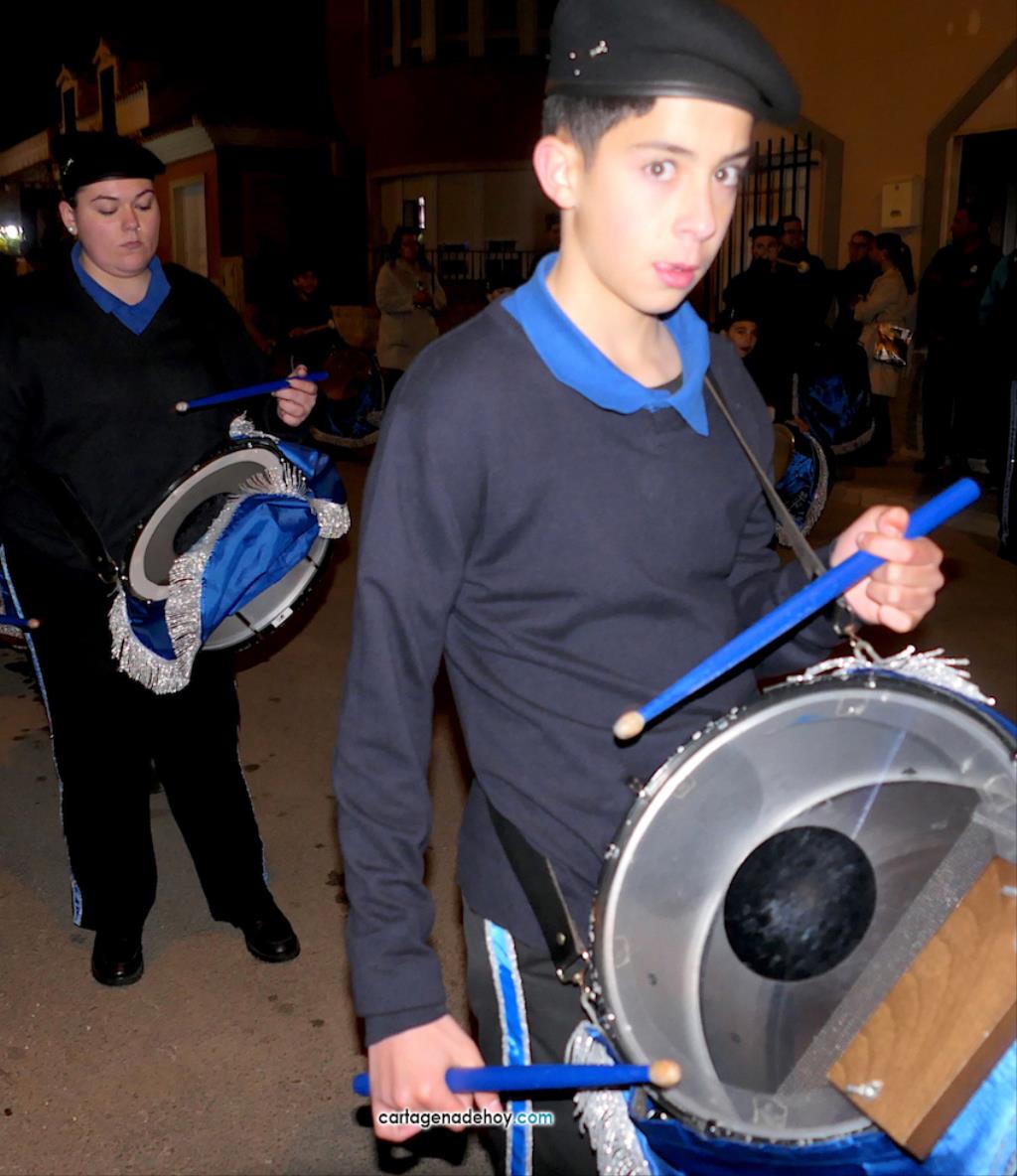 El Llano del Beal, Estrecho de San Ginés y Beal aportan imágenes para crear un atractivo cortejo pasionario que, desde 2017 y con el paréntesis pandémico, parte de la iglesia llanera para llegar a la de Nicolás de Bari, en El Estrecho. Anoche, pese al fuerte viento, bastantes vecinos salieron para ver la procesión.