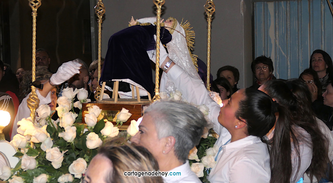Entre los momentos especiales del recorrido están la parada ante el histórico Casino en El Llano del Beal y el encuentro final en El Estrecho de San Ginés. En el primero de estos lugares, el Cristo de la Agonía y la Virgen se giraron hacia el balcón donde el cantaor 'El Mone' les dedicó una saeta. Mientras la interpretaba continuaron las ráfagas de viento, generado que la Virgen se partiese. La procesión no se reanudó después hasta que que atada para que recuperase su figura erguida en una solución de emergencia.