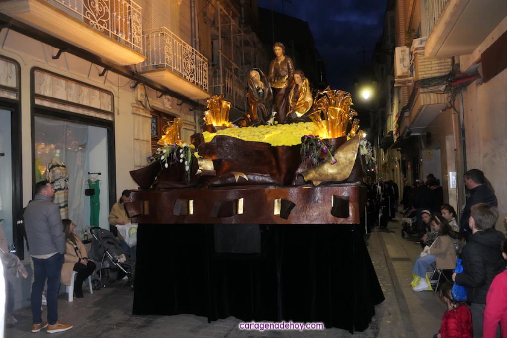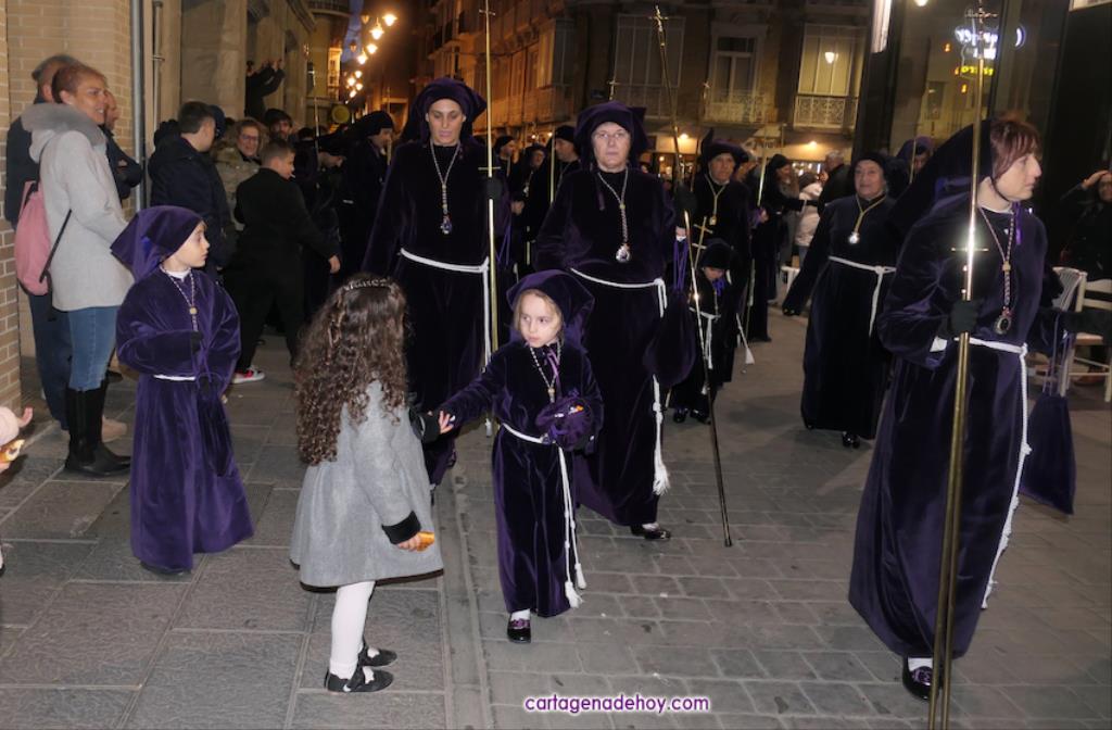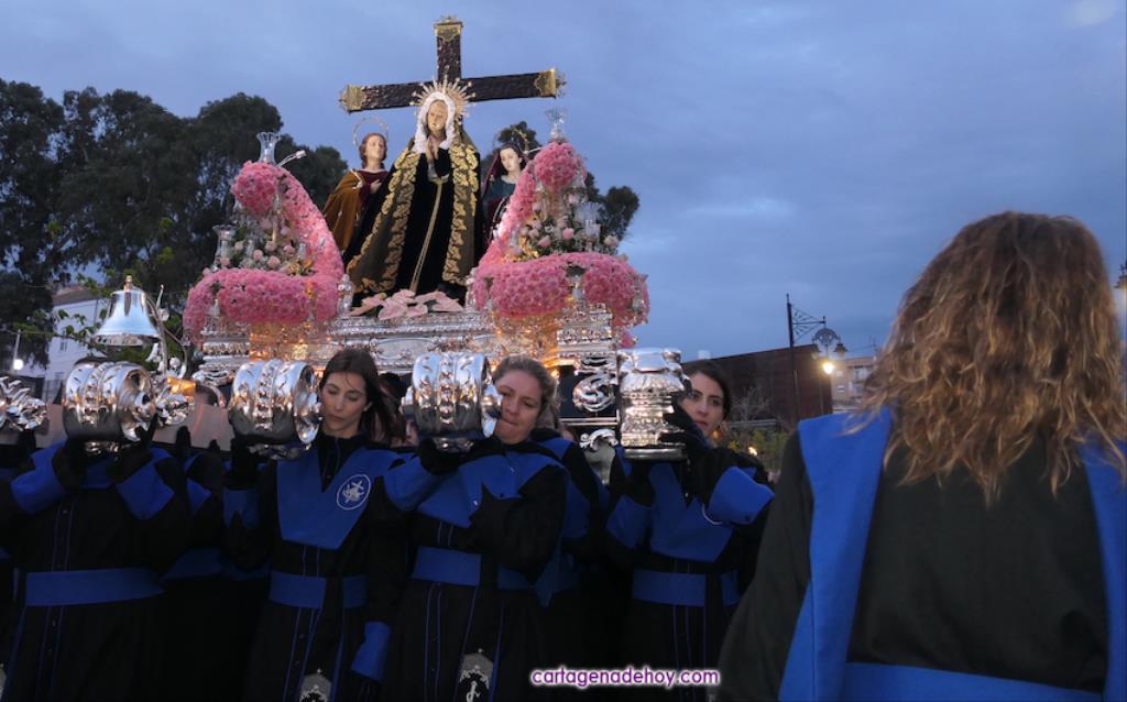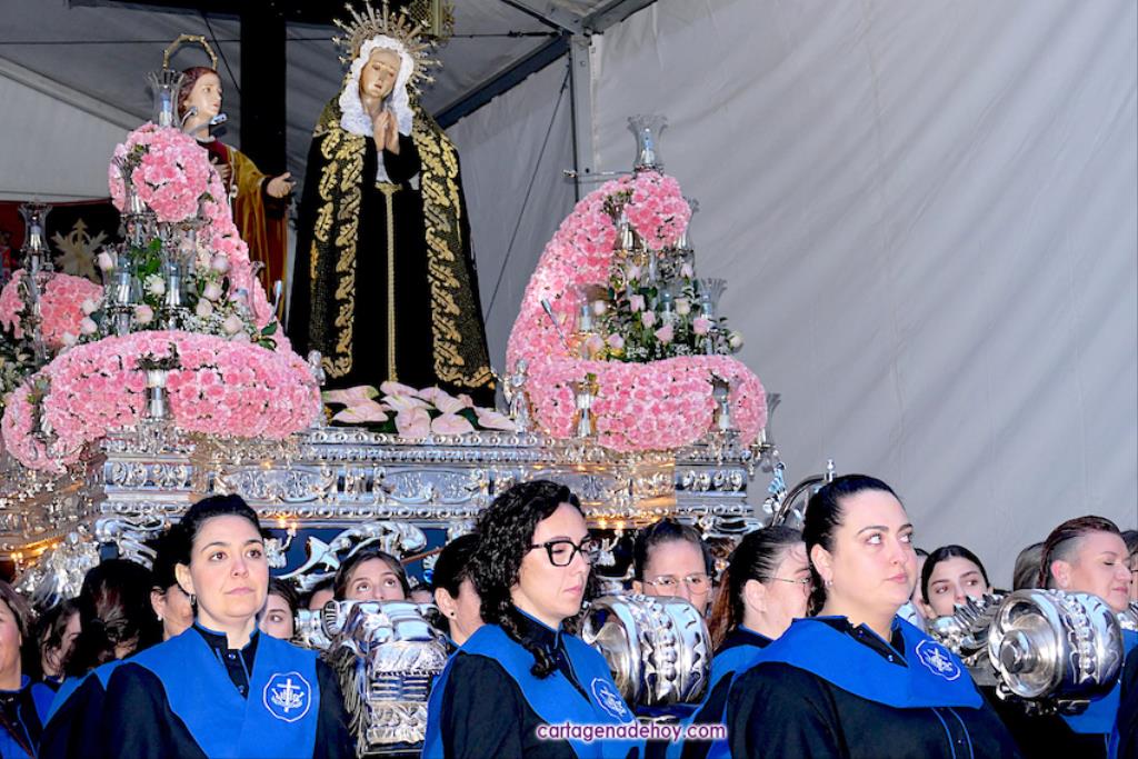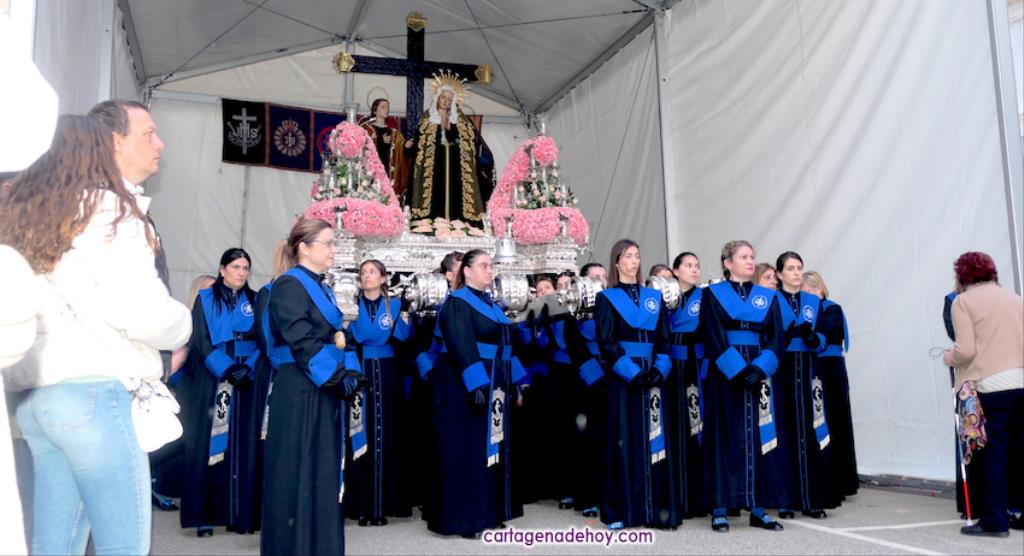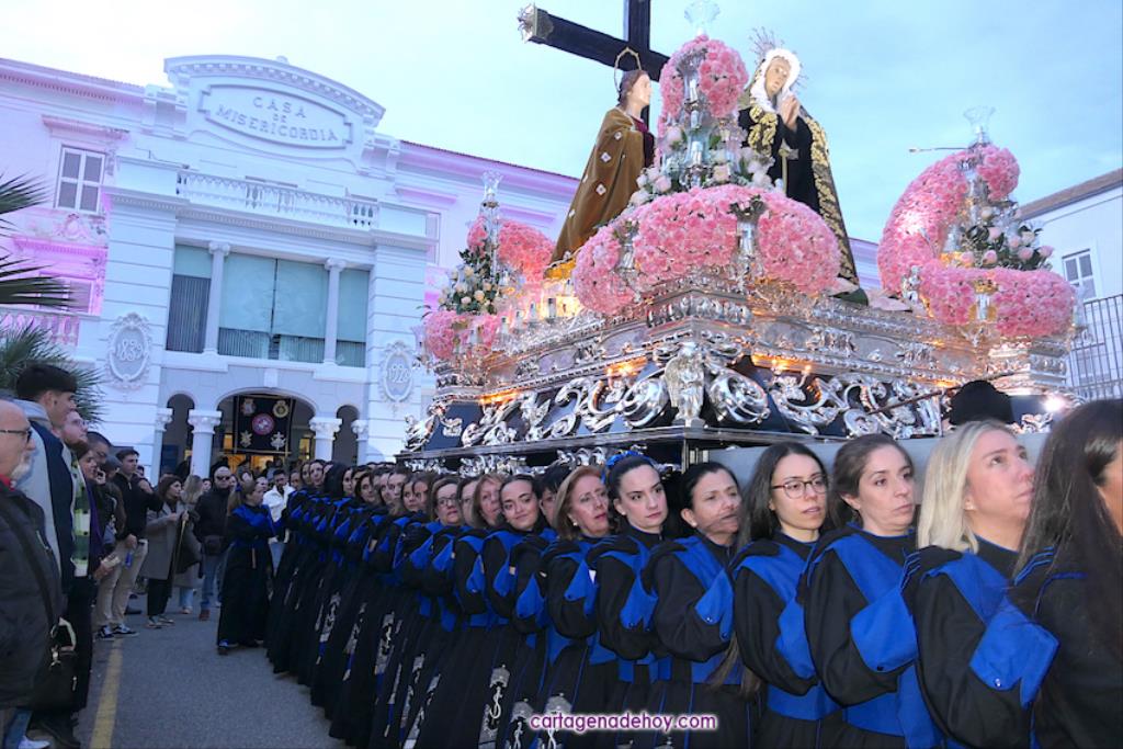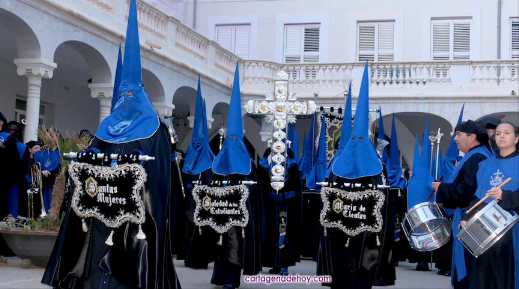 La Cofradía del Nazareno estrenó este desfile en 1956 para representar la pena y el luto por la muerte de Jesucristo, pero con la esperanza de la resurrección. Es el cortejo menos sonado de la hermandad, desde no escatiman cuidados, como muestra las recientes restauraciones de la Virgen de la Soledad de los Pobres (de talla compleeta) y del 'Santo Amor de San Juan', además de que este año la Virgen de las Santas Mujeres cuenta con nuevas manos, recuperando la posición en actitud de rezo de las mismas, como primitivamente iba. También luce nuevos pies tallados por Pablo Espinosa Gómez. Otras novedades han sido la botonadura de marfil del tercio de la Vera Cruz y los recuperados fajines negros con flecos rojos sanjuanistas.