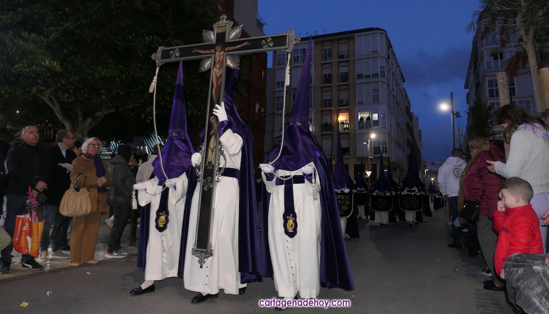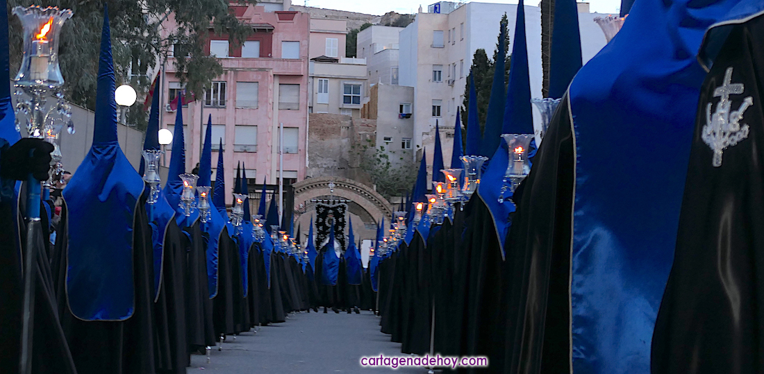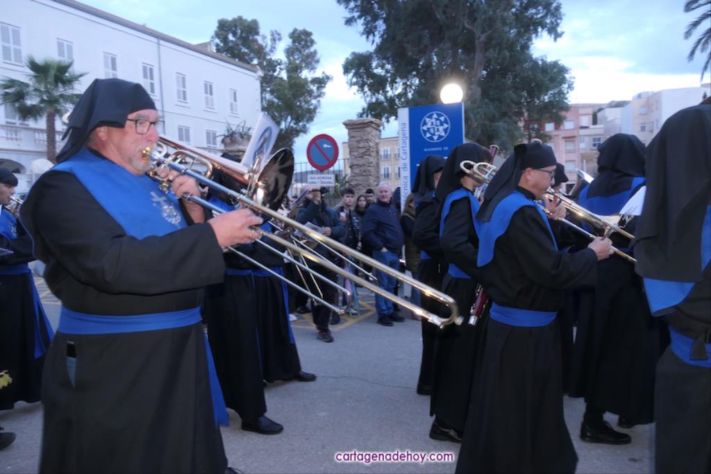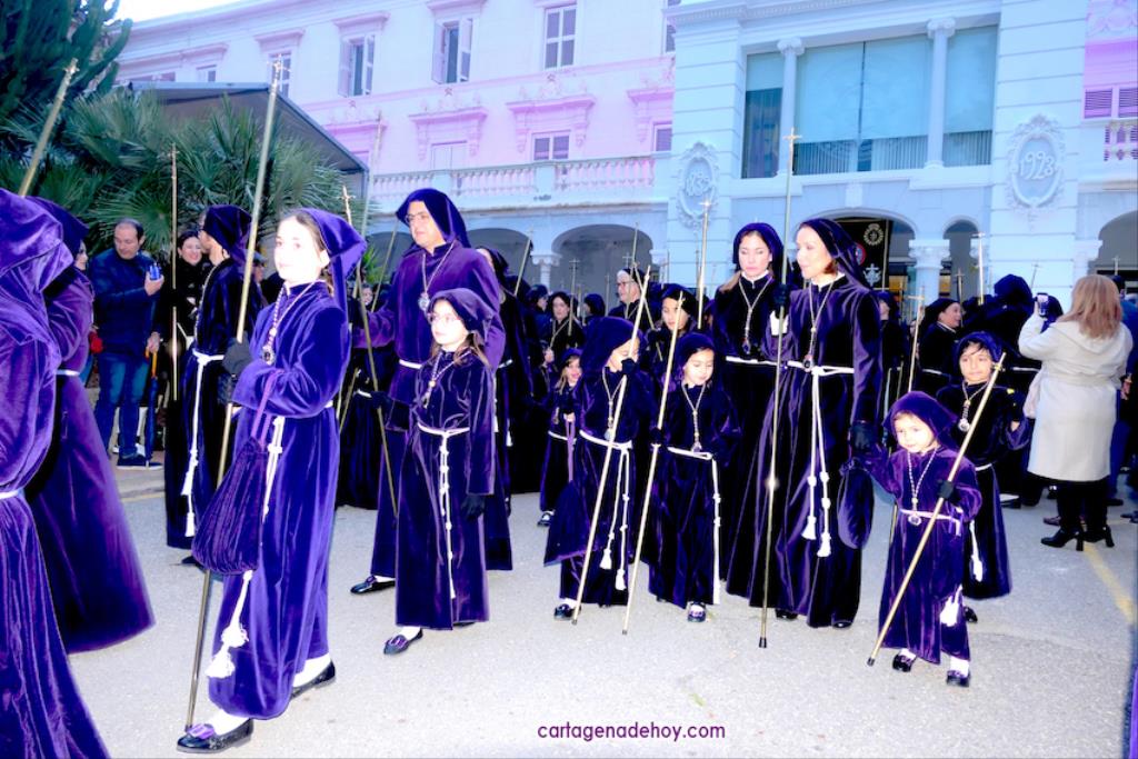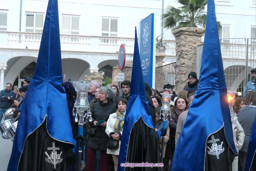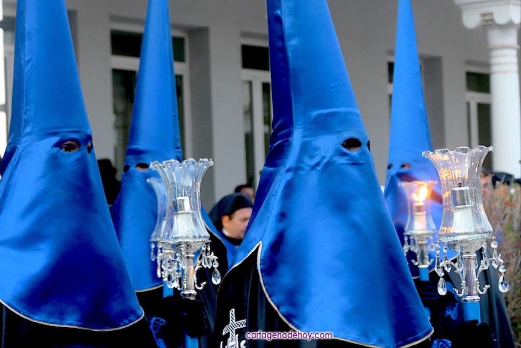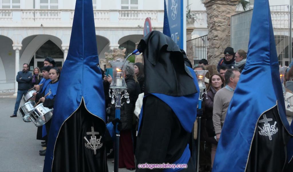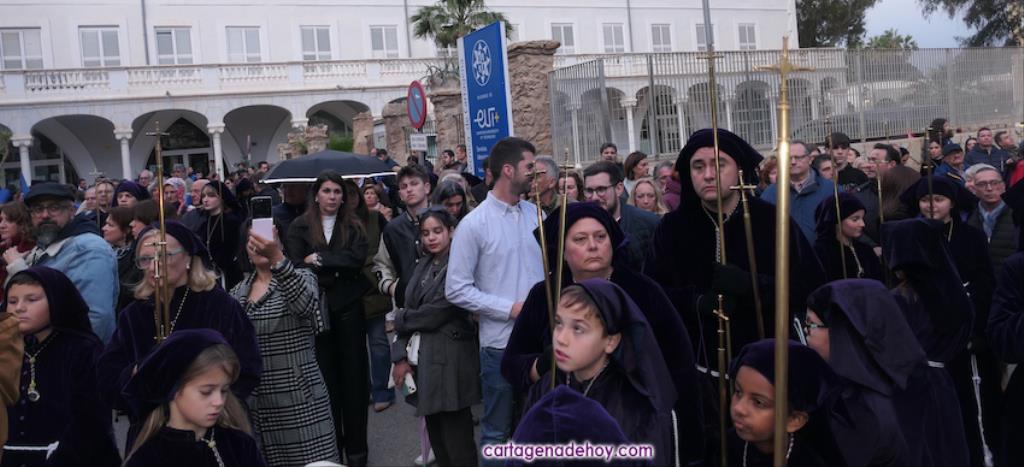 La tarde de este sábado no era precisamente 'de gloria' en el capítulo climático. Es de esos días en los que no apetece estar en la calle por lo desapacible y molesto que son el viento y el frío. Pocas cosas son capaces de alterar la búsqueda del confort. Una es el fútbol de élite, y de ahí que sea 'el deporte rey'. La otra, en Cartagena, es su Semana Santa, y de ahí que sea 'la reina de las fiestas'. Bien es cierto que no ha acudido el público de las grandes ocasiones, pero ha sido mucho el que ha presenciado el paso de la 'Procesión de la Vera Cruz', con la que se han despedido los marrajos.