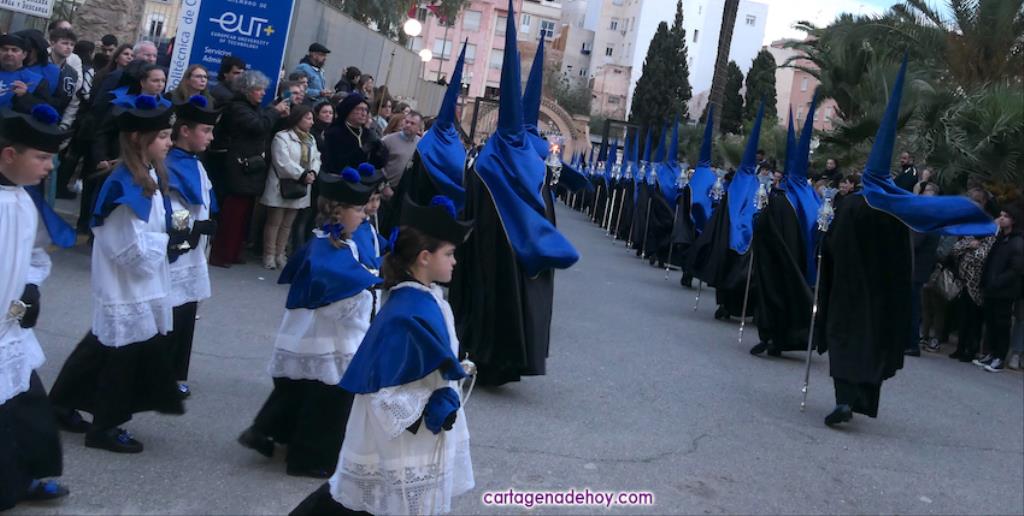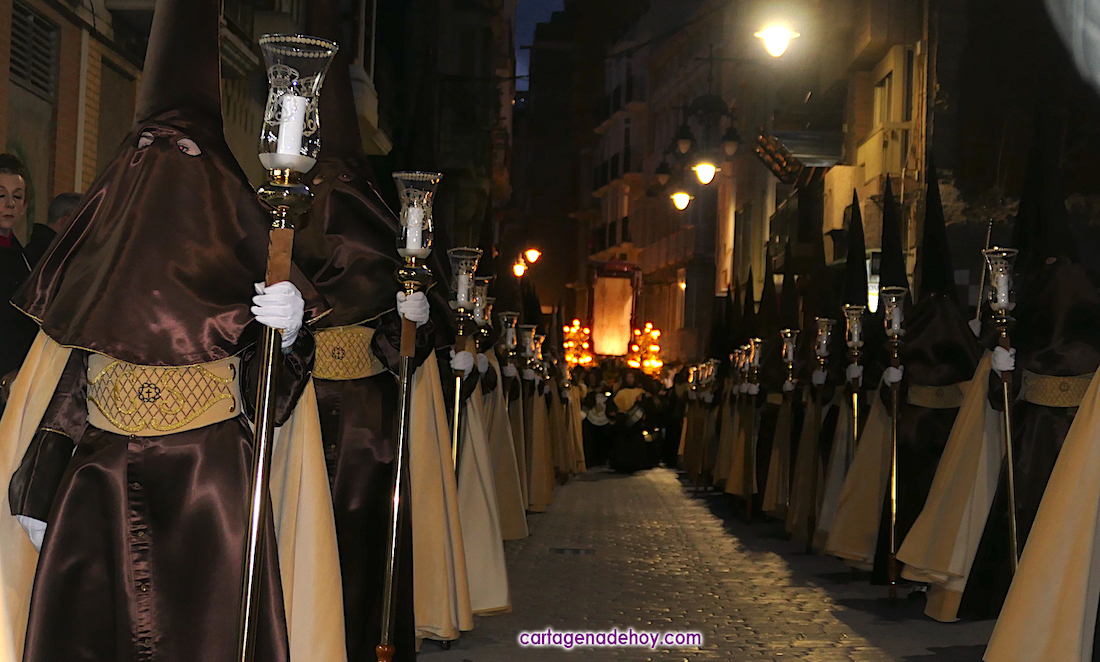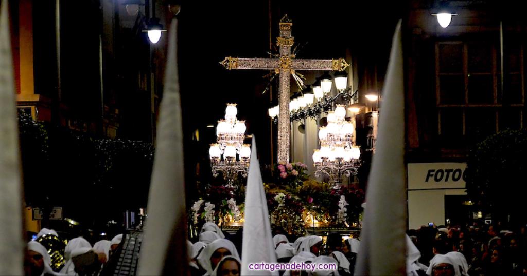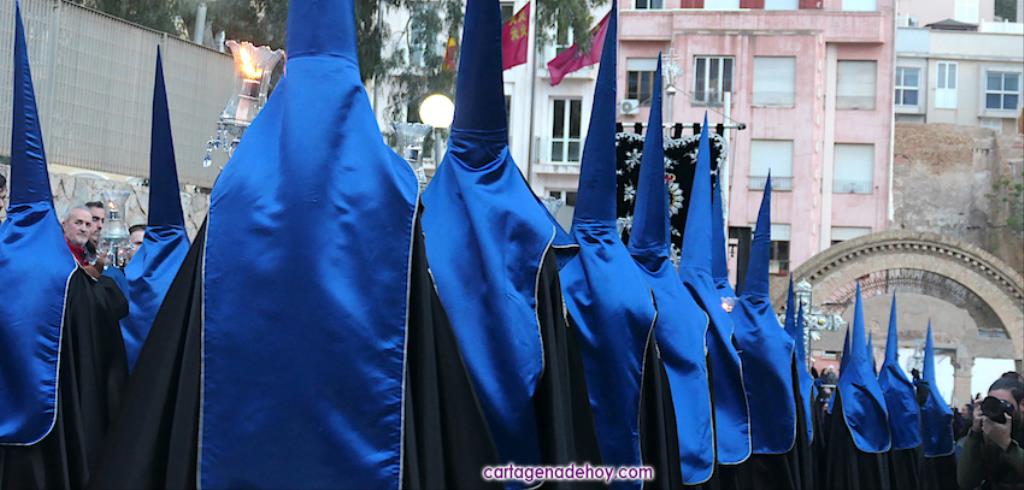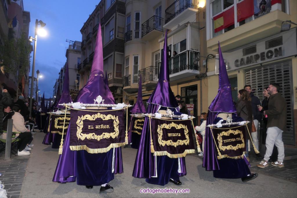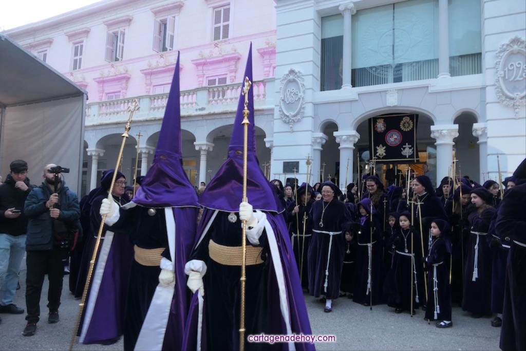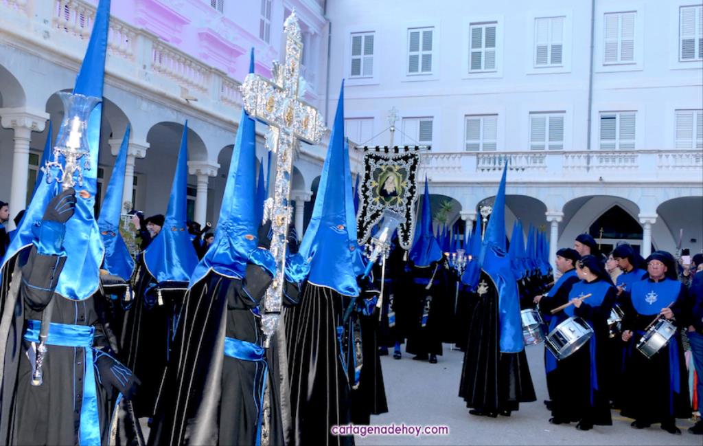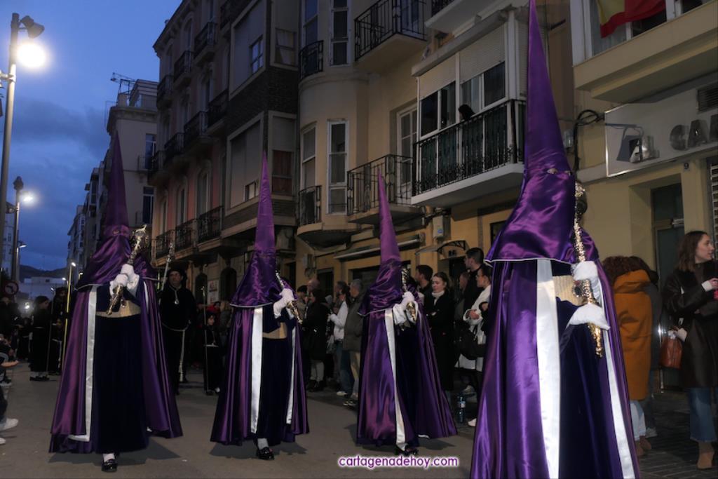 La tarde de este sábado no era precisamente 'de gloria' en el capítulo climático. Es de esos días en los que no apetece estar en la calle por lo desapacible y molesto que son el viento y el frío. Pocas cosas son capaces de alterar la búsqueda del confort. Una es el fútbol de élite, y de ahí que sea 'el deporte rey'. La otra, en Cartagena, es su Semana Santa, y de ahí que sea 'la reina de las fiestas'. Bien es cierto que no ha acudido el público de las grandes ocasiones, pero ha sido mucho el que ha presenciado el paso de la 'Procesión de la Vera Cruz', con la que se han despedido los marrajos.