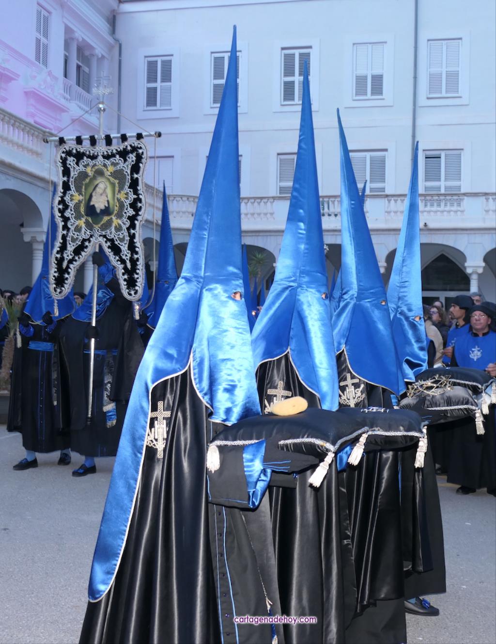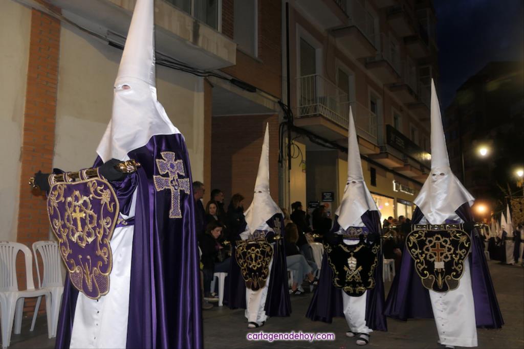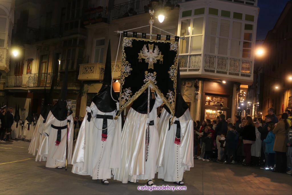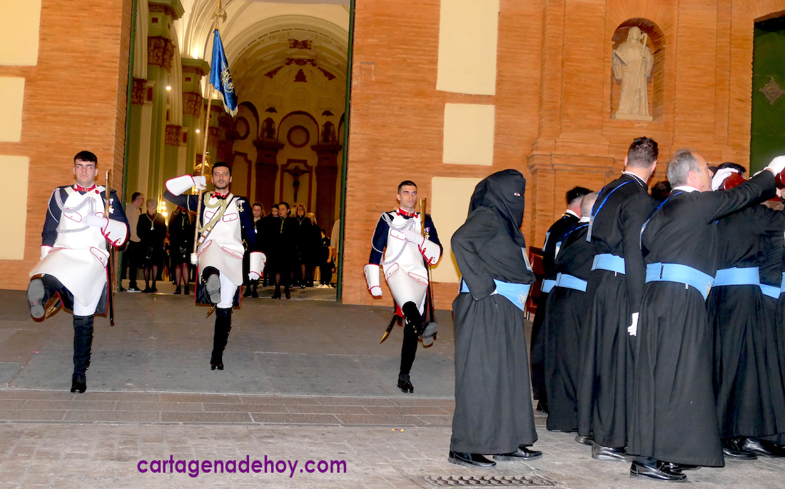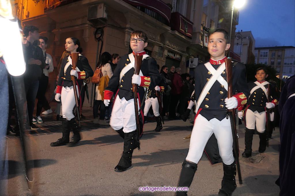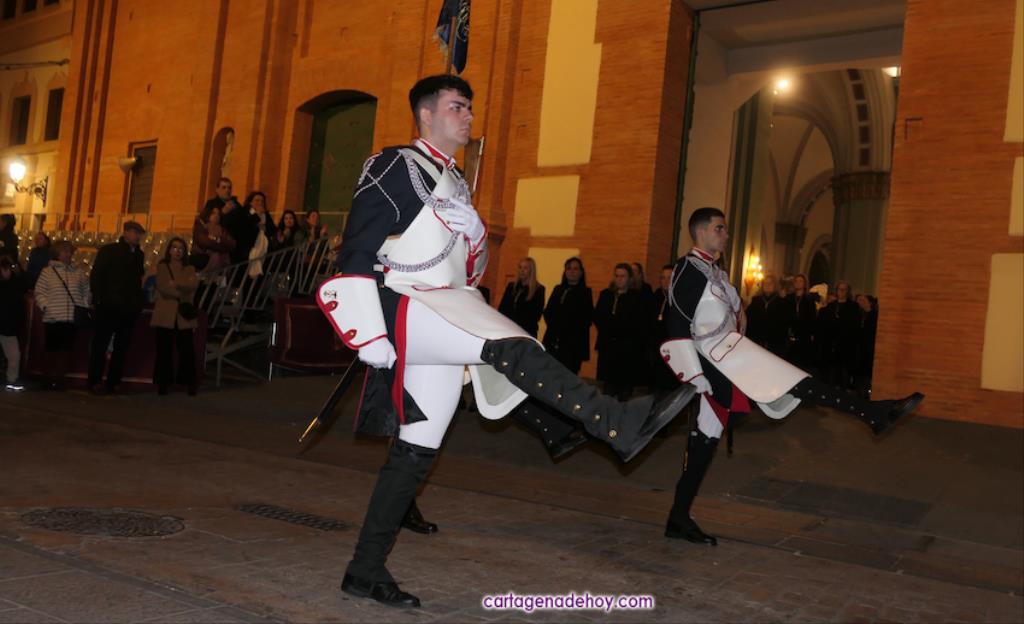 A continuación, la Sábana Santa (réplica de la original que está en Turín), el Santo Amor de San Juan con el (atractivo) trono más vanguardista de la Semana Santa de Cartagena, la cruz vacía (en su cruceta figura una piedra del monte del Calvario), la Soledad de los Pobres y el piquete de granaderos. A esa relación hay que sumar las remesas de nazarenos intercaladas en diversos puntos de la procesión.
