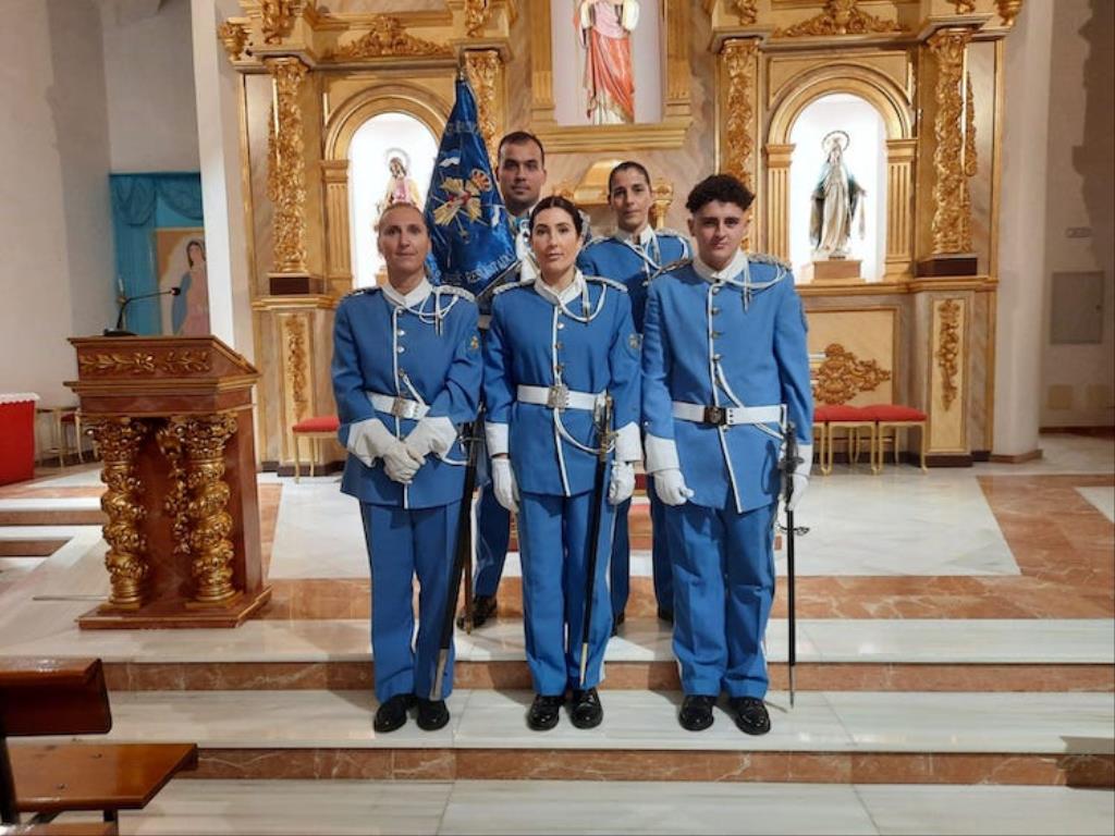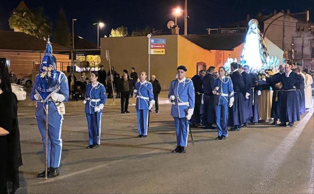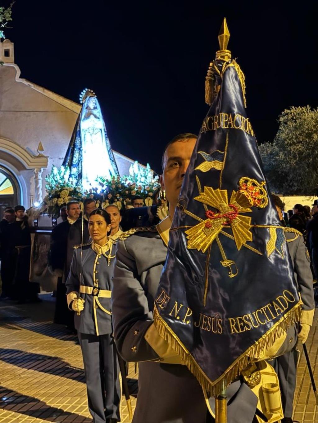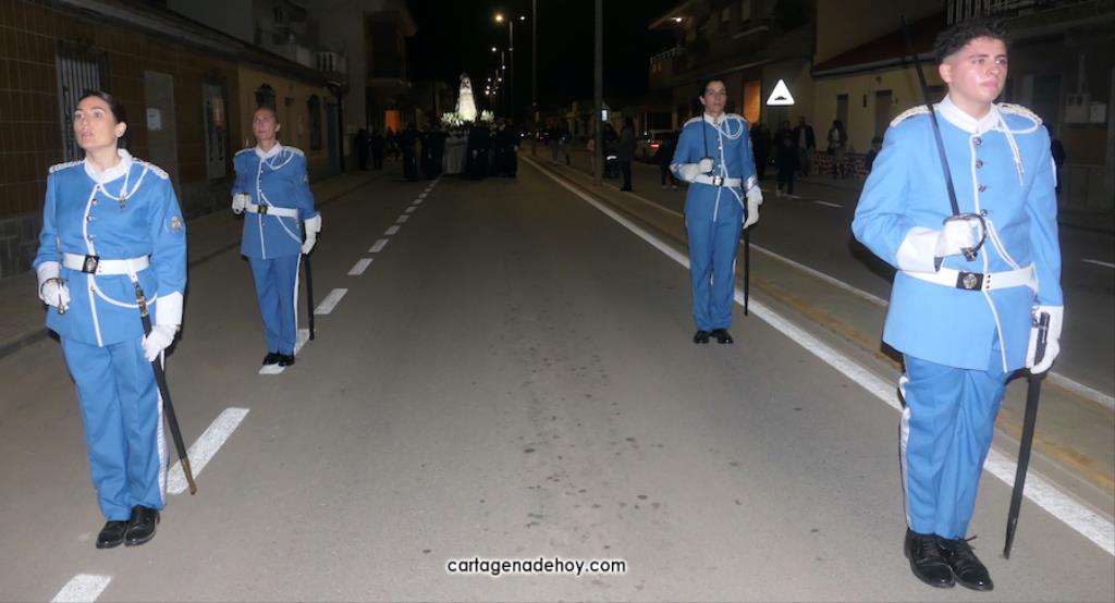 En el cortejo pasionario, que abren dos chicas a golpe de tambor, hay una escuadra de la Legión de Sagunto de Carthagineses y Romanos representando a los 'judíos' de la época y también desde 2017, un quinteto de la Escolta y Honores de la Cofradía de Jesús Resucitado abriendo paso a la Virgen. Este año ha sido novedad la presencia de tres integrantes de la Cofradía de las Ánimas de La Palma, con la que se están estableciendo vínculos (el pasado año procesionistas poblenses estuvieron en la procesión del cementerio palmesano) por parte de la Cofradía del Cristo de la Agonía.