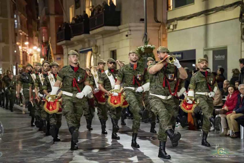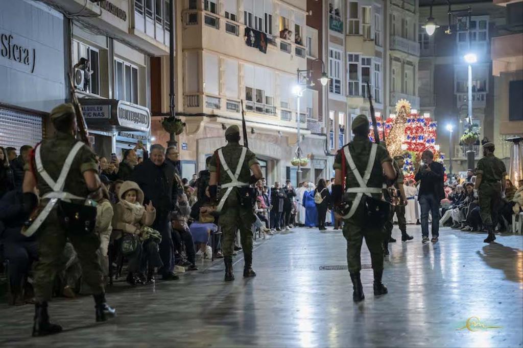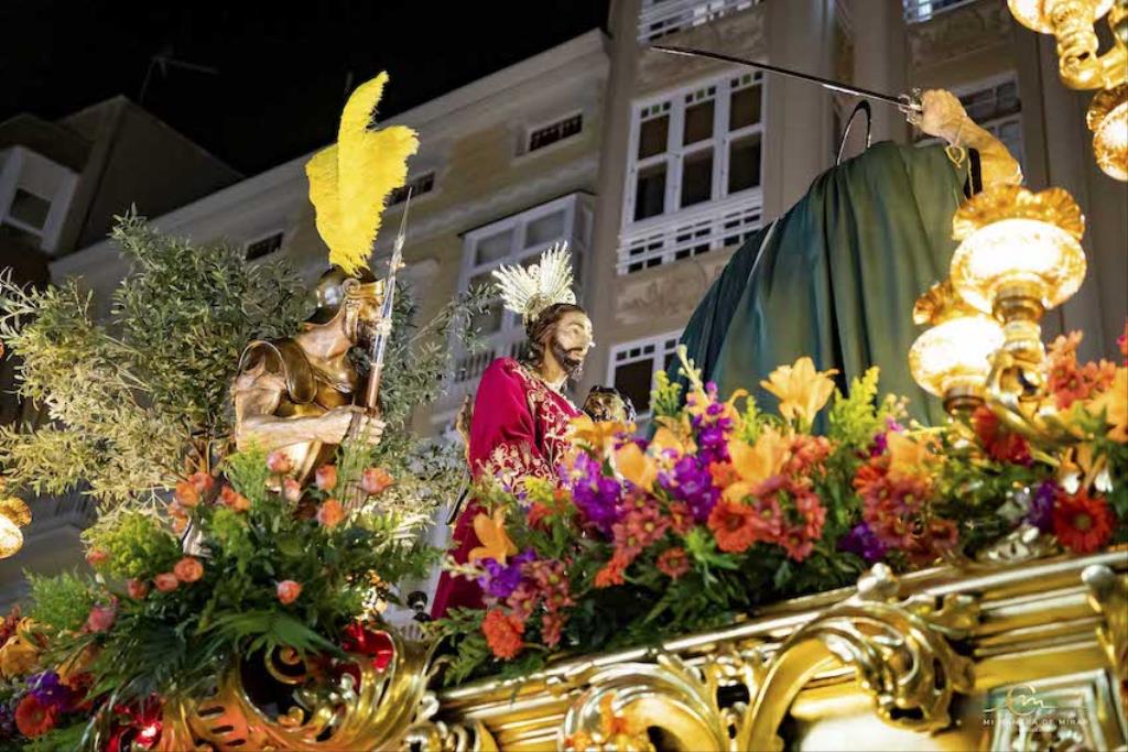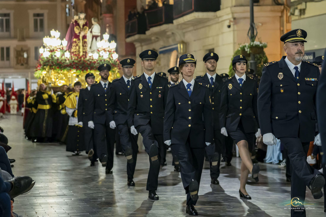 Arriba, la Virgen del Primer Dolor. Abajo, agentes de la Policía Nacional con el Cristo de la Sentencia y el piquete del Regimiento de Artillería Antiaérea-73. Los interesados en disponer de alguna fotografía deben enviar un correo a Esta dirección de correo electrónico está siendo protegida contra los robots de spam. Necesita tener JavaScript habilitado para poder verlo.