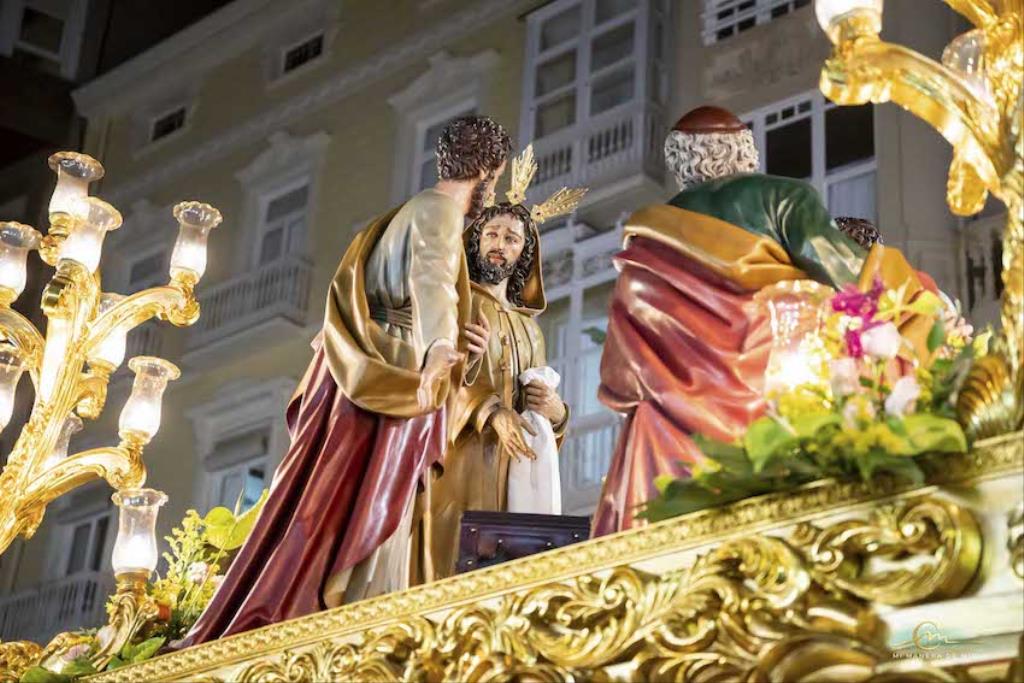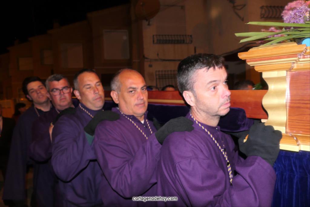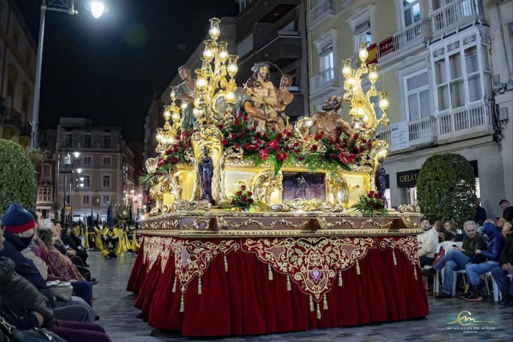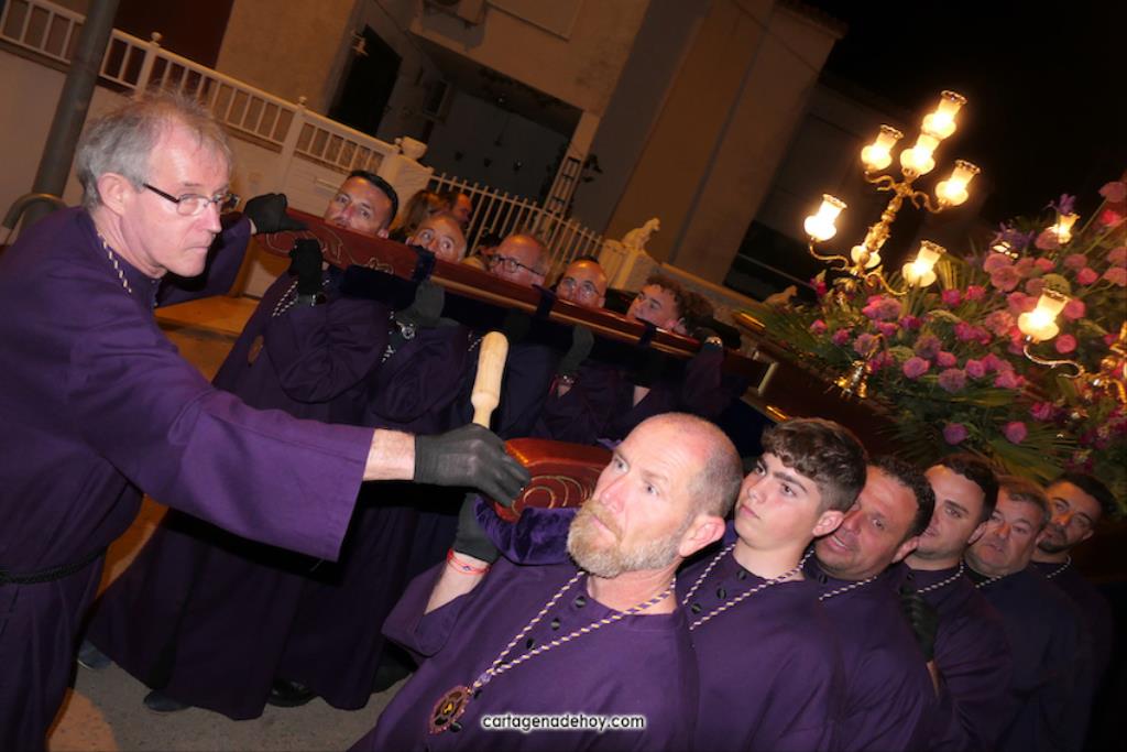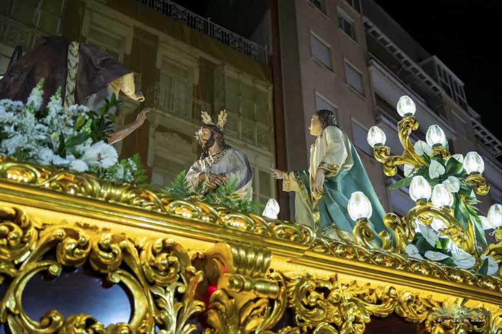 Arriba, la Virgen del Primer Dolor. Abajo, agentes de la Policía Nacional con el Cristo de la Sentencia y el piquete del Regimiento de Artillería Antiaérea-73. Los interesados en disponer de alguna fotografía deben enviar un correo a Esta dirección de correo electrónico está siendo protegida contra los robots de spam. Necesita tener JavaScript habilitado para poder verlo.