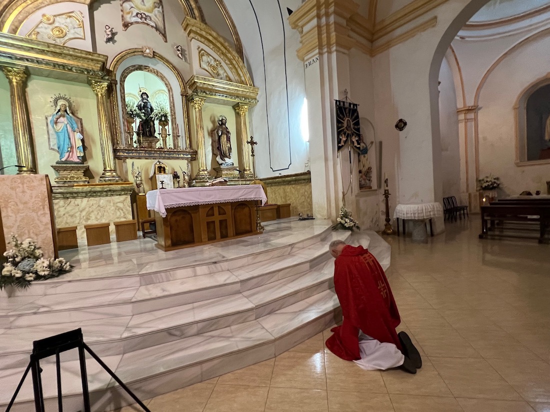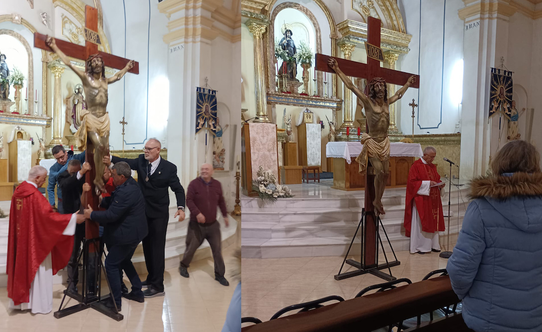 Los santos oficios y el 'camino de la cruz' se realizaron en la parroquial de San Roque, donde fieles y devotos, incluidos miembros de la Archicofradía de Nuestra Señora del Carmen de Cartagena y de la parroquia de Santiago Apóstol de Pliego, se congregaron para honrar la fecha. Dadas las inclemencias del tiempo, el acto se llevó a cabo en la propia iglesia. La devoción y el espíritu de unidad prevalecieron en esta significativa celebración de Semana Santa en la parroquia de San Roque.