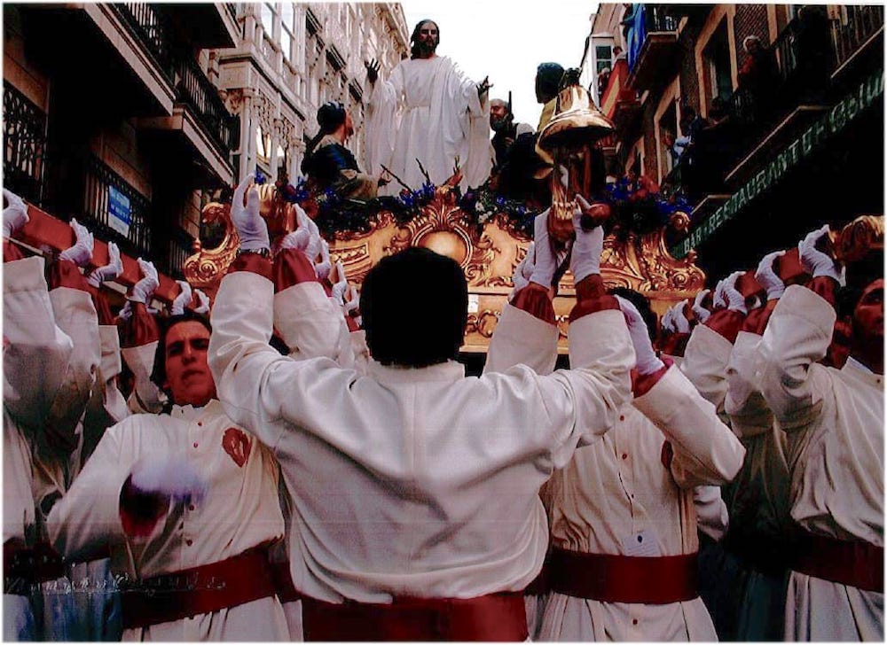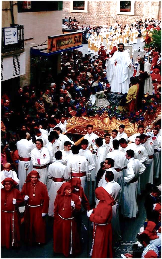Hoy, 4 de abril, se cumplen veinte años de la primera salida de la iglesia de Santa María de Gracia, a hombros de noventa portapasos, del trono y el grupo escultórico de 'El sermón de la montaña' acompañado por el tercio infantil de La Coronación de Espinas.