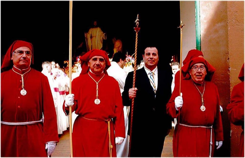 La llamada de honor para la primera levantada del trono la dio Javier Gómez-Vizcaino Castelló, mecenas junto a Óscar García-Berbois Celdrán cuya aportación permitió la financiación del grupo escultórico realizado por Luis Gonzalez Rey y del trono ejecutado por Victoria Delis durante el mandato del presidente mayordomo Juan Manuel Moreno Escosa, y siendo Hermano Mayor de la Pontificia, Real e Ilustre Cofradía de Nuestro Padre Jesús en el Doloroso Paso del Prendimiento y Esperanza de la Salvación de las Almas (Cofradía California - Semana Santa de Cartagena) Juan Guillén Manzanera.