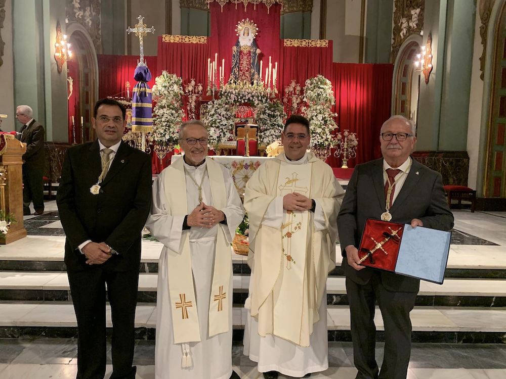 La entrega de la 'cruz doble' tuvo lugar en la iglesia de Santa María en presencia del capellán encarnado Francisco Pagán de Asís y del sacerdote Antonio José Palazón Cano.