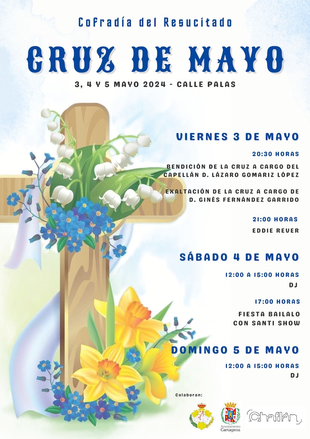 Al igual que en años anteriores, la cofradía celebrará la tradicional fiesta floreada durante tres jornadas hasta el domingo en la calle Palas del centro histórico, comenzando la actividad hoy con la bendición de la cruz por parte del sacerdote Lázaro Gomariz López, a las 20.30 horas, y, tras esta tendrá lugar una exaltación de la cruz.