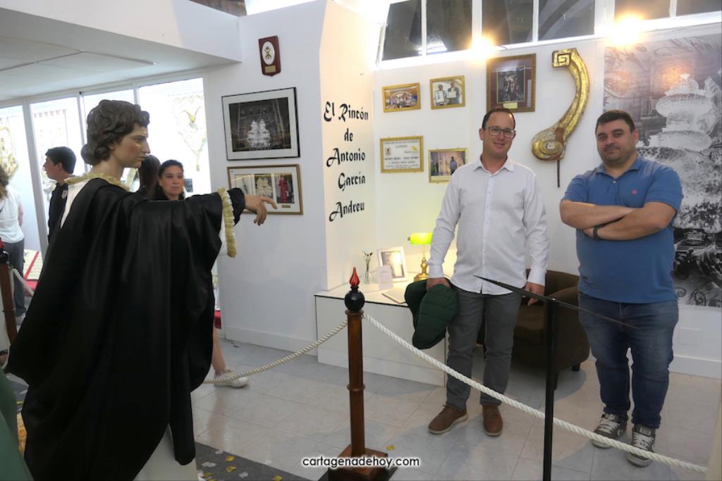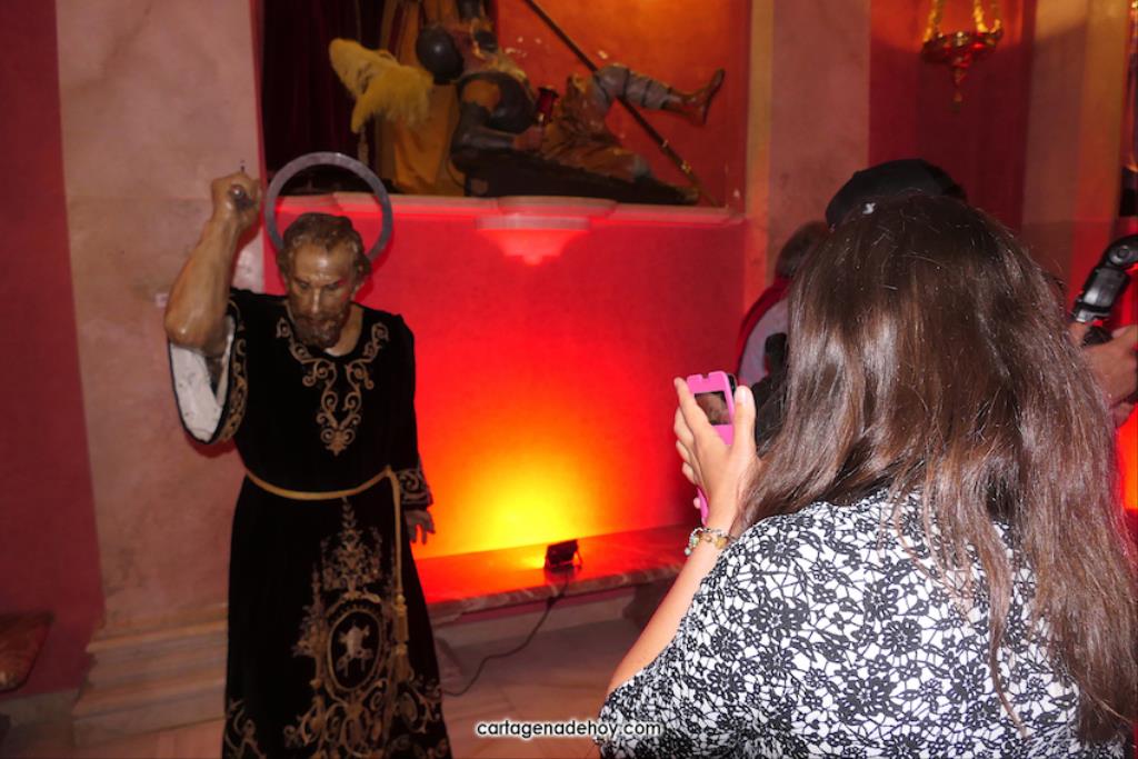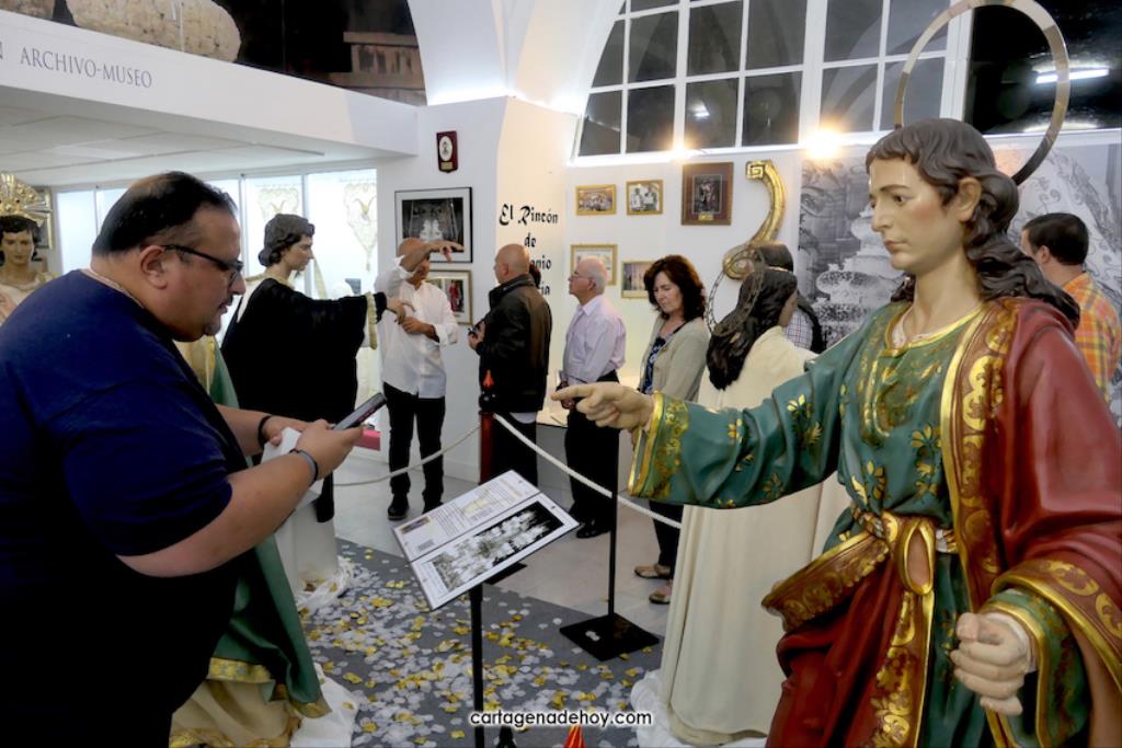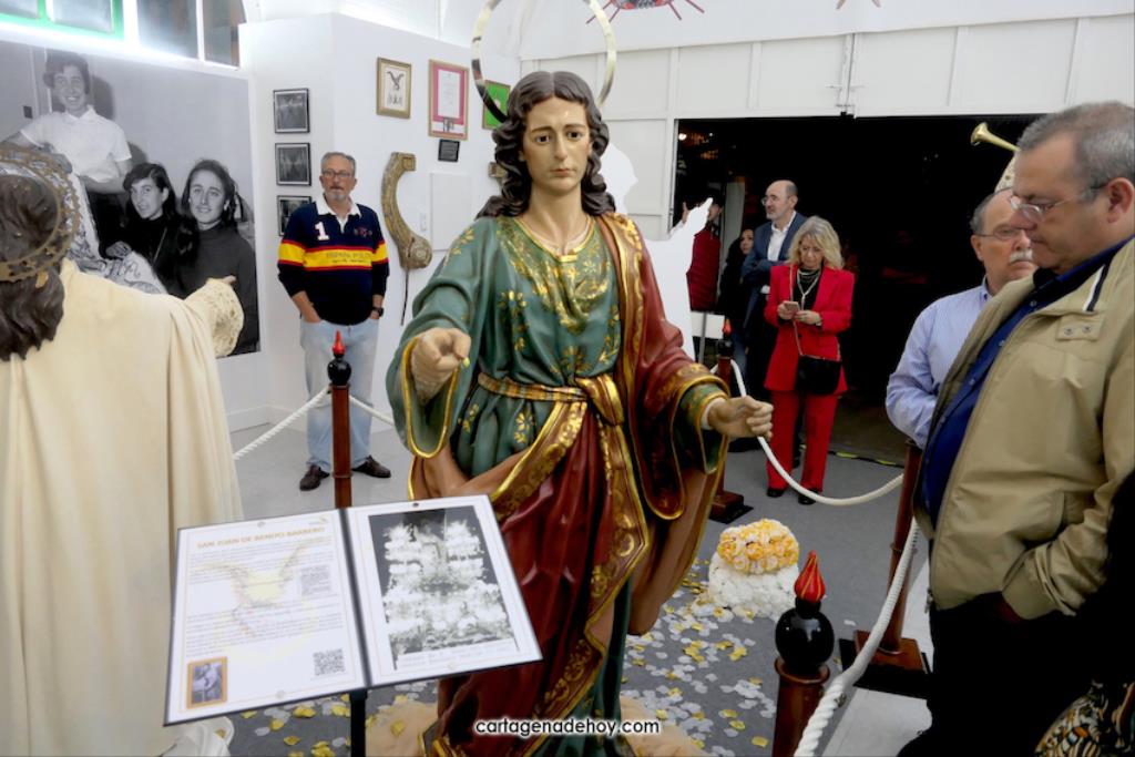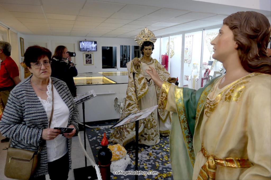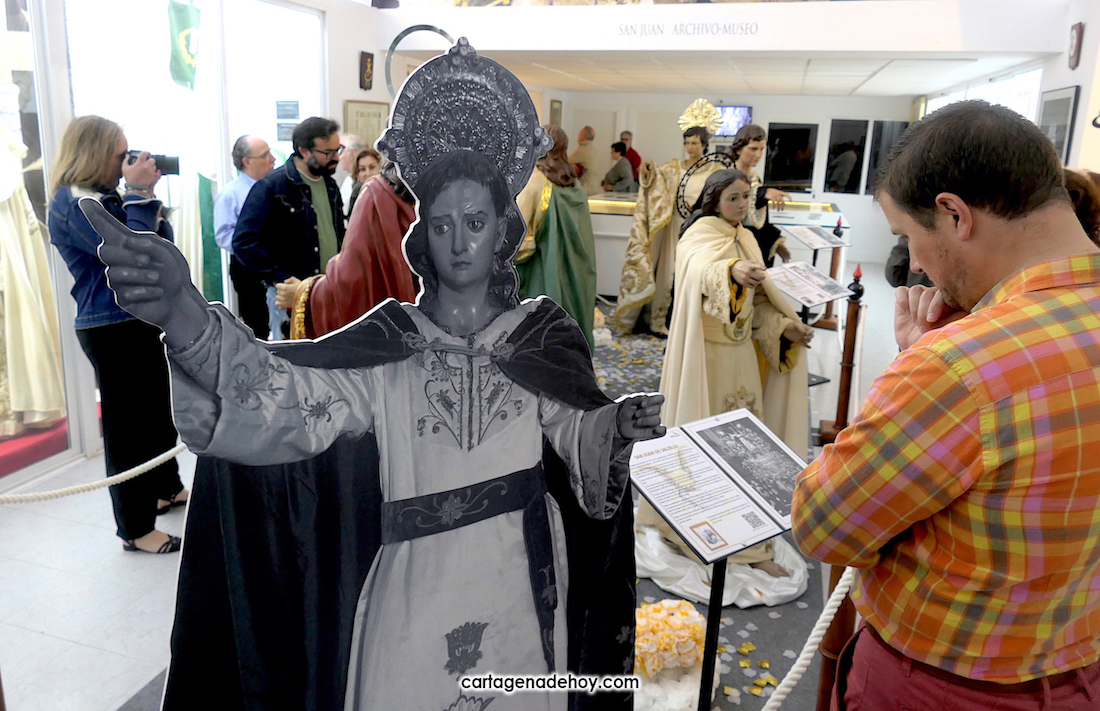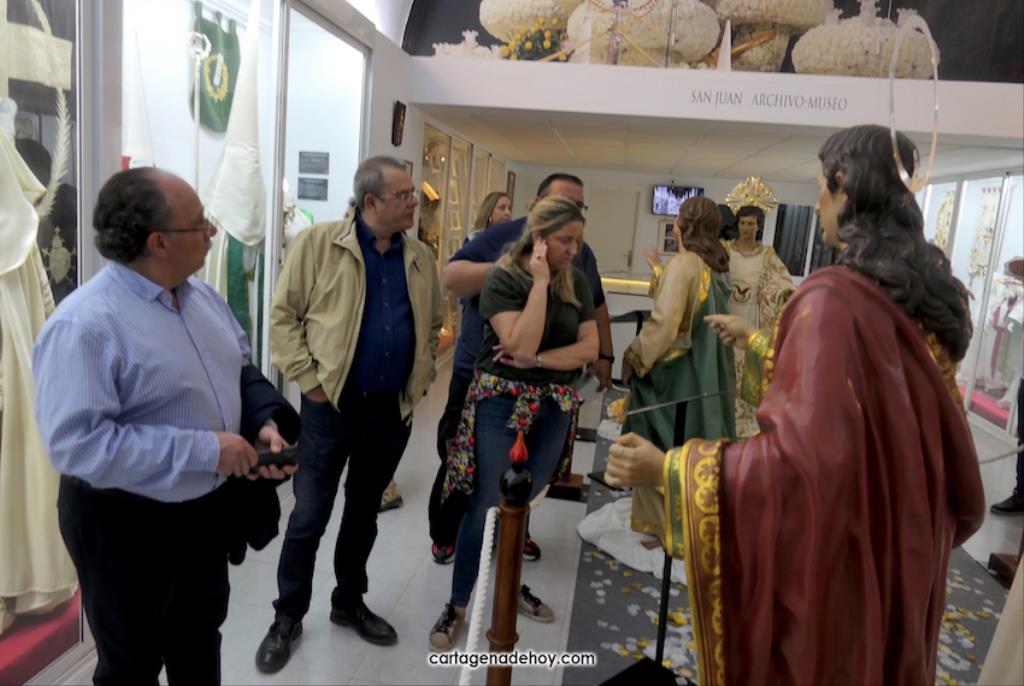 San Juan californio, en su museo-casa del Parque de Artillería, ha exhibido los sanjuanes que ha sacado en procesión, incluido el primitivo de Salzillo que fue destruido en la Guerra Civil y que ha ‘rescatado’ con una fotografía ampliada y silueteada. Junto a él han estado el actual (creado por Mariano Benlliure) y los que creó Sánchez Lozano para los grupos del ‘Juicio de Jesús’ y de la ‘Vuelta del Calvario’, además de los que lo hicieron de forma puntual, como son el que se encuentra en la iglesia de Los Dolores (obra de Sánchez Araciel) y el que está en la parroquia de Sucina (obra de Benito Barbero). La visita se enriquecía con los objetos estables del museo sanjuanista.