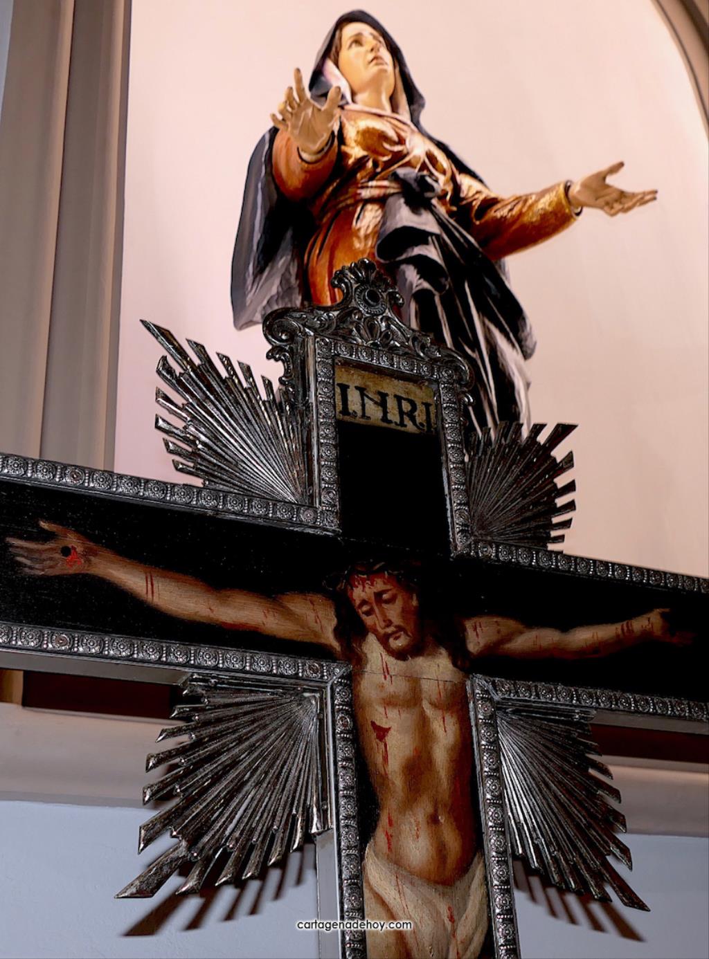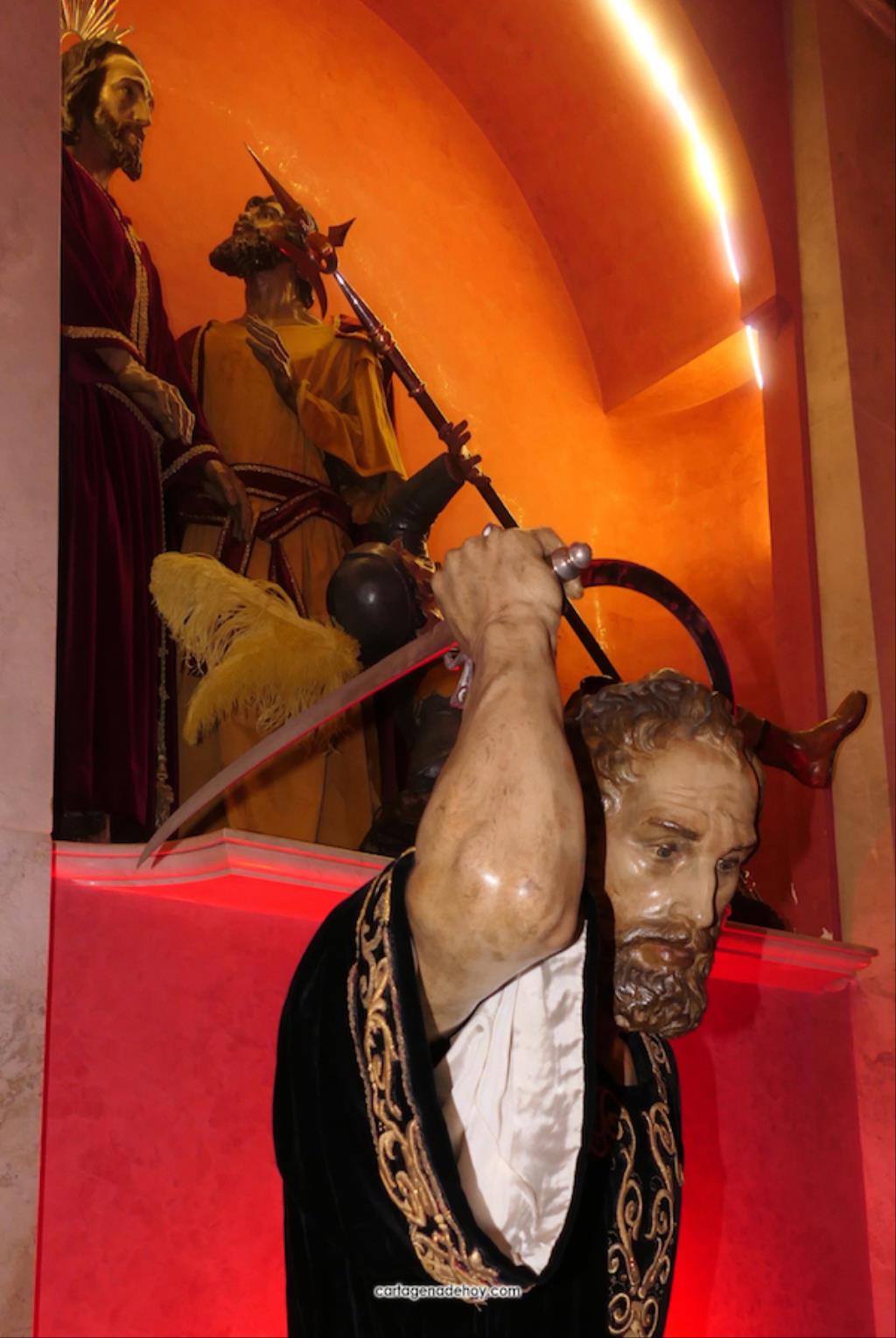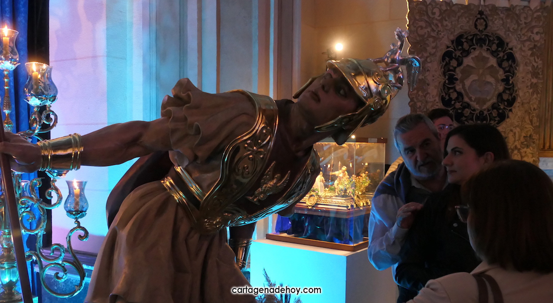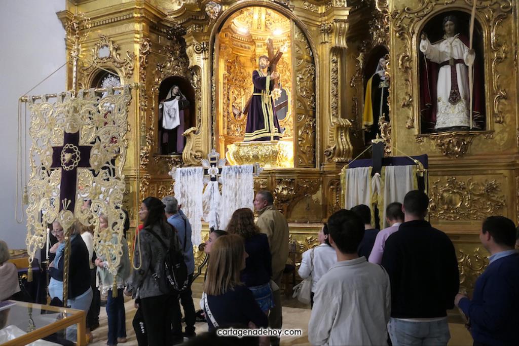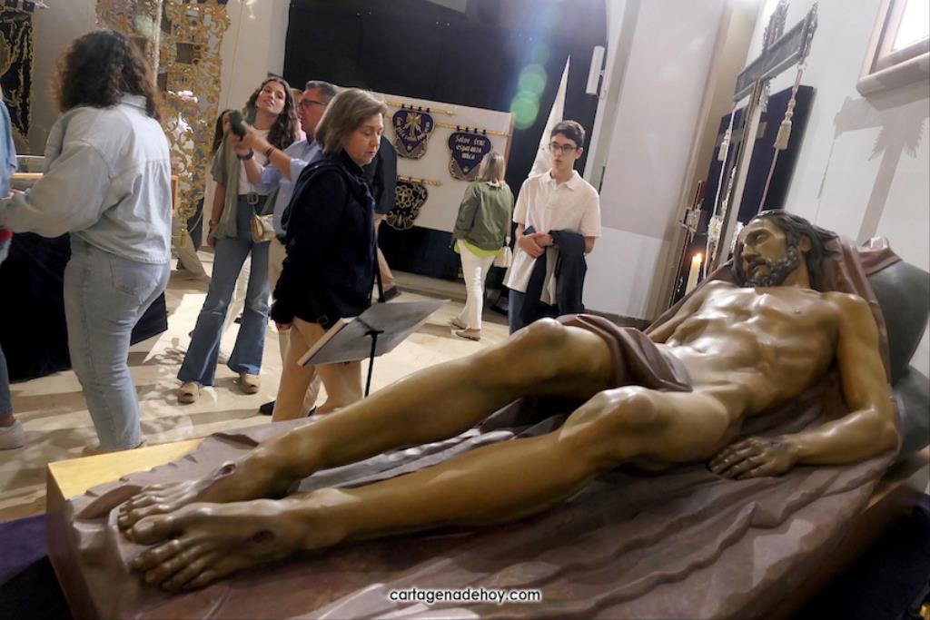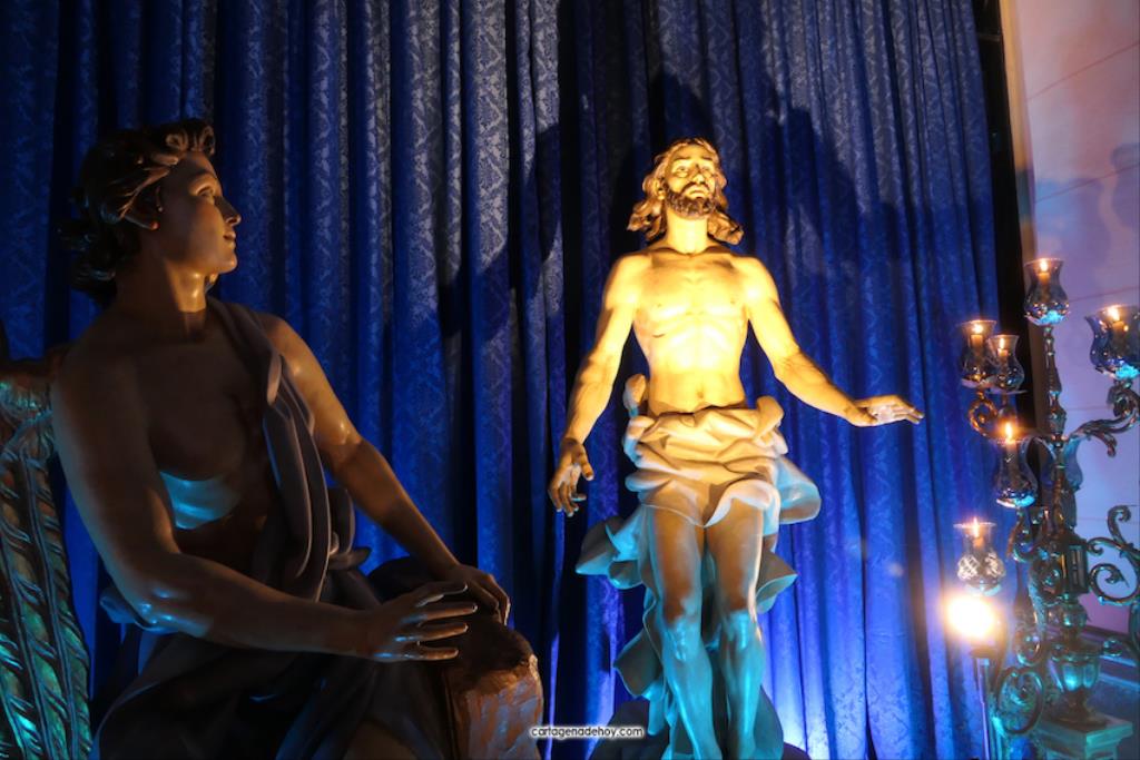 La agrupación encarnada de San Juan ha reunido el quintento de tallas que ha sacado en procesión en su historia, en una jornada donde resucitados, californios y marrajos han llenado sus capillas de parte de sus ‘tesoros’, a los que hay que sumar el amplio contenido de la capilla del ‘Cristo del Lago’.