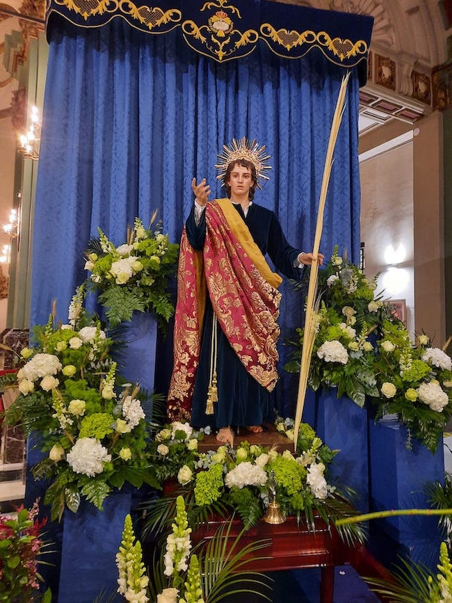 La imagen del Discípulo Amado creada por el artista ciezano Antonio Jesús Yuste Navarro fue bendecida por el obispo en un acto que tuvo lugar en la iglesia de Santa María, para después protagonizar una procesión claustral.