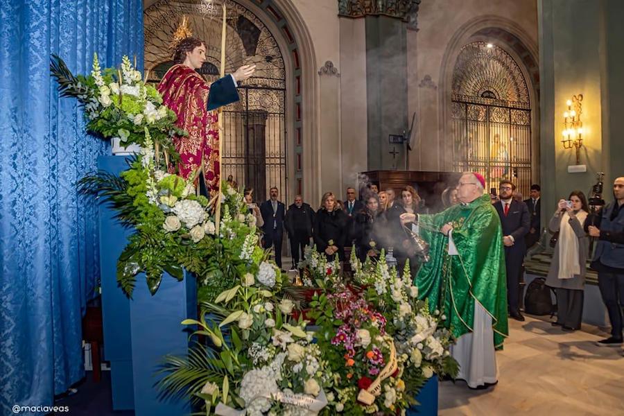 El Obispo de la Diócesis de Cartagena, Monseñor José Manuel Lorca Planes, fue el encargado de bendecir la nueva imagen de San Juan Evangelista, titular de la agrupación que lleva su nombre de la Real e Ilustre Cofradía de Nuestro Padre Jesús Resucitado. La ceremonia tuvo lugar el pasado sábado, 18 de enero, en la iglesia de Santa María de Gracia.