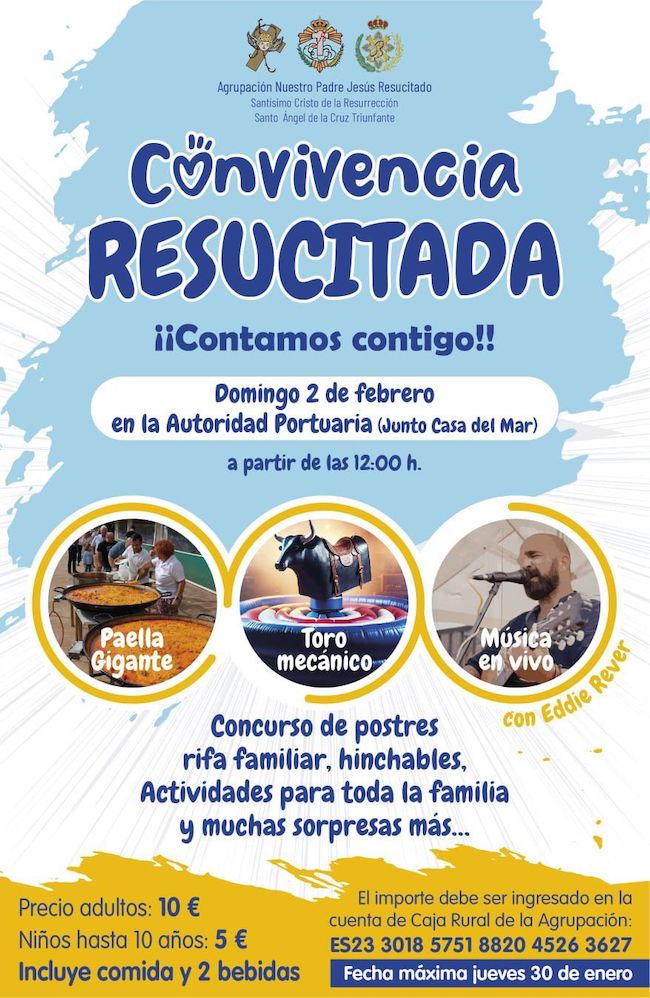 Habrá concurso de postres, arroz gigante, toro mecánico, música en vivo, hinchables, rifa familiar, etc. Precio de 10 euros para adultos y de 5 para niños de hasta 10 años. El importe incluye la comida y dos bebidas. El plazo para apuntarse expira el jueves 30 de enero.