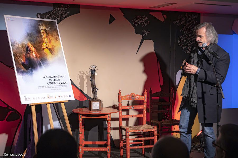 El diseño elaborado por el artista palmesano, centrado en La Piedad y en una cantaora, se ha presentado en un acto en el que también se ha desvelado el trofeo del certamen, una escultura del escultor cartagenero Fernández Sáenz de Elorrieta (foto adjunta). Los interesados en participar en el certamen tienen hasta el 7 de febrero para apuntarse.