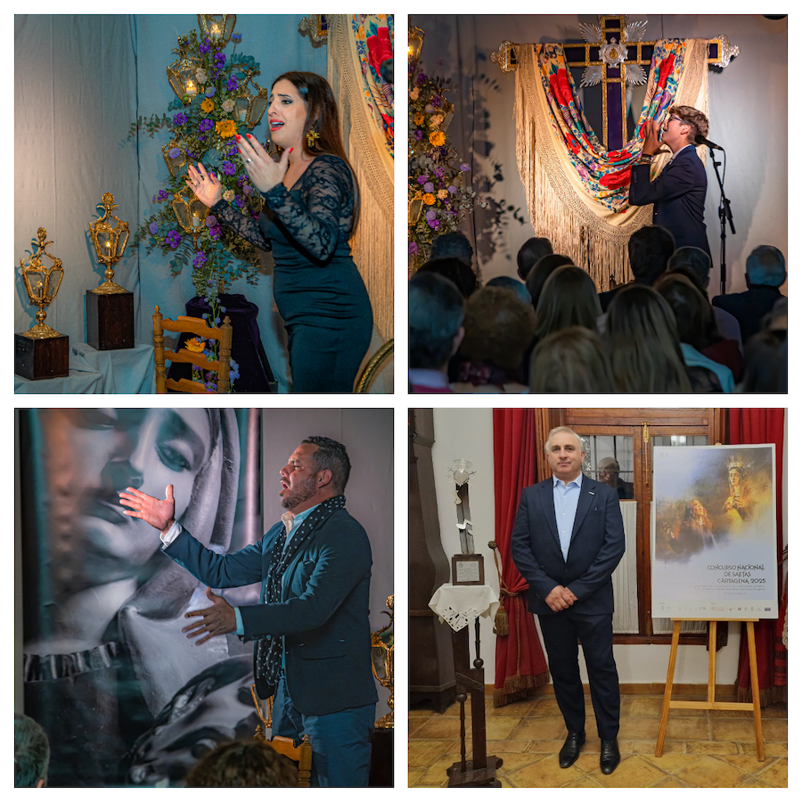 Los cantaores Maribel Castillo, de Alcantarilla (Murcia); José Antonio Cuevas Domínguez, “José Cuevas”, de Osuna (Sevilla); José Manuel González, “El Chiclanero”, de Chiclana de la Frontera (Cádiz) y Juan Francisco Morán, de Córdoba, pelearán por el primer premio del XI Concurso Nacional de Saetas de Cartagena 2025, dotado con 3.000 € y un trofeo-escultura del prestigioso artista Fernando Sáenz de Elorrieta.